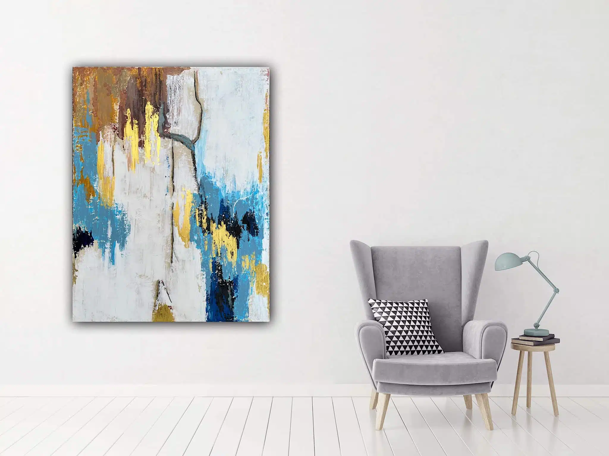 Acrylic painting on canvas, with gold leaf details. Dimensions: 60×80 cm