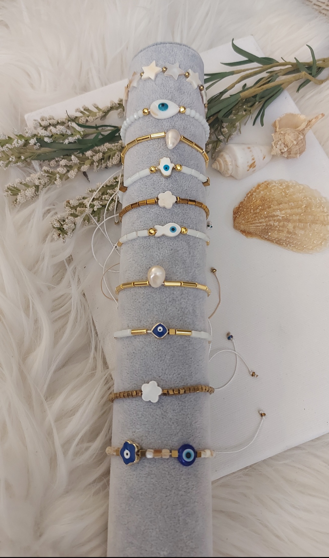 Handmade bracelets made by seashell hematied and pearl by macrame thread to make it easier to wearing and sizes