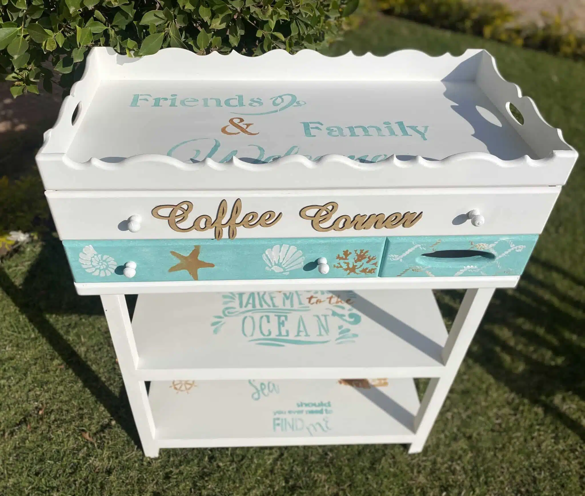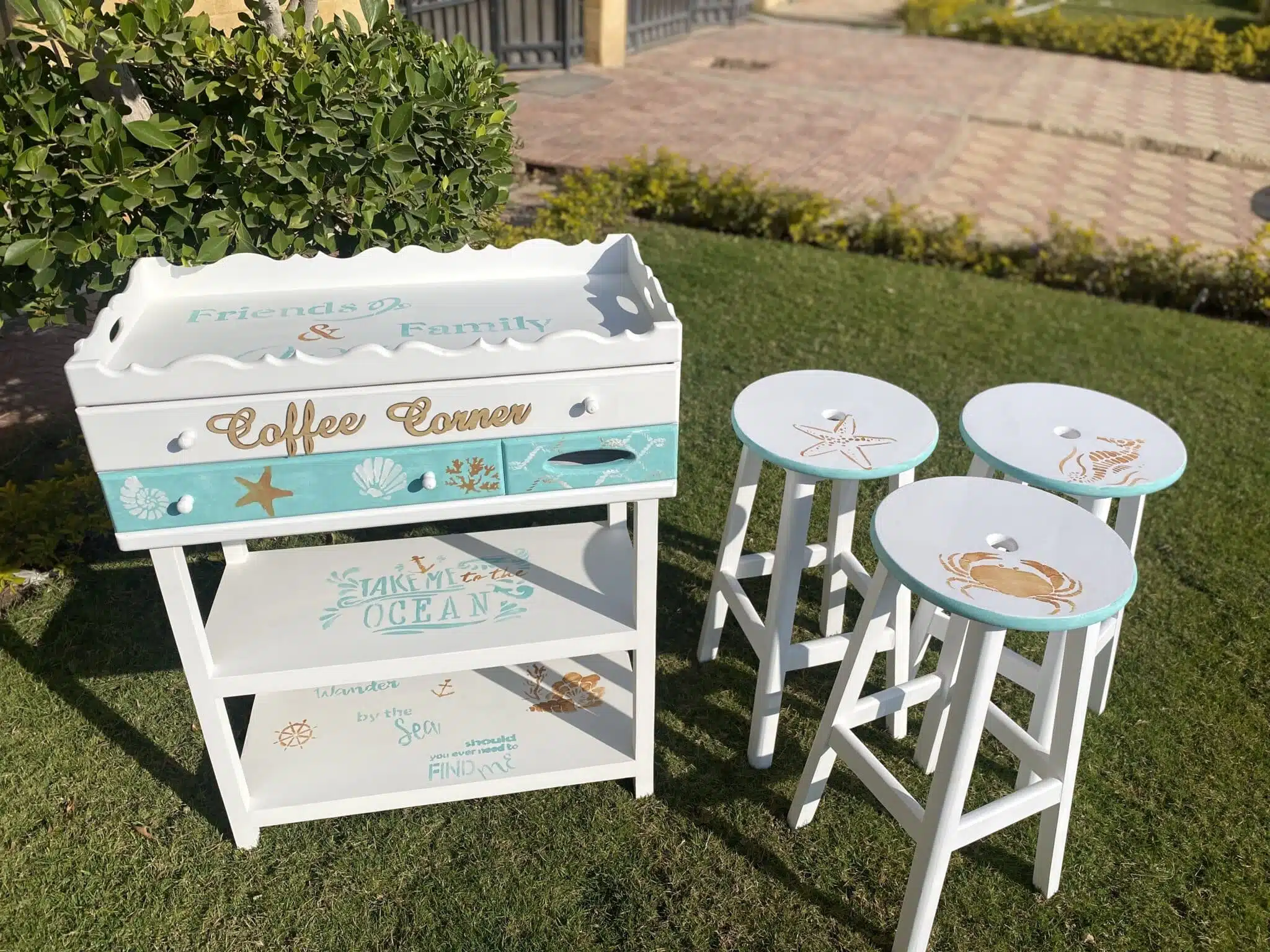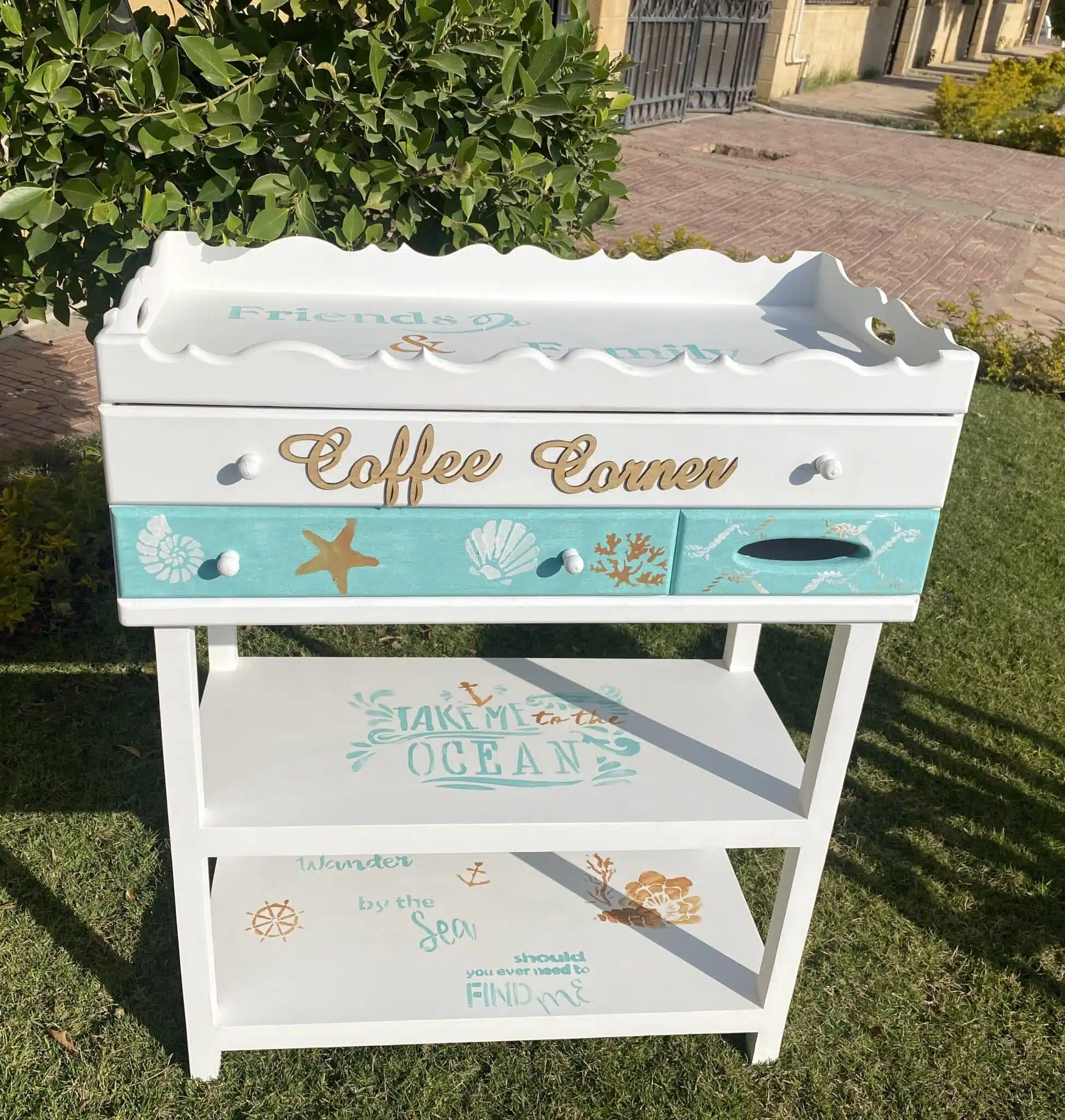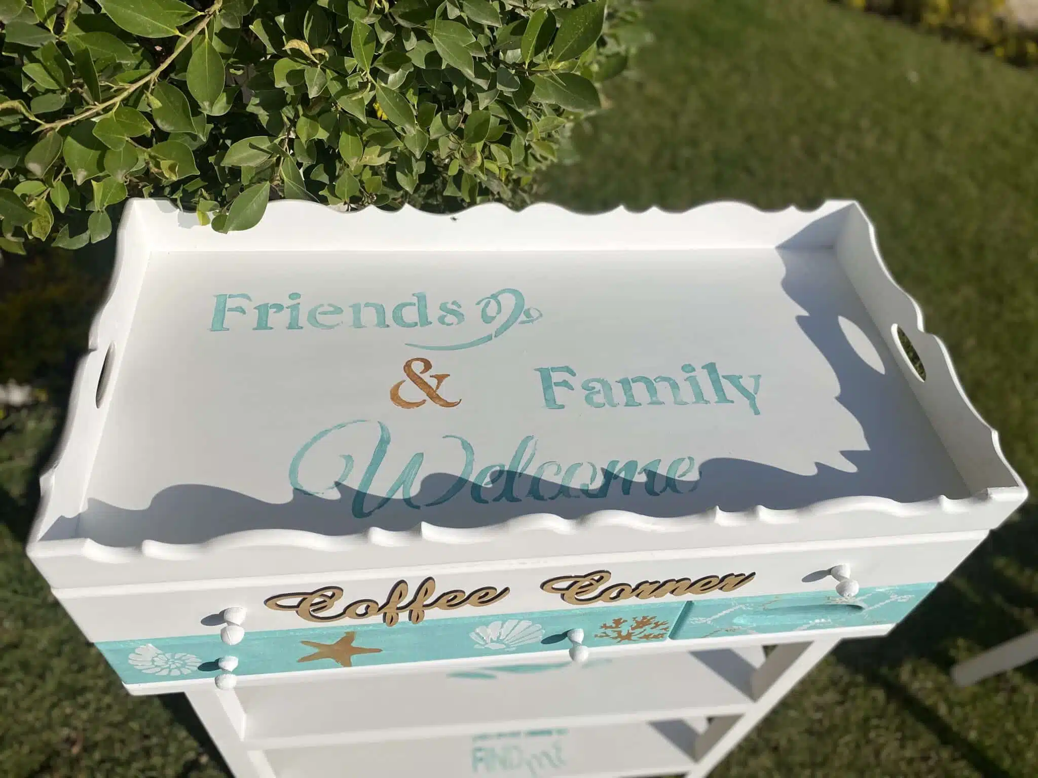 Wooden coffee corner with summer theme