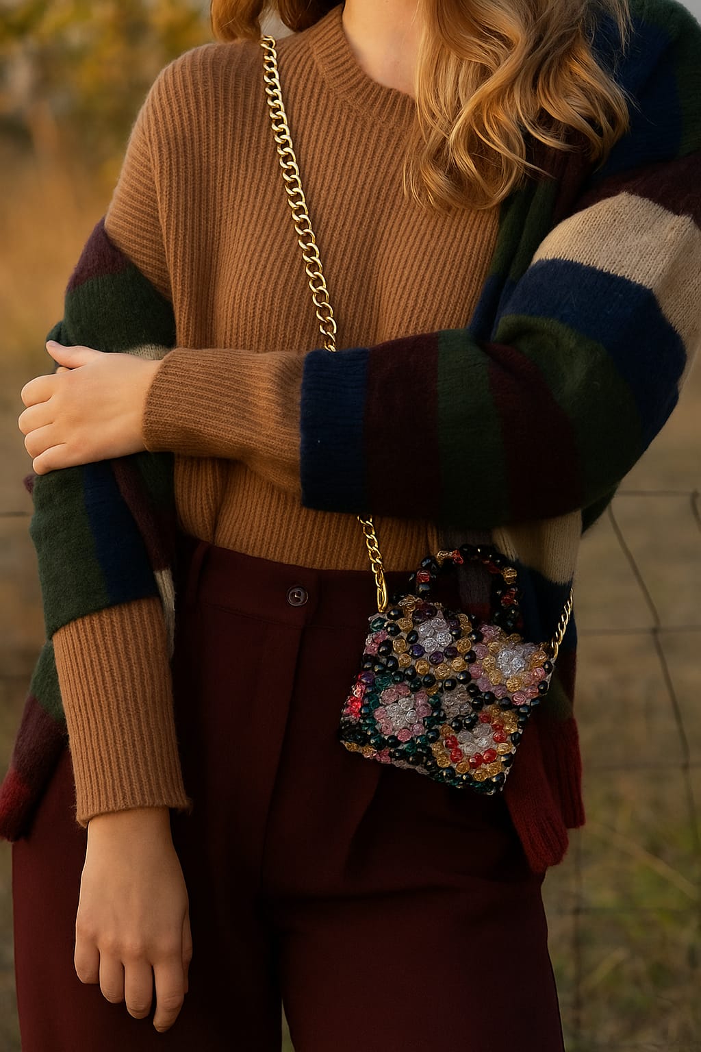 شنطة خرز اكريليك بالوان بارزة و إطار اسود