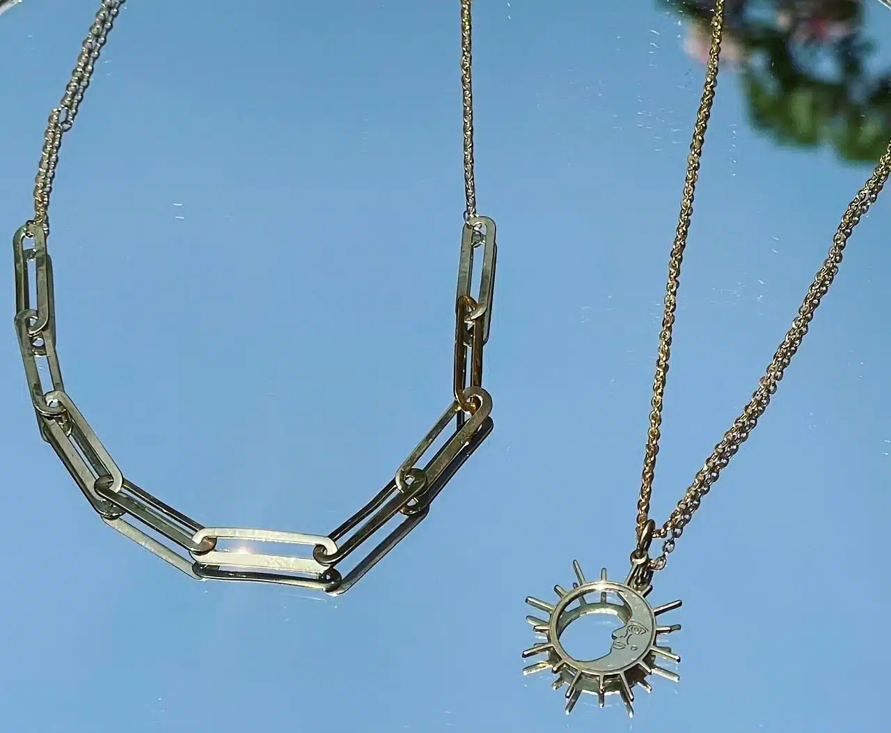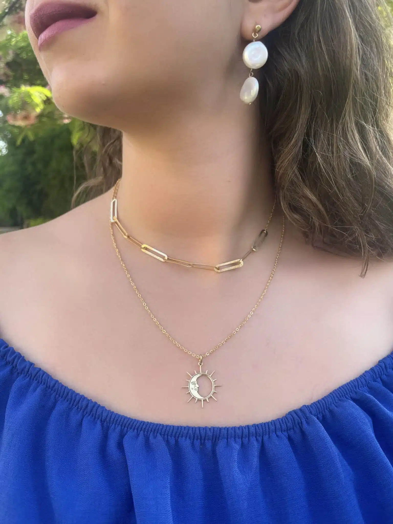 Sun and moon gold platted silver Necklace