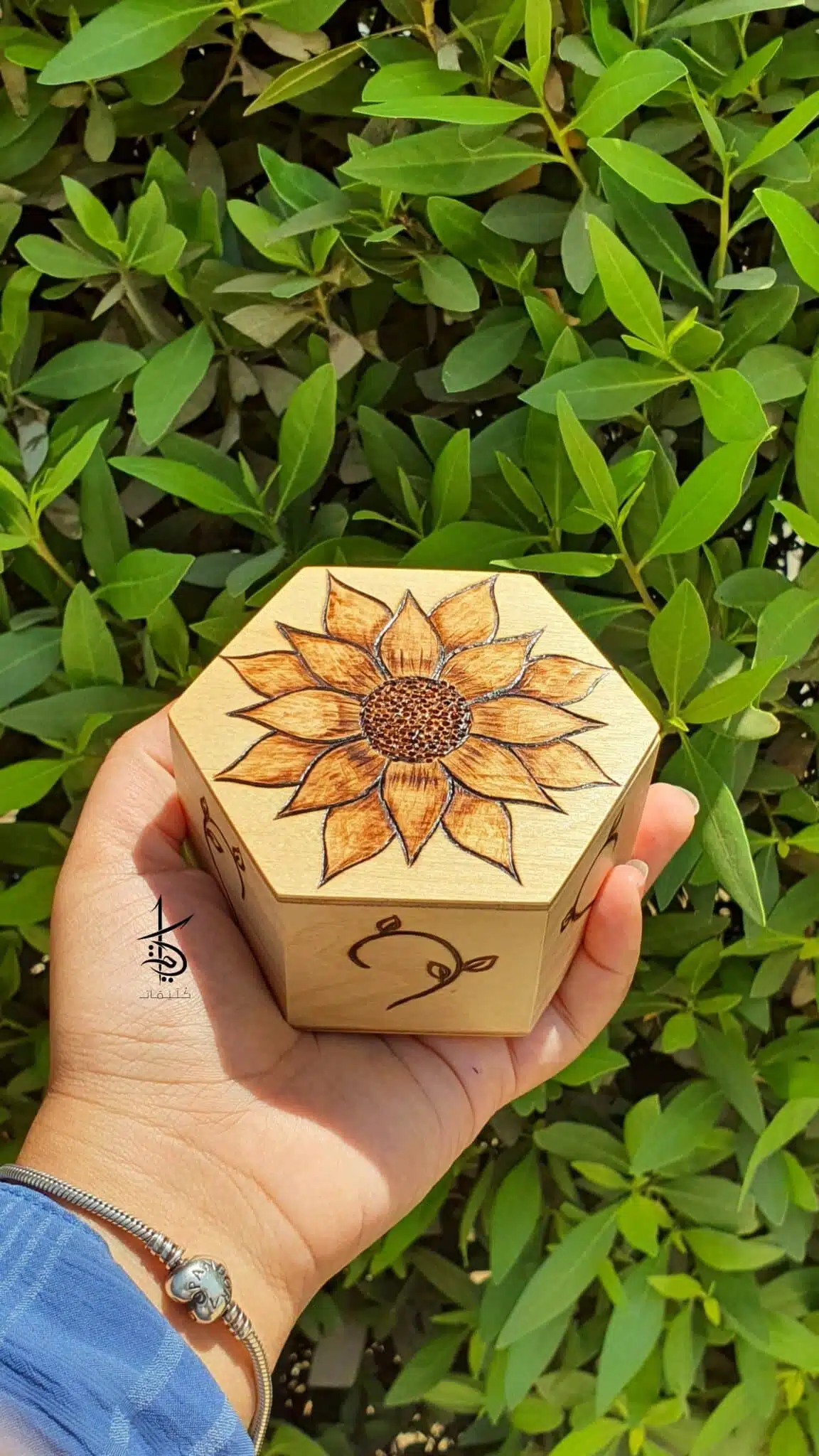 Sunflower – Hand-Burned Hexagon Wooden Box