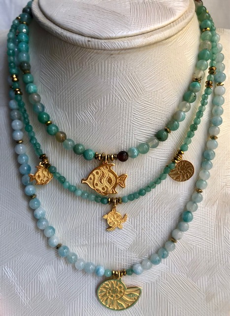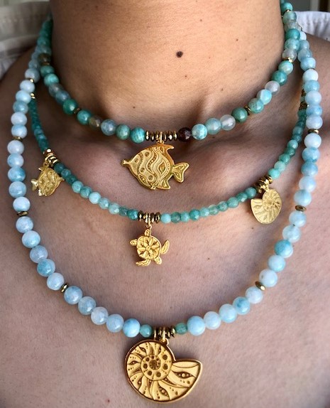 Crafted in 18k gold-plated brass with ocean-hued stones, every charm holds a piece of marine magic.