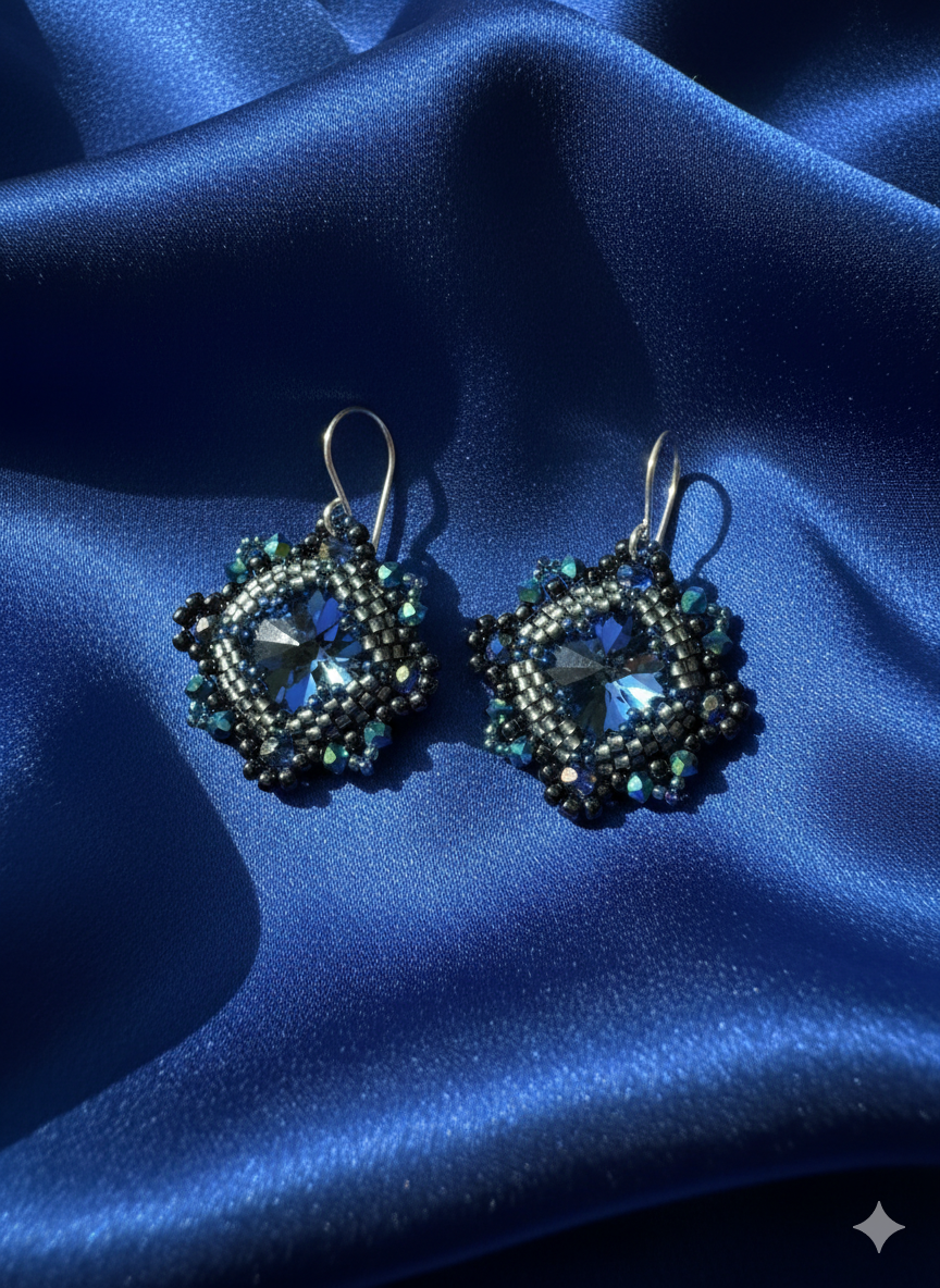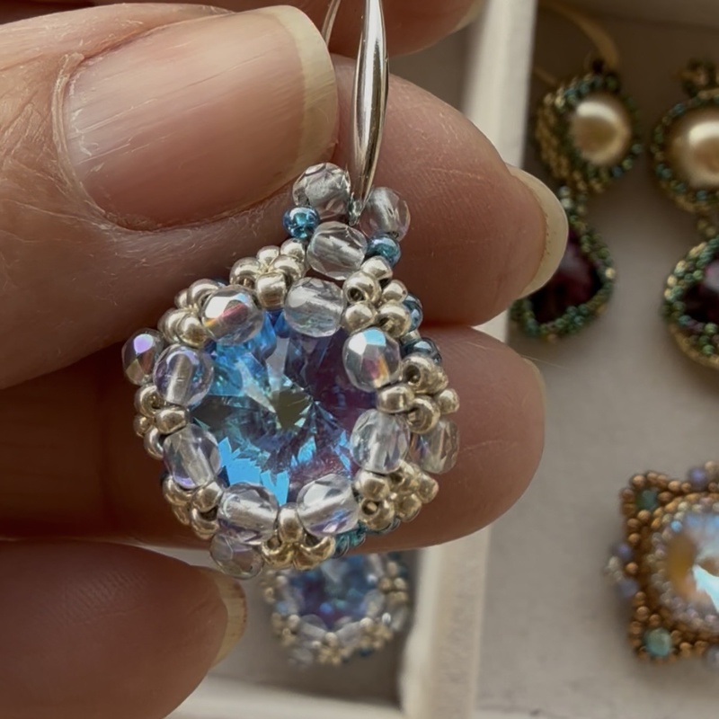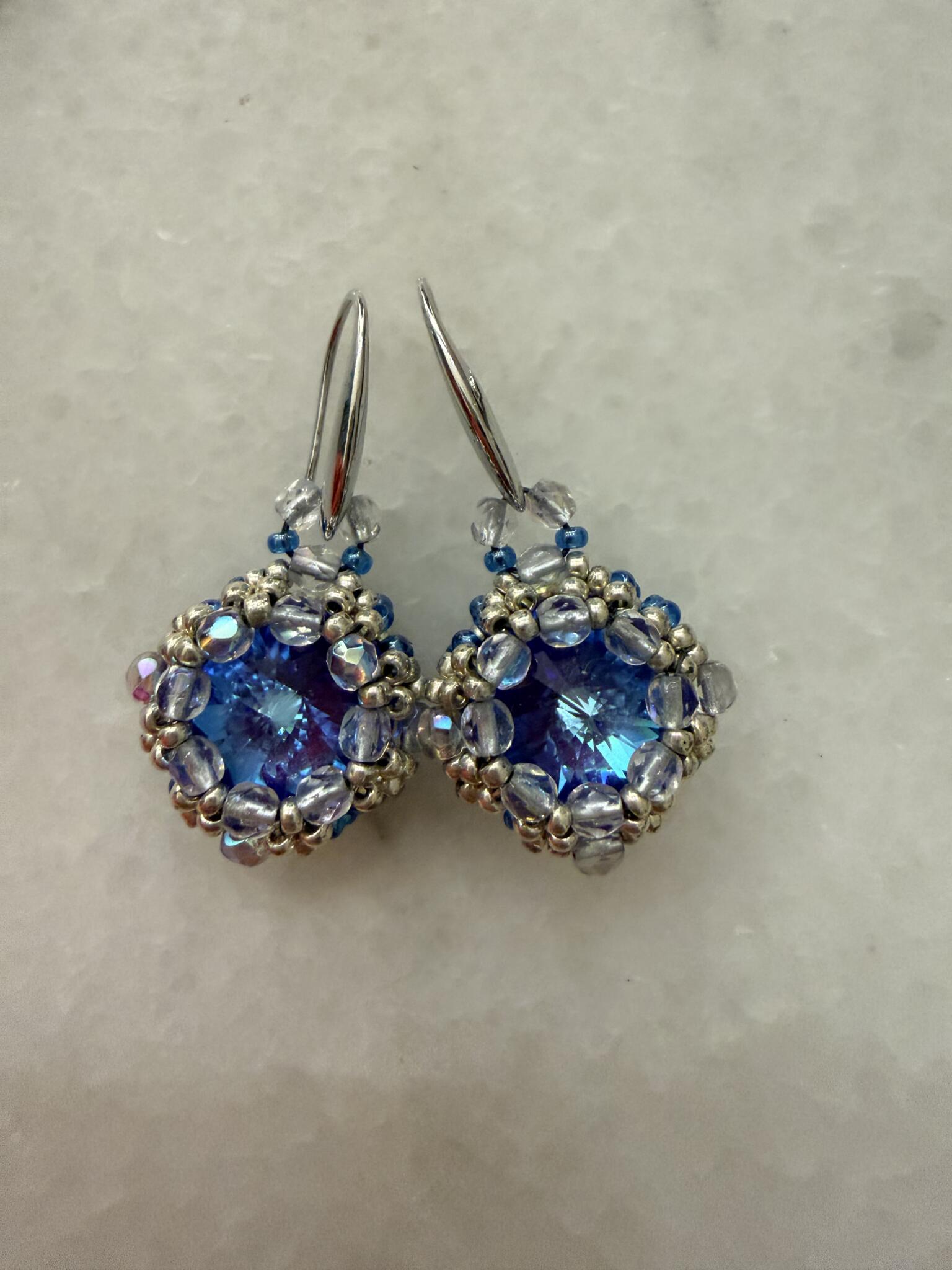 Wahby Designs limited edition capri blue Swarovski crystal hand beaded earrings