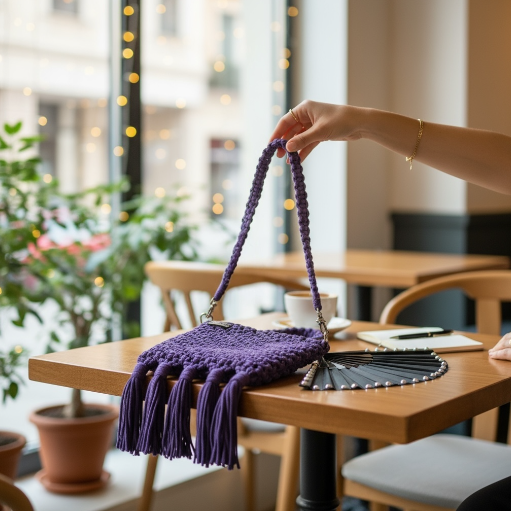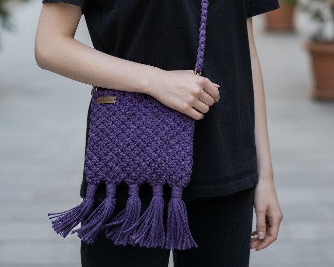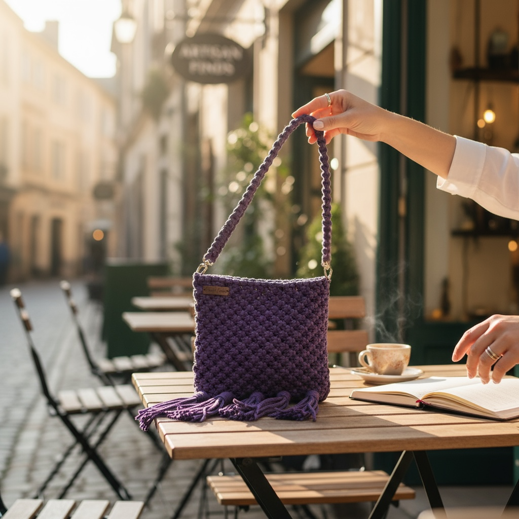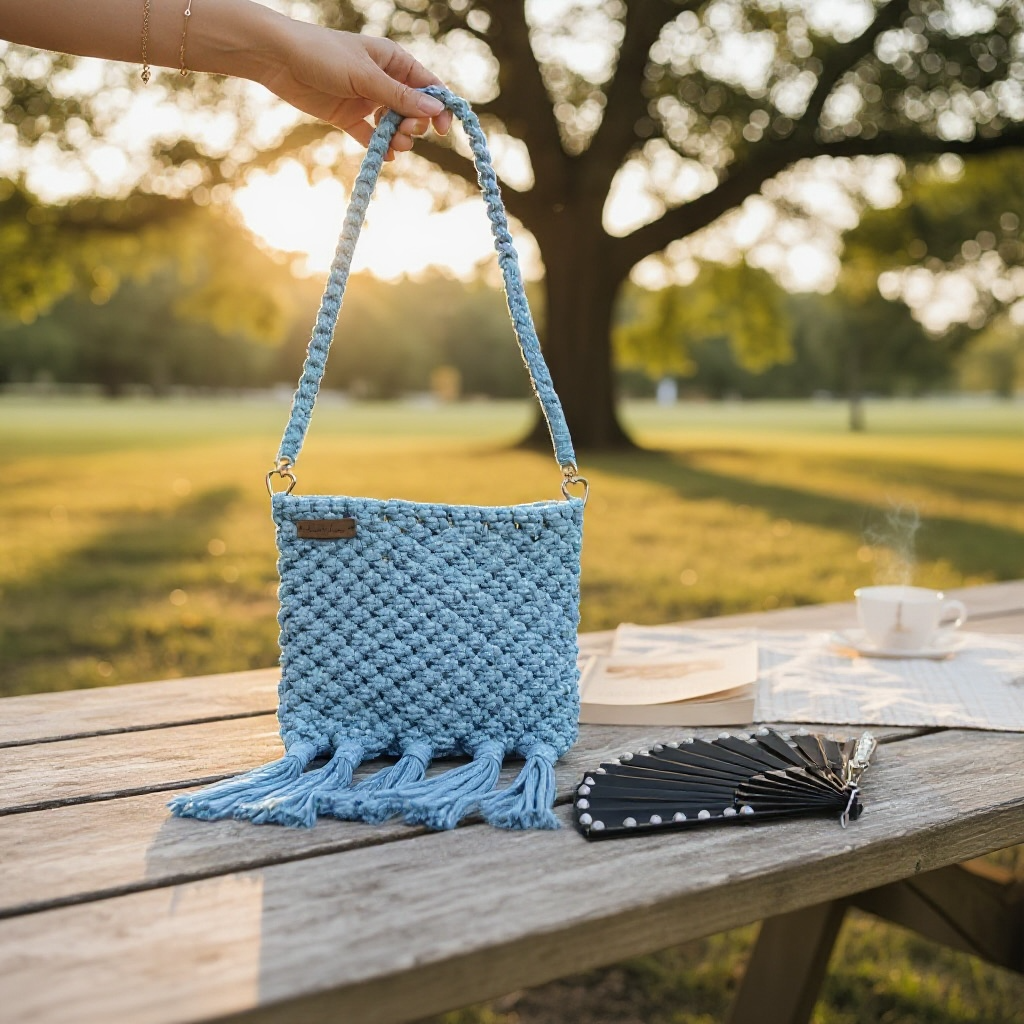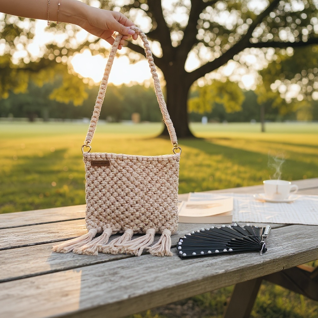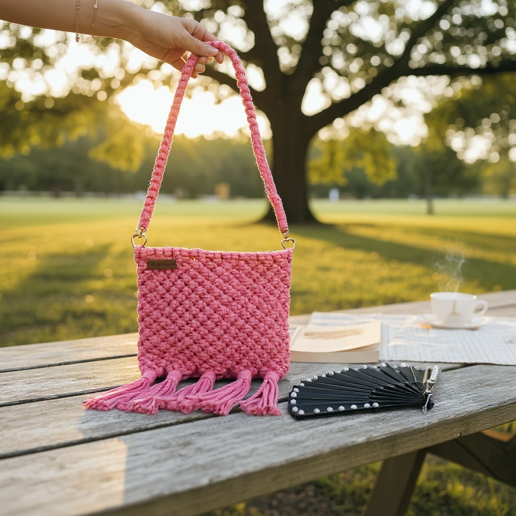 - Your signature macramé bag—custom color, luxe texture, all-day chic.
