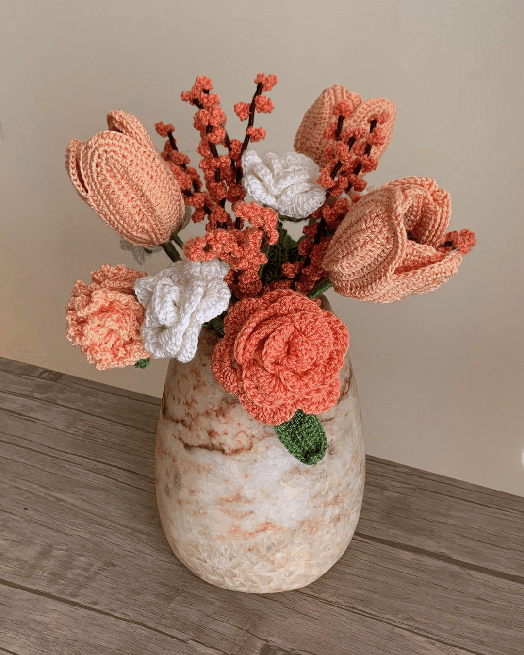 Crochet Flowers in an Alabaster vase