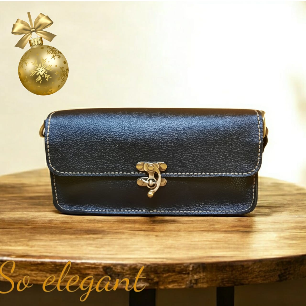 Fully handmade shoulder bag ,crafted with natural pebbled black leather.