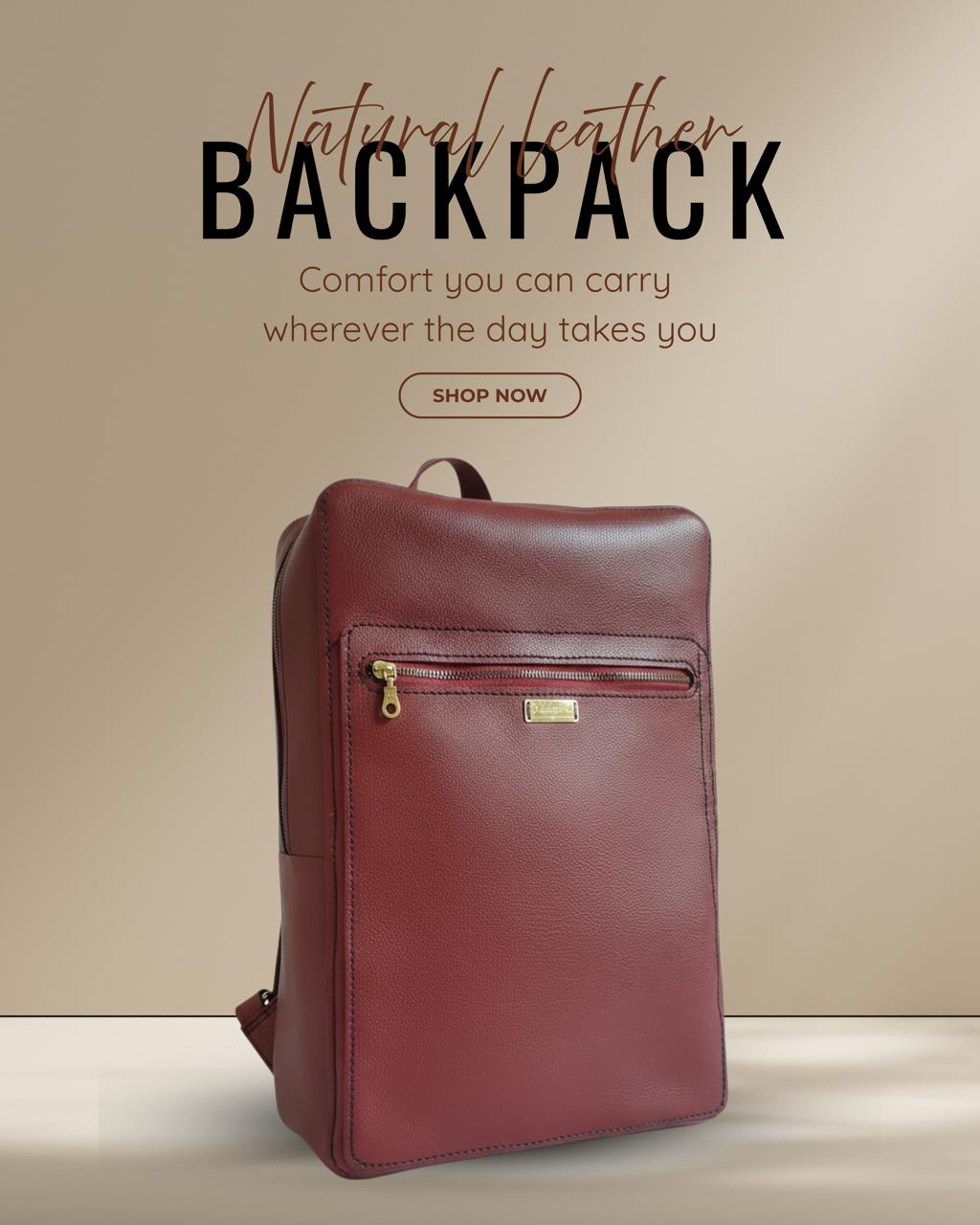 simple and sophisticated lovely unique red backpack, crafted by hand from premium natural leather.