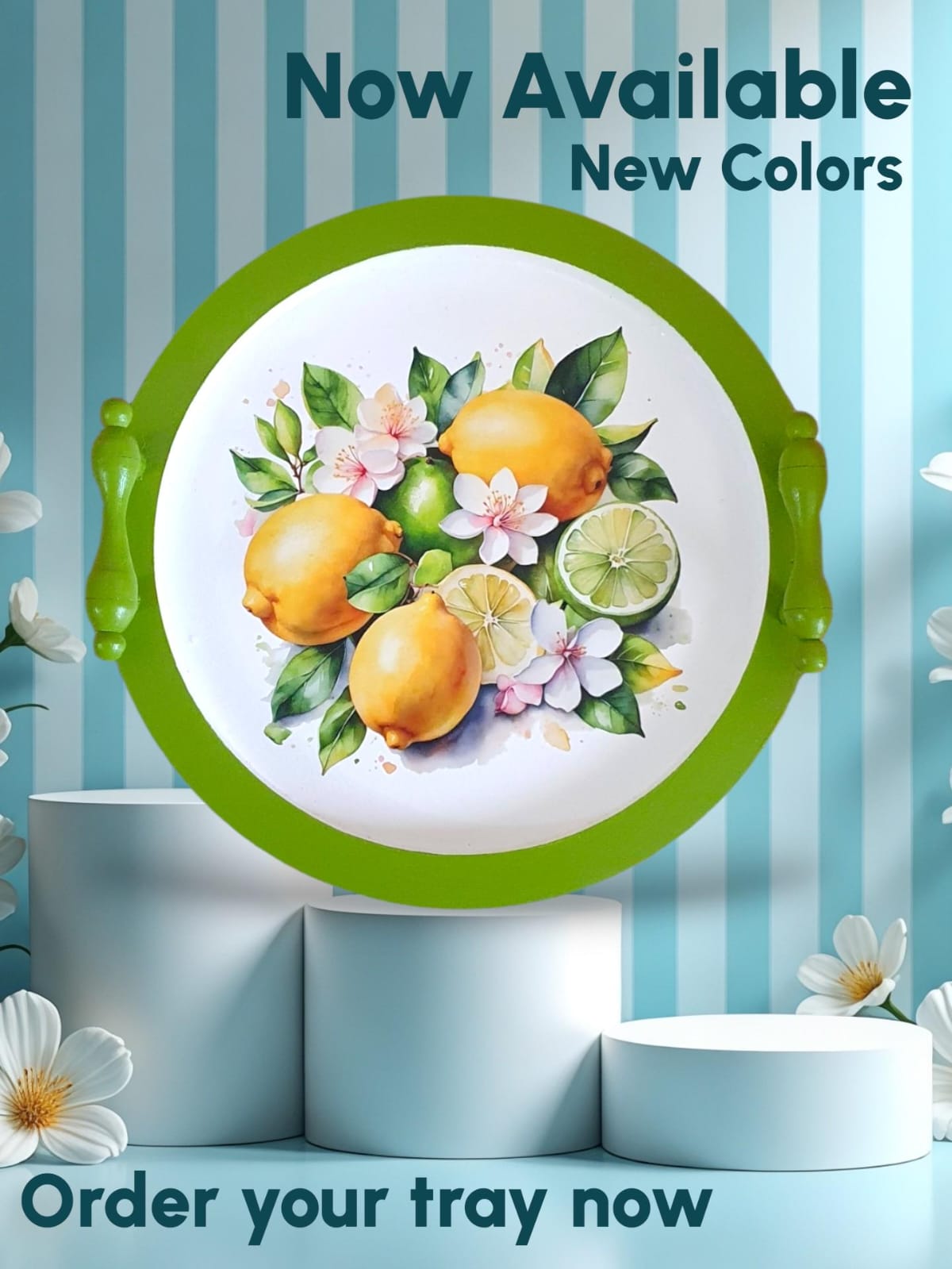 A wooden tray decorated with a fresh lemon breeze