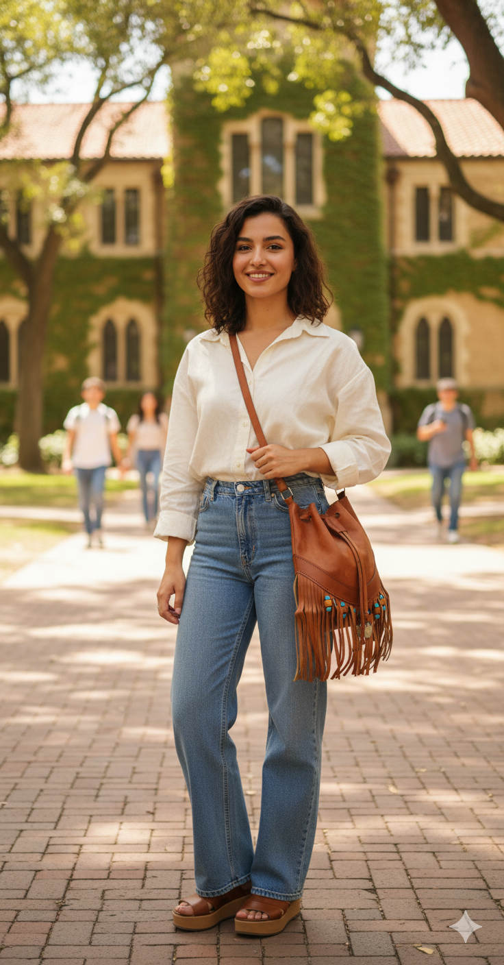 حقيبة يد جلدية بوهيمية بشراشيب