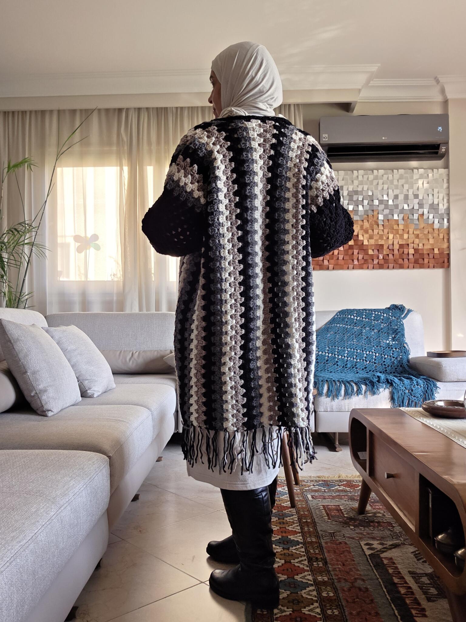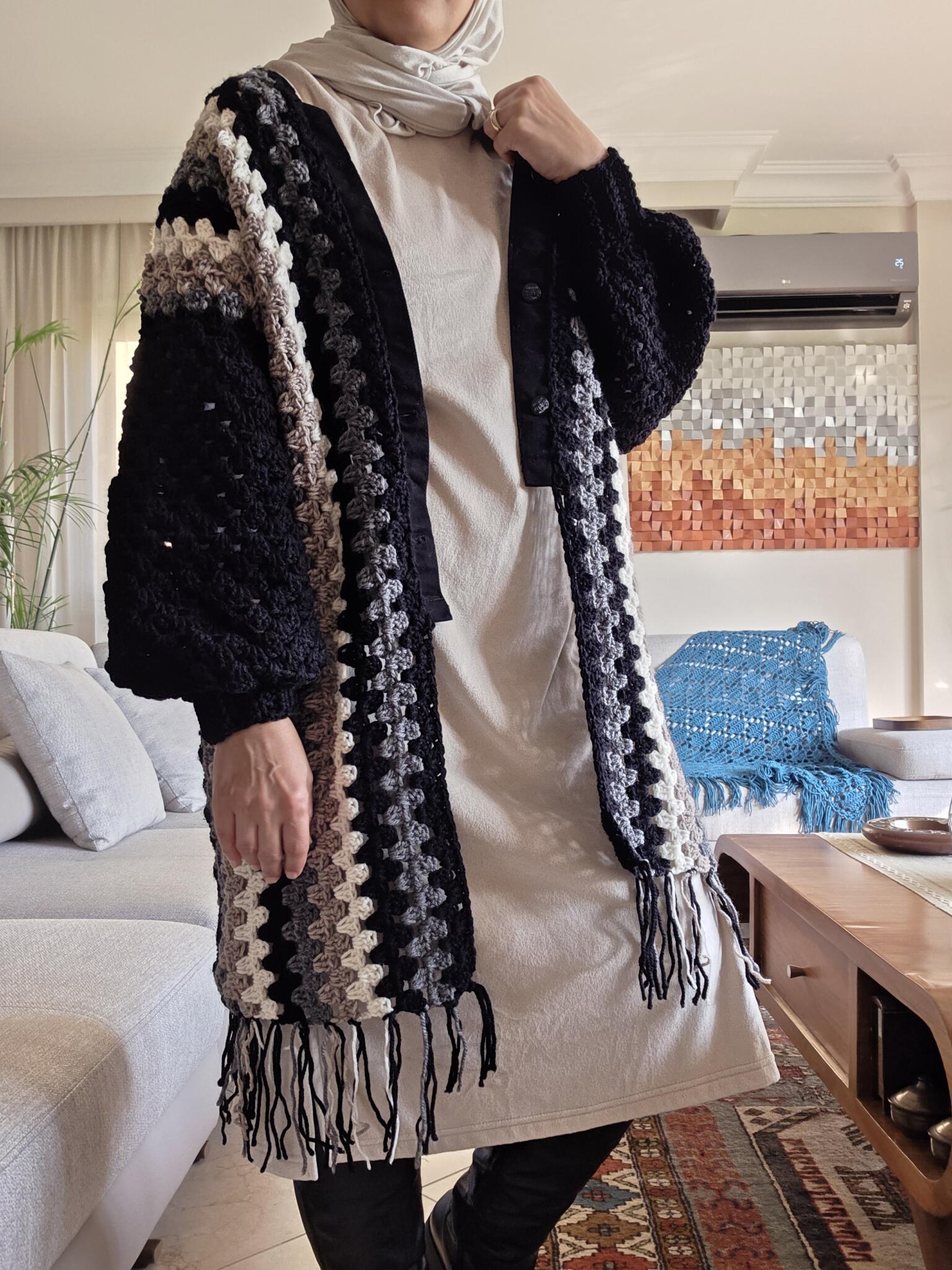 a handmade granny-stripes piece designed for warmth comfort, and everyday elegance. Perfect for layering👌