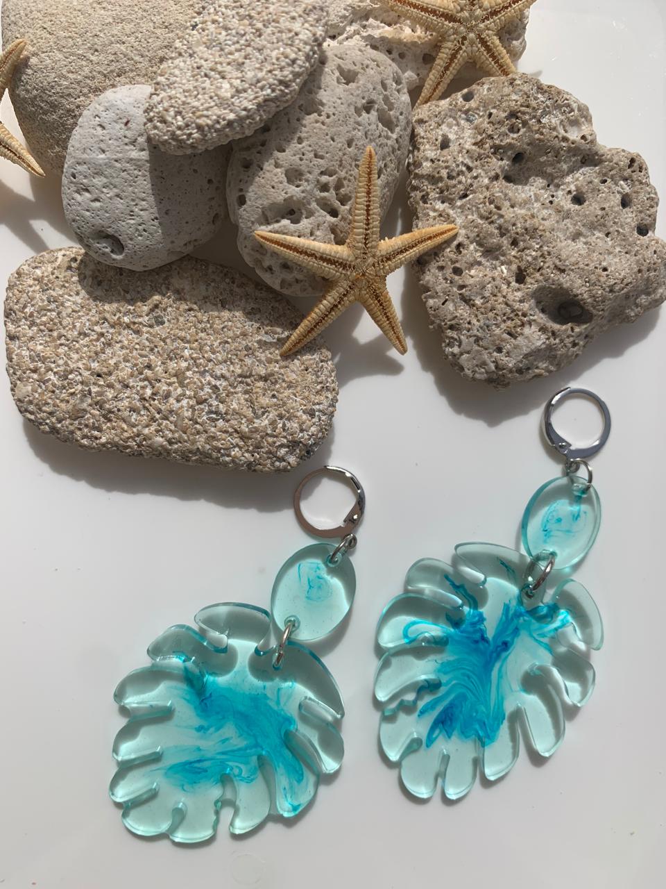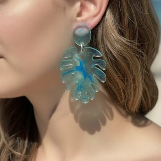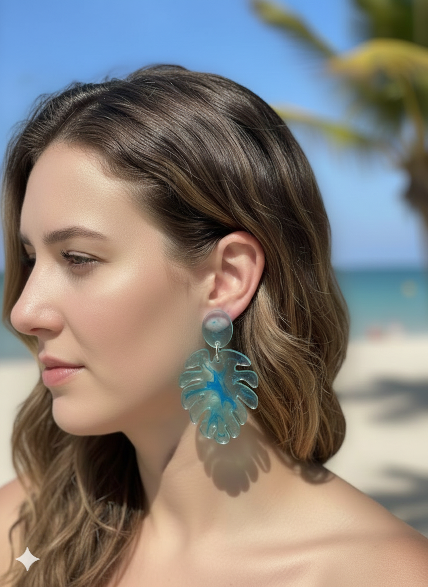 These handcrafted statement earrings bring the vibrant spirit of the islands to your jewelry collection. Combining the iconic silhouette of the Monstera leaf with the fluid beauty of the ocean, these pieces are designed for those who love bold, nature-inspired art.