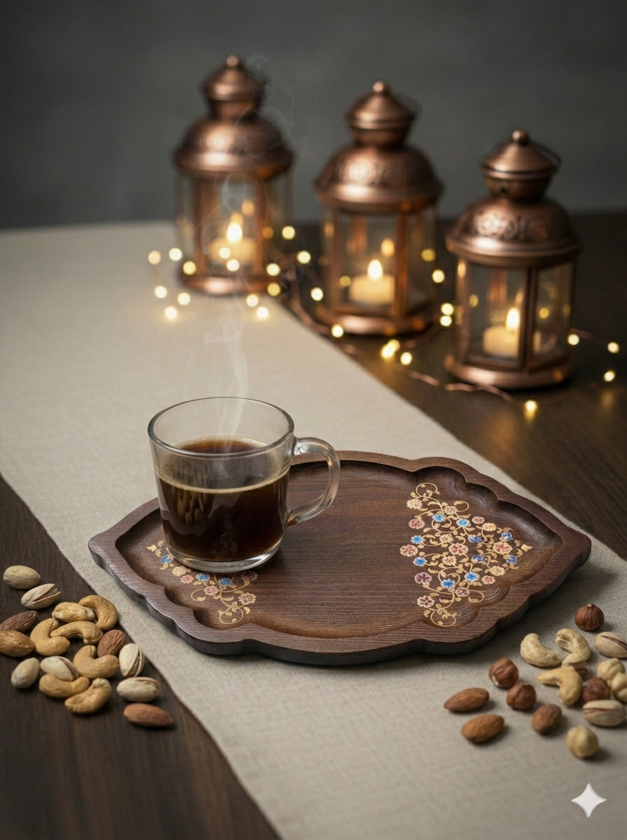 ضيافة ملكية: بمقاسه المثالي (26×17 سم)، صُمم ليحتوي كوب قهوتك المفضل بجانب قطع الكحك، البتي فور، أو المكسرات الفاخرة.