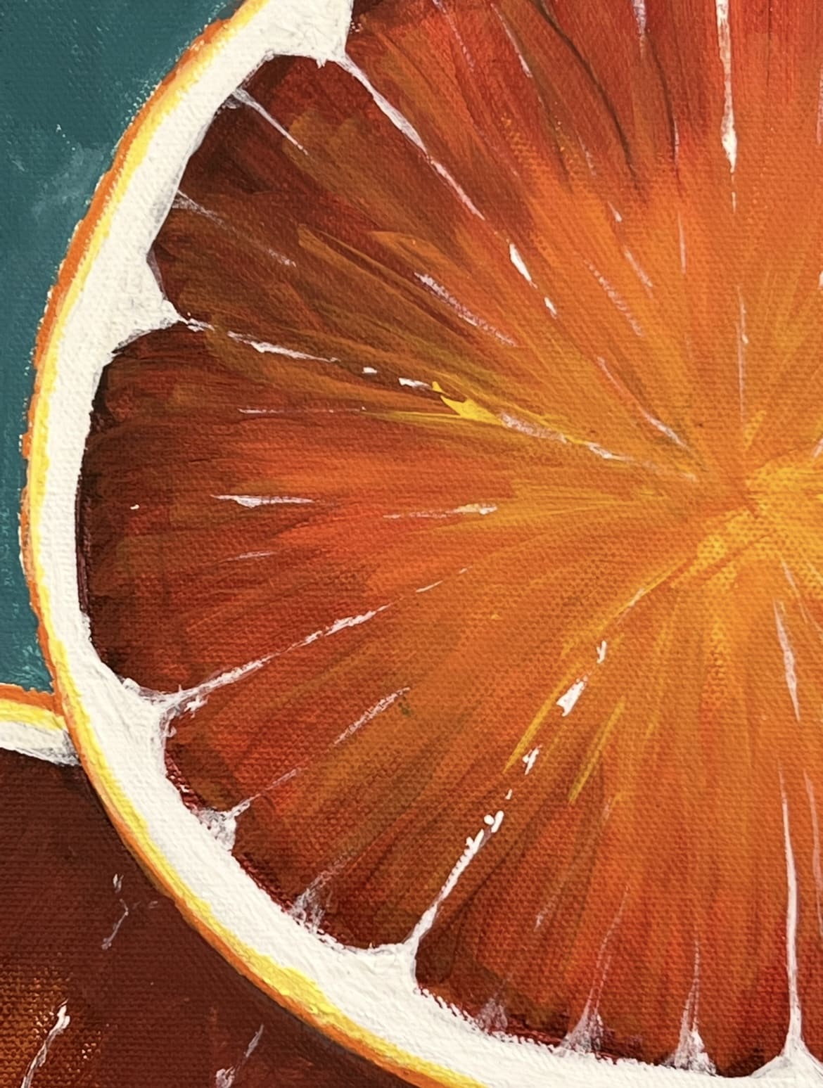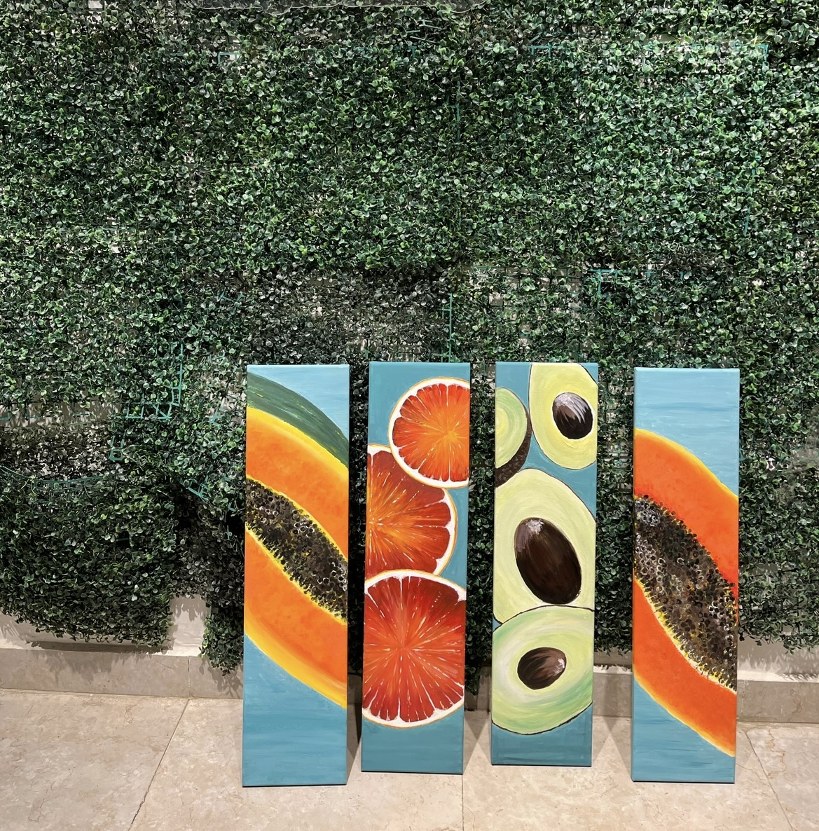 Papayas, avocado & orange in acrylic medium. A set of 4 canvas (20 x 80)