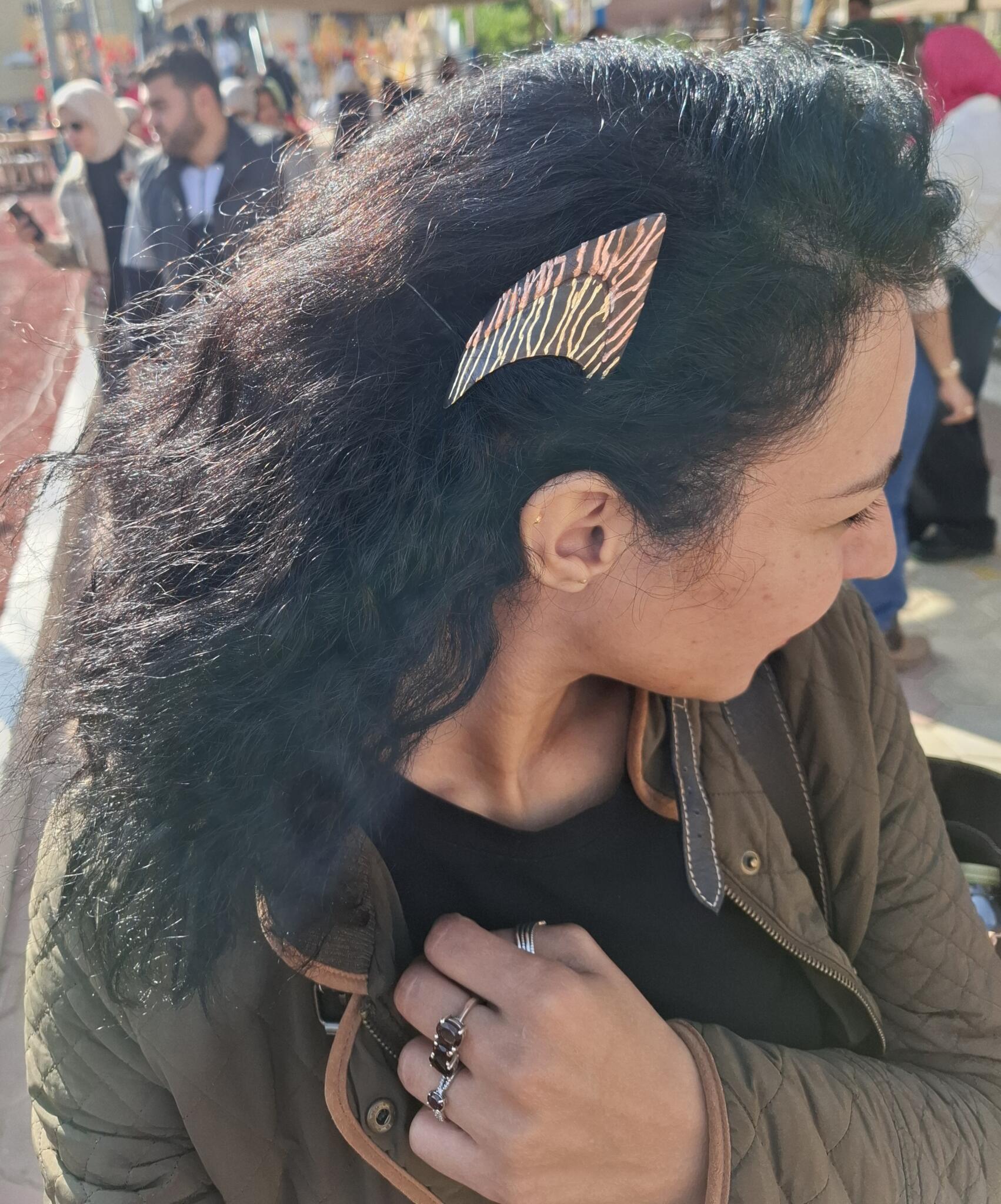 The Tweaks headpieces are not meant for grand events. They are made for everyday outfits, because beauty should be felt daily, especially on a bad hair day when it is out of mood. The Flame Tweak headpiece is designed with dual function, it can be worn on the side or the back. The Angel Tweak headpiece is designed to be worn on the back. The Elf Tweak headpiece is designed to be worn on the side. How to wear them:
