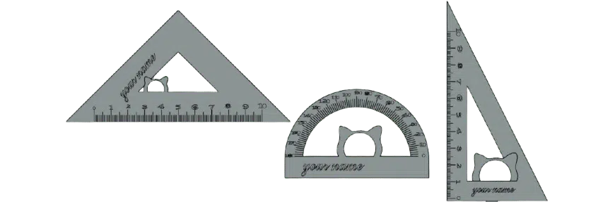 - Protractor: A wooden half-circle used to measure angles, it has engraved or clearly printed markings from 0 to 180 degrees on the front. The protractor is carefully crafted with smooth edges to ensure accurate angle measurements.