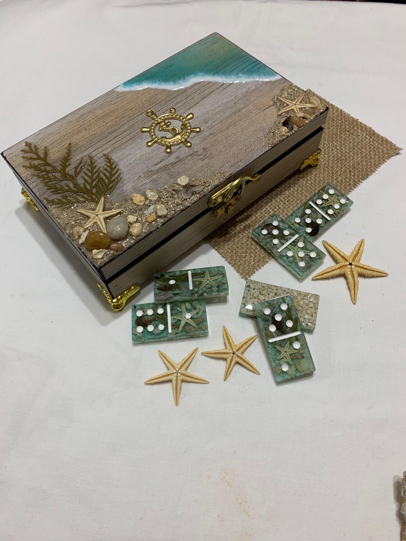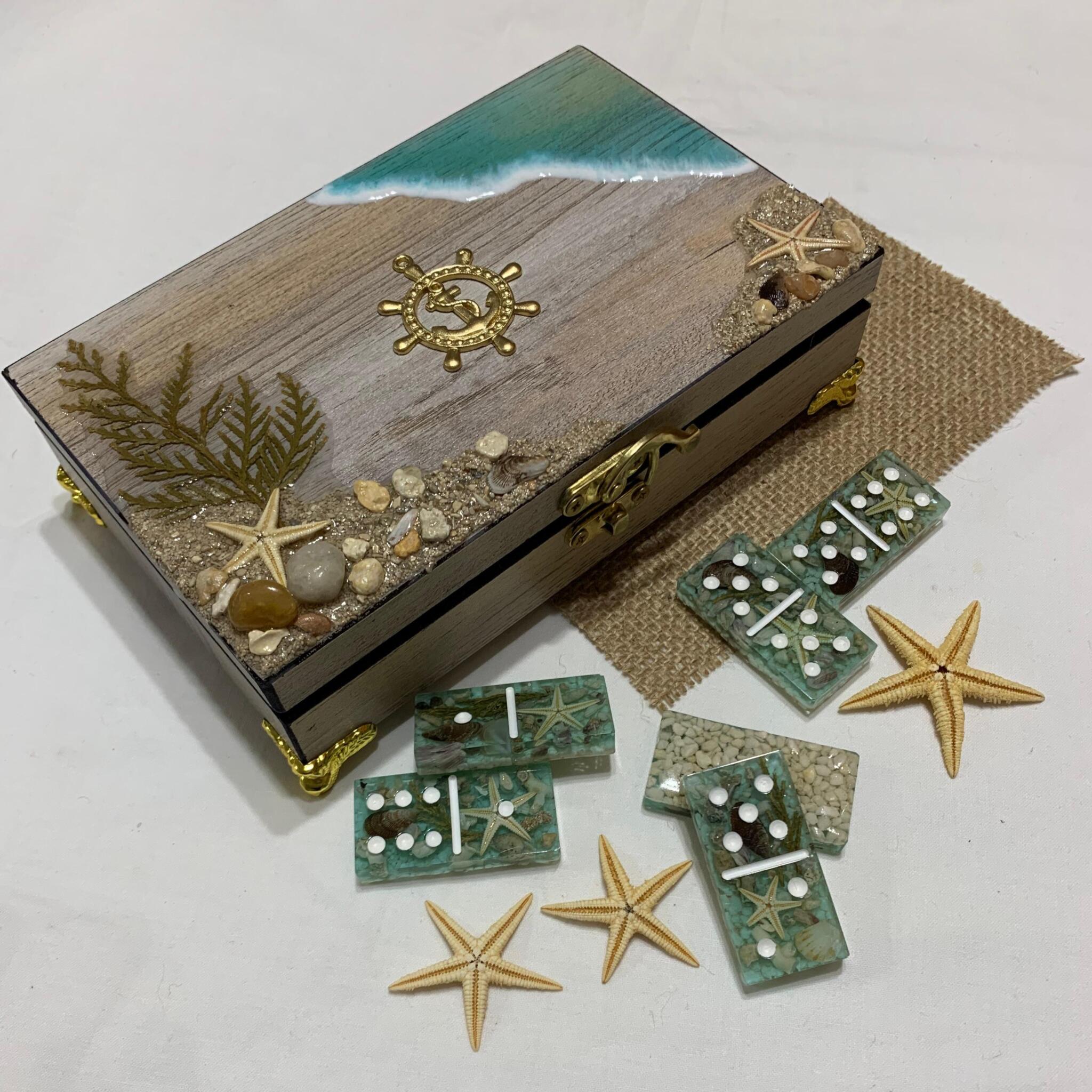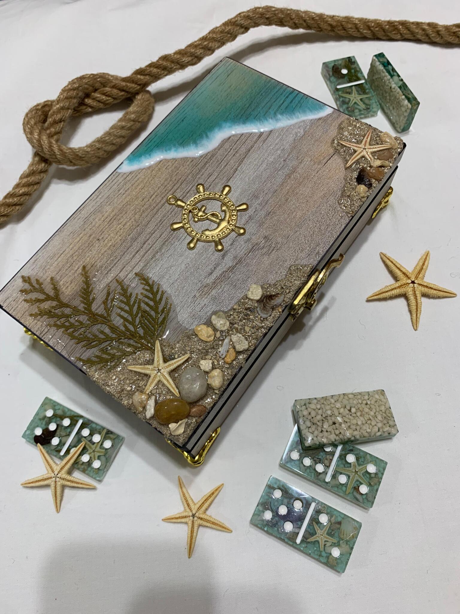 Inside, each domino is a window into the deep—clear, sea-glass resin tiles that preserve real miniature starfish, shells, and aquatic greenery. It’s more than a game; it’s a captured moment of the shoreline, designed for those who carry the sea in their soul.