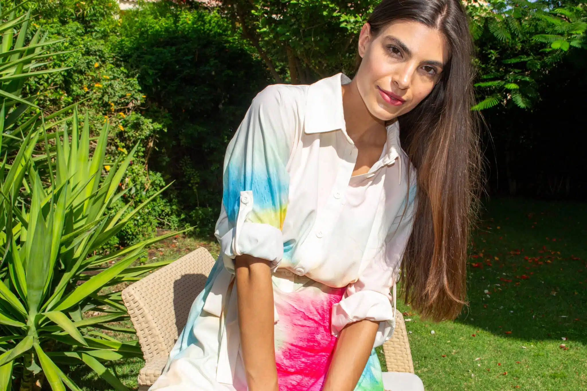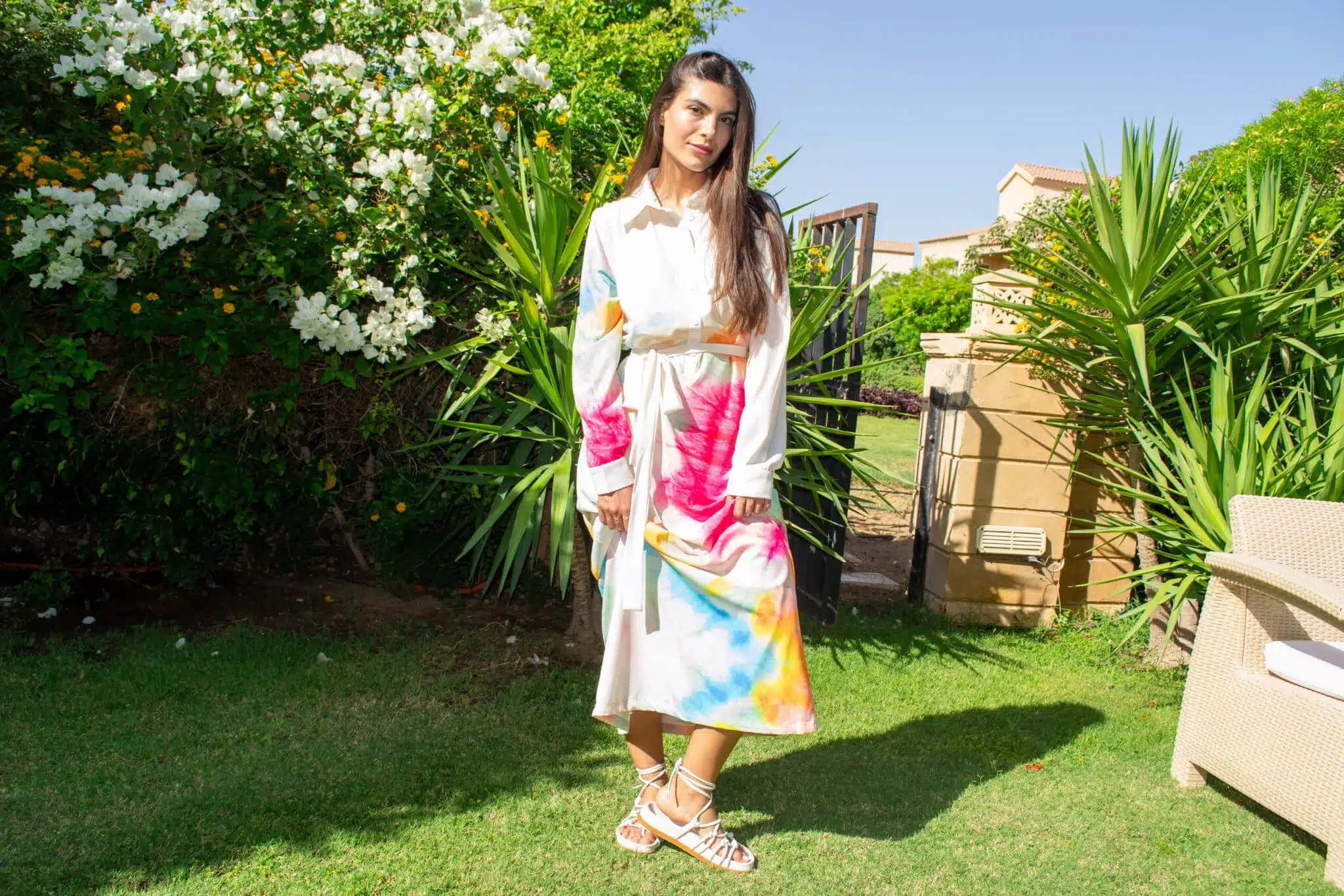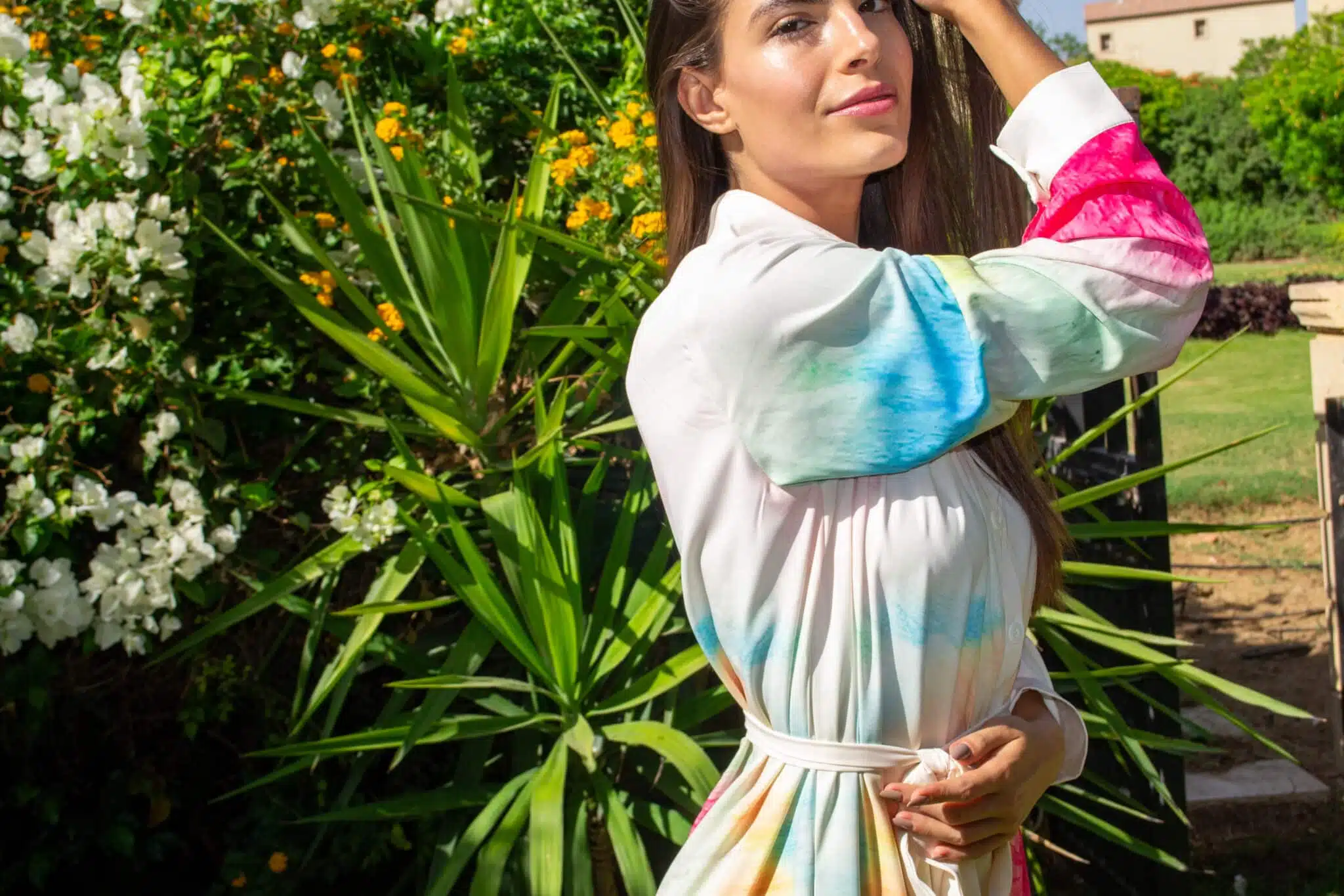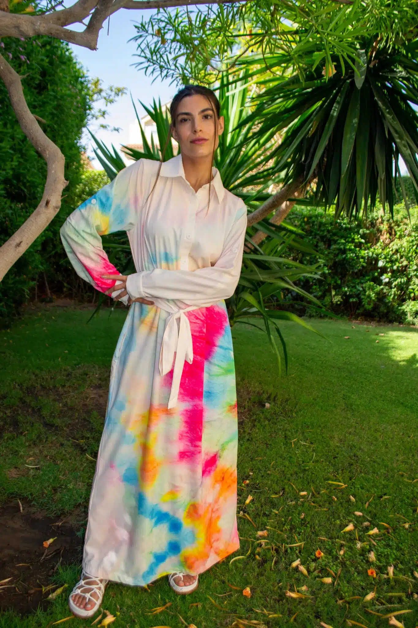 Long sleeve colorful tie dye dress