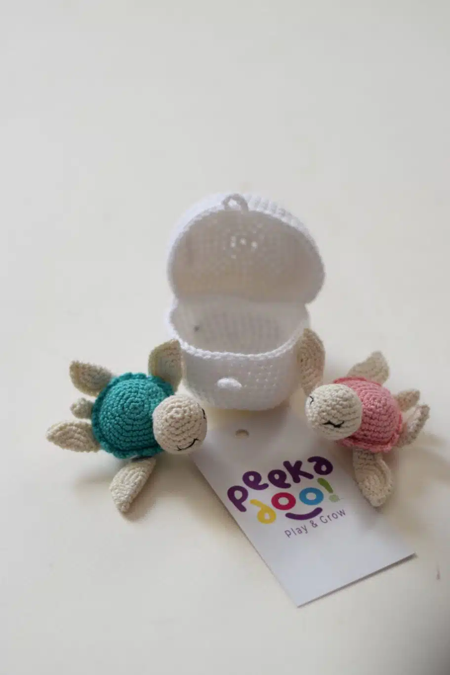 Introduce your little one to Timmy the Turtle Egg, a beautifully handcrafted crochet toy designed to enhance sensory exploration and imaginative play. Made with 100% natural cotton yarn, this soft and eco-friendly toy is perfect for babies and toddlers, offering a safe and cuddly playtime experience.