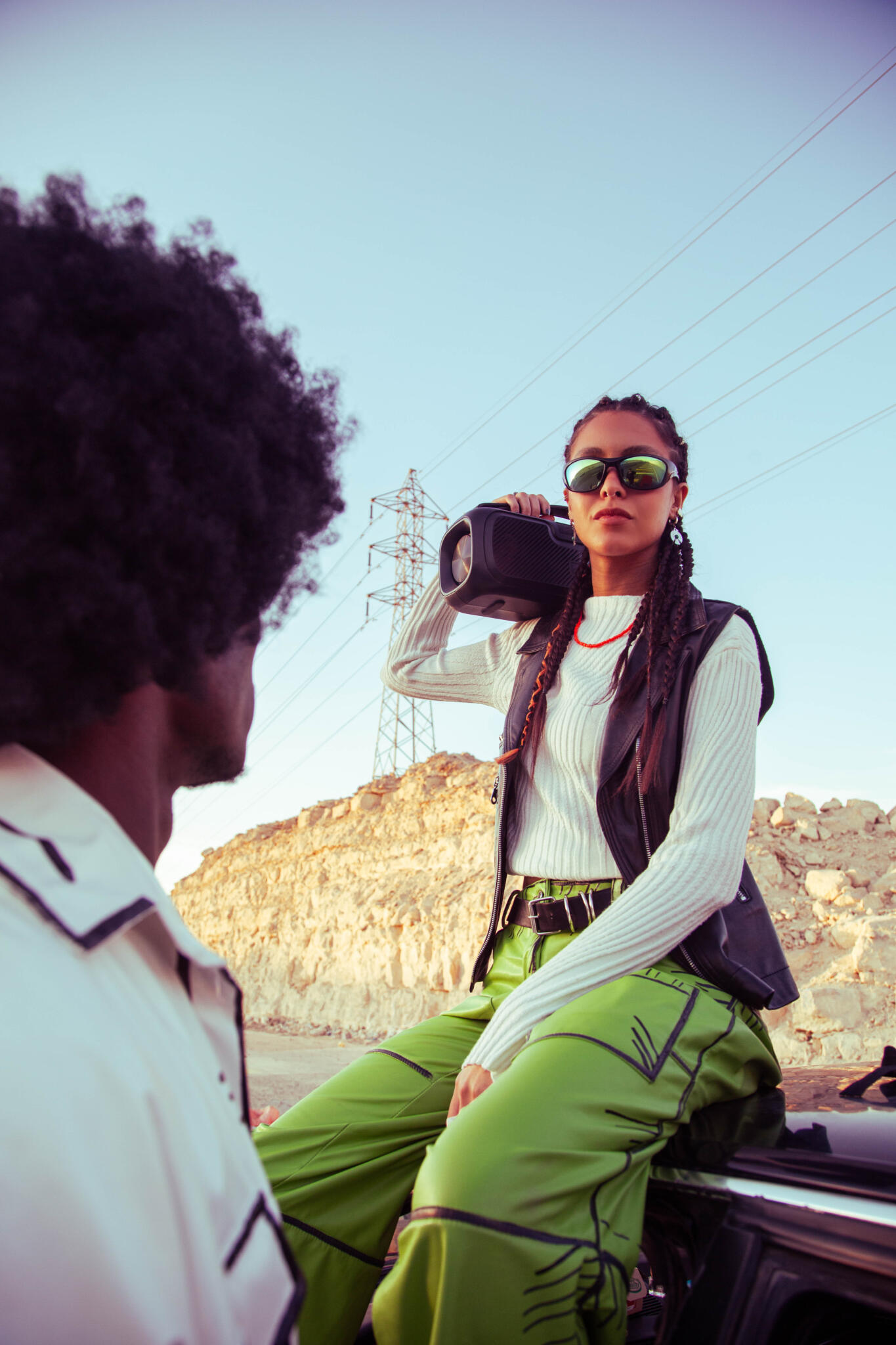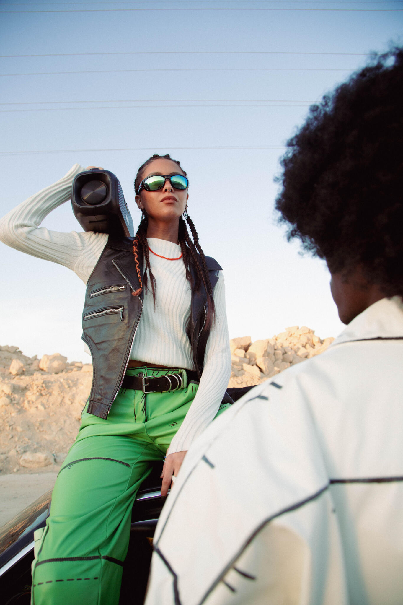 . kiwi-green leather pants