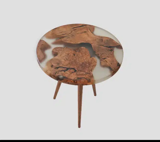 Side Table made of Olive wood with transparent Epoxy size 50cm hight 45cm