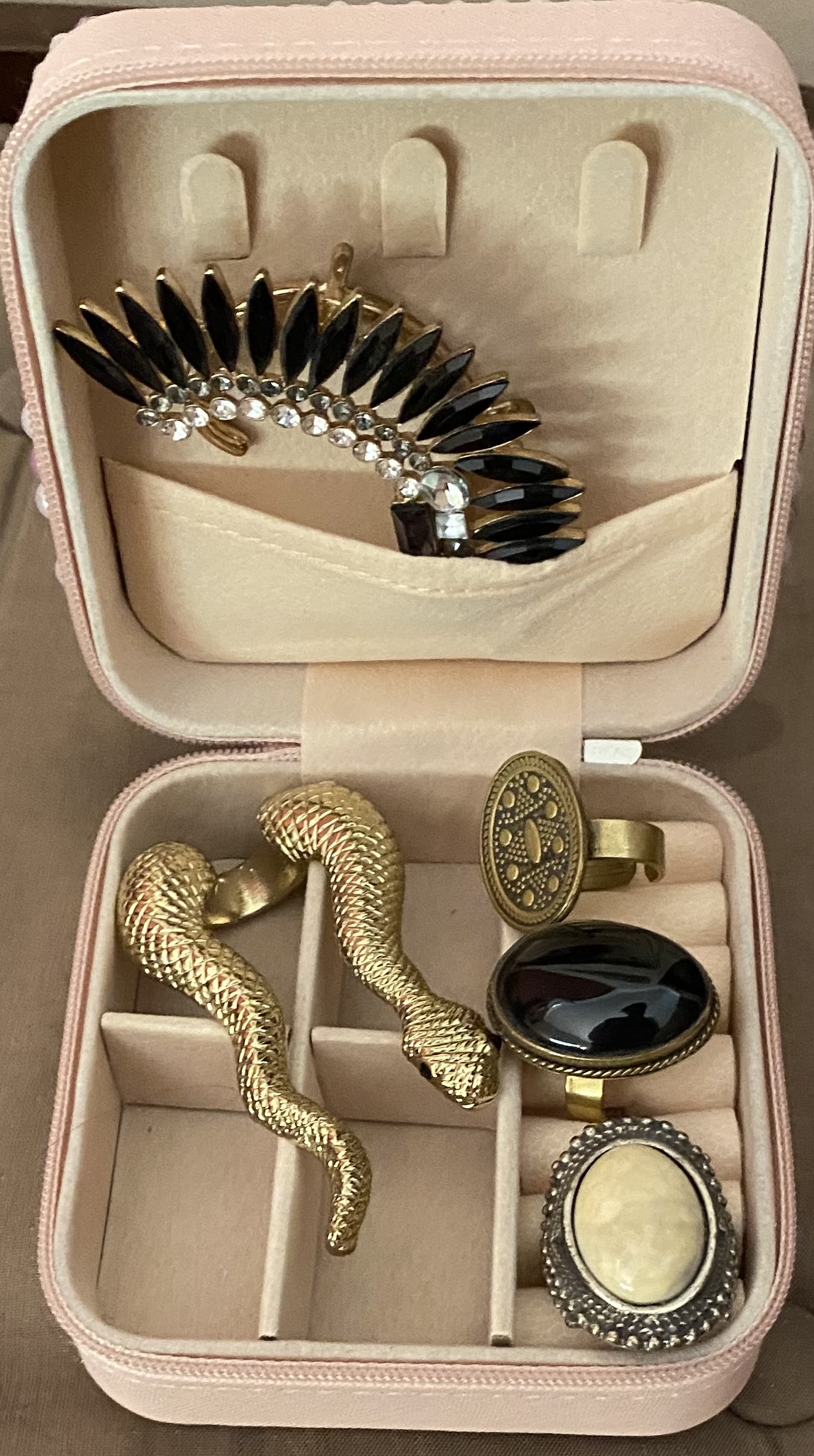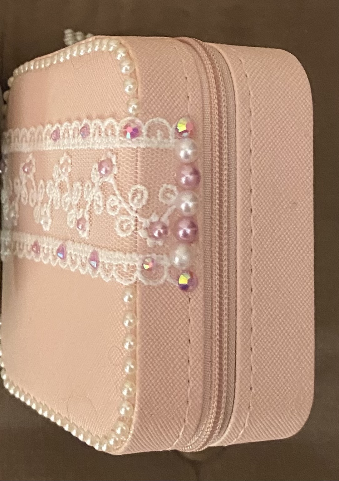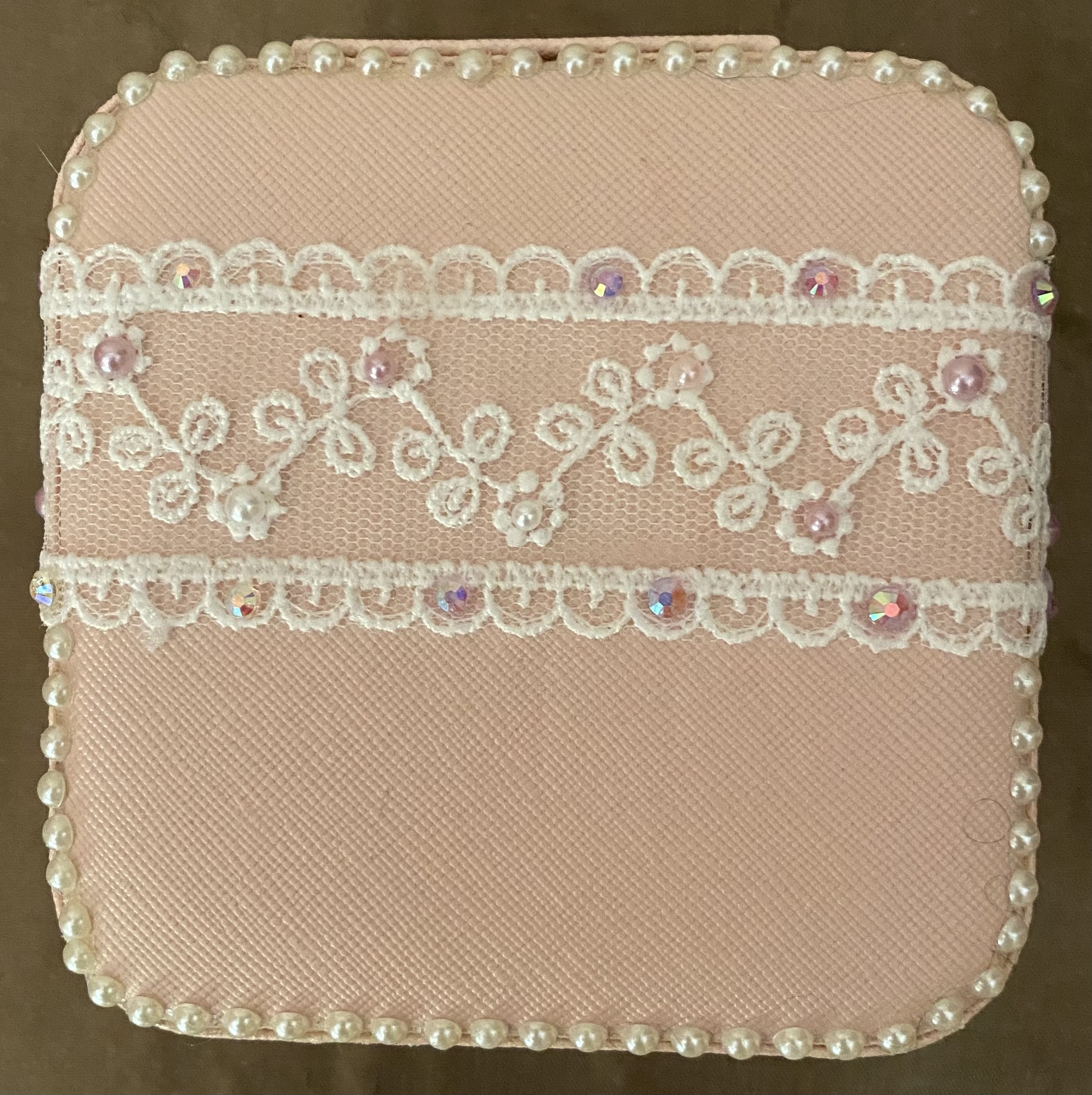 decorated with pearls and rhinostones