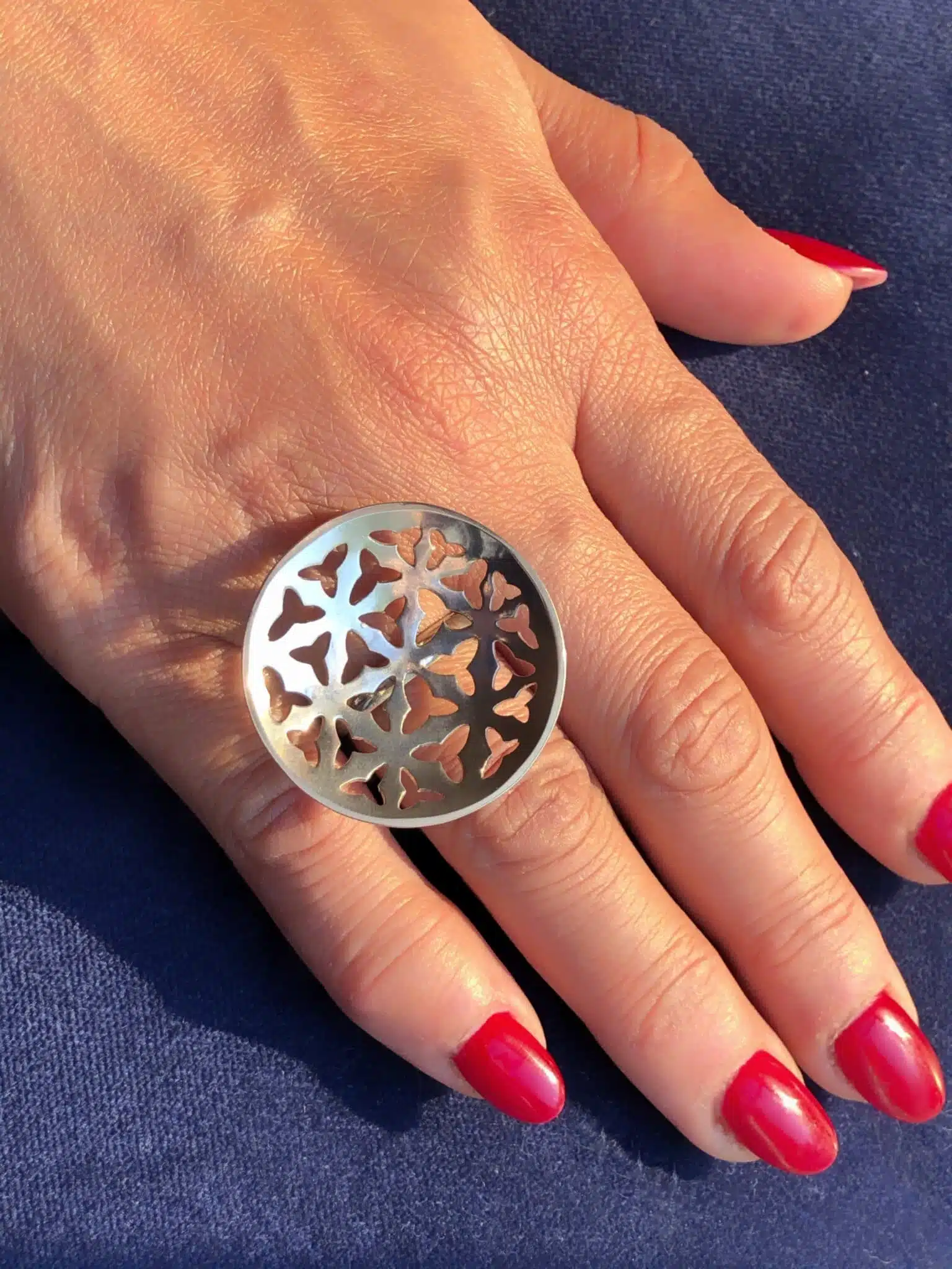 Saw Sterling silver hand pierced trillium ring.