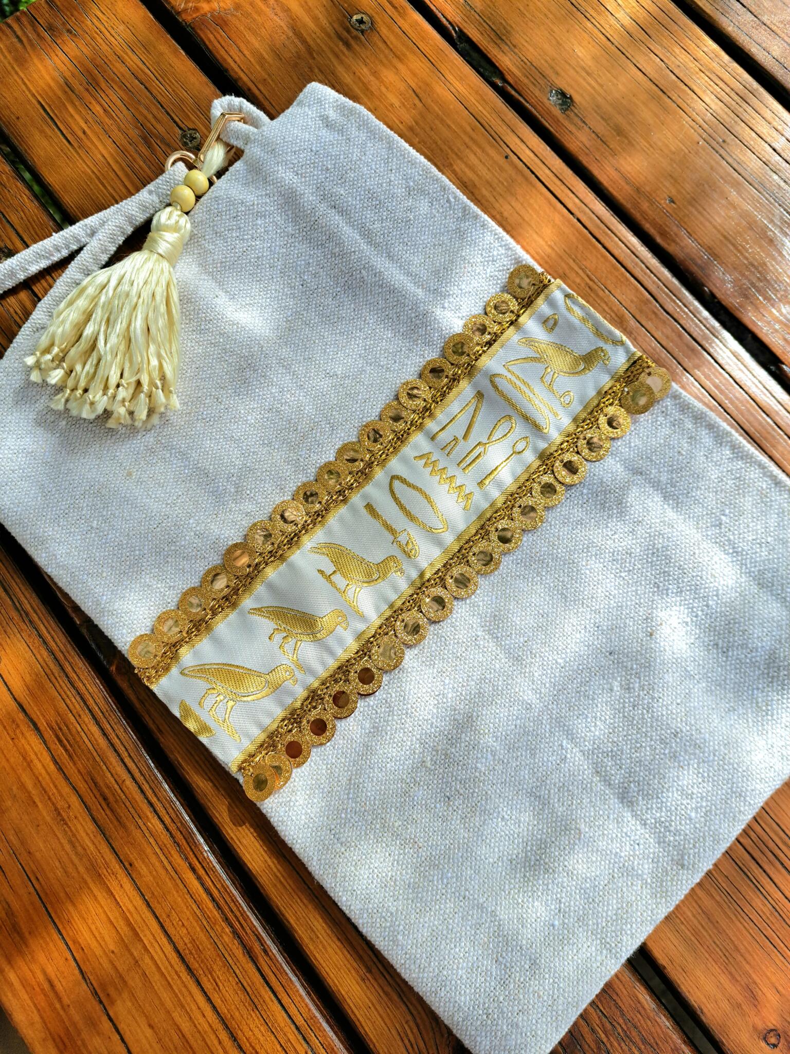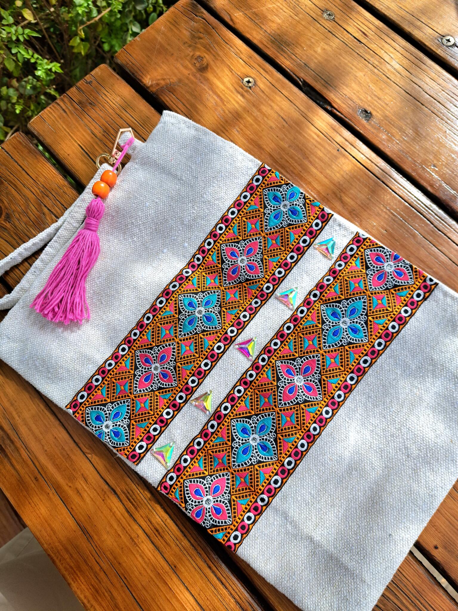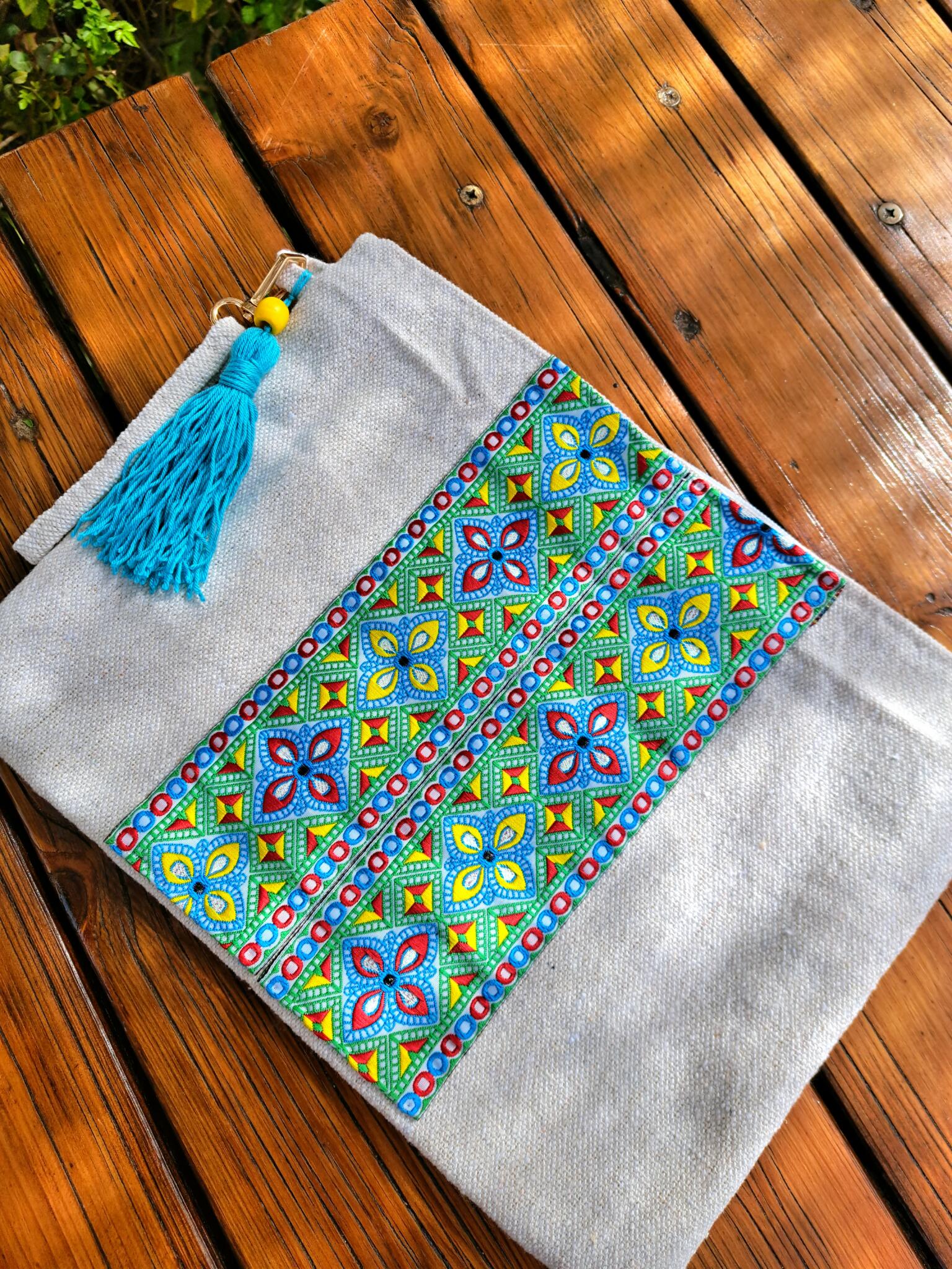 Handmade clutch with inner coating & zipper.
