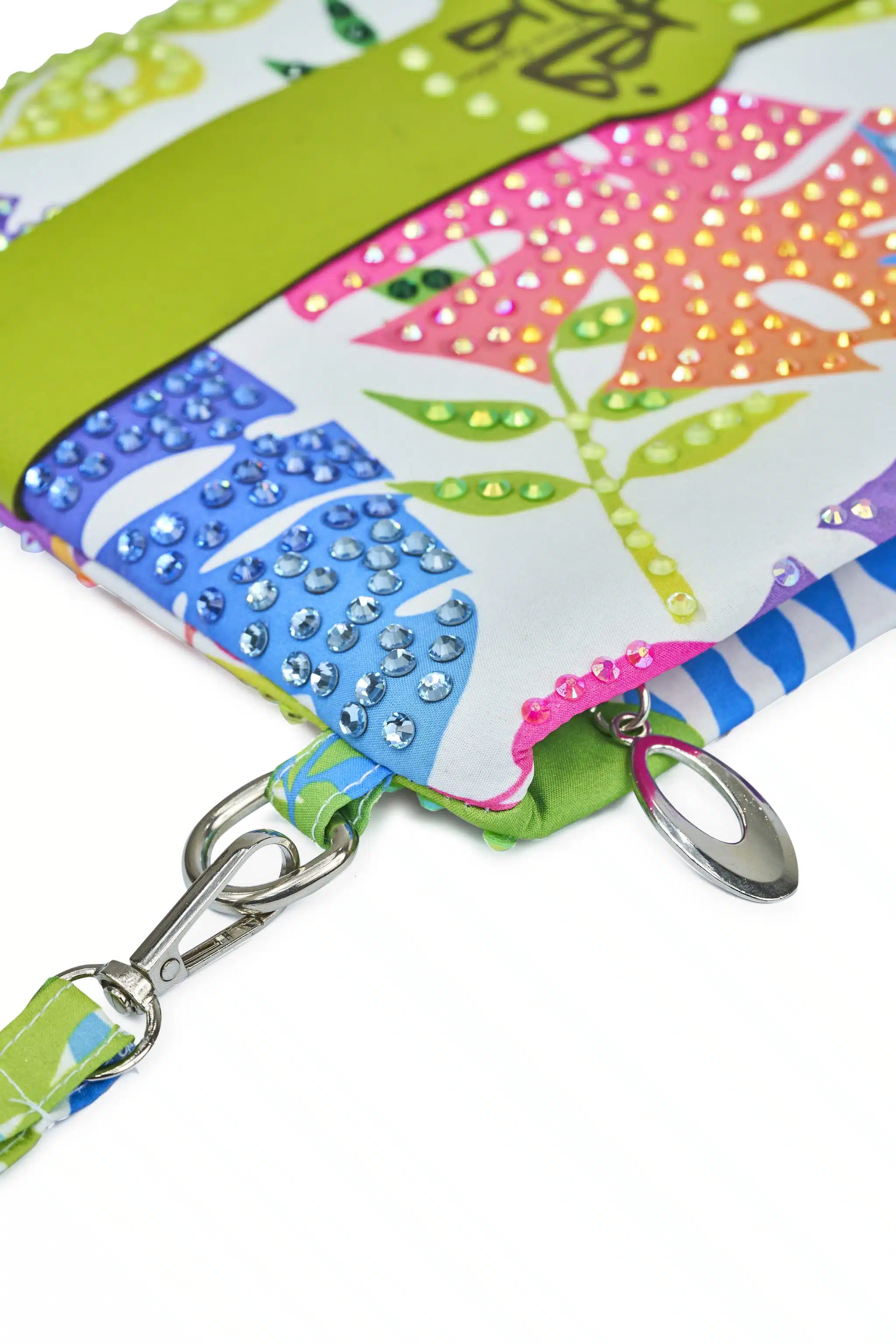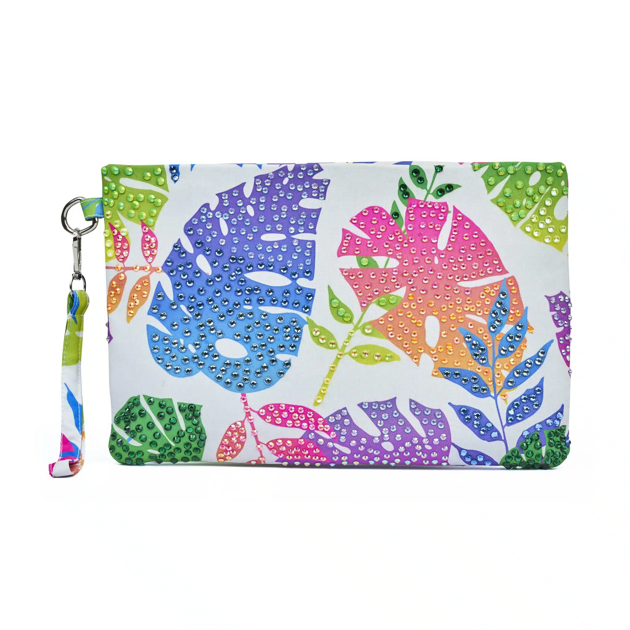 Embrace the vibrant spirit of the tropics with our stunning Tropical Leaves Rhinestone Clutch! This eye-catching accessory features a unique design adorned with sparkling rhinestones that beautifully capture the essence of lush foliage. Perfect for adding a touch of exotic flair to any outfit, this clutch is a must-have for fashion lovers and trendsetters alike.