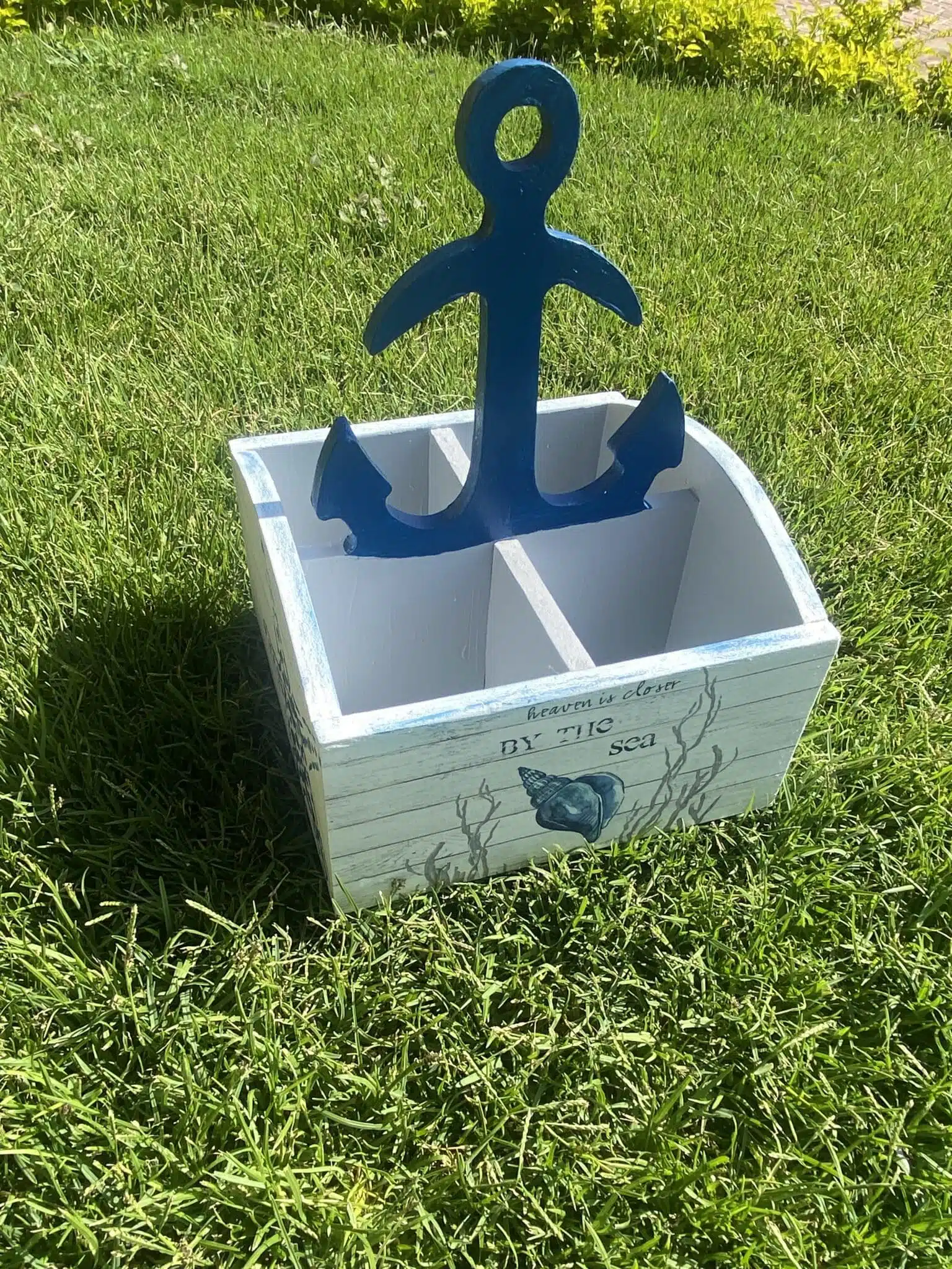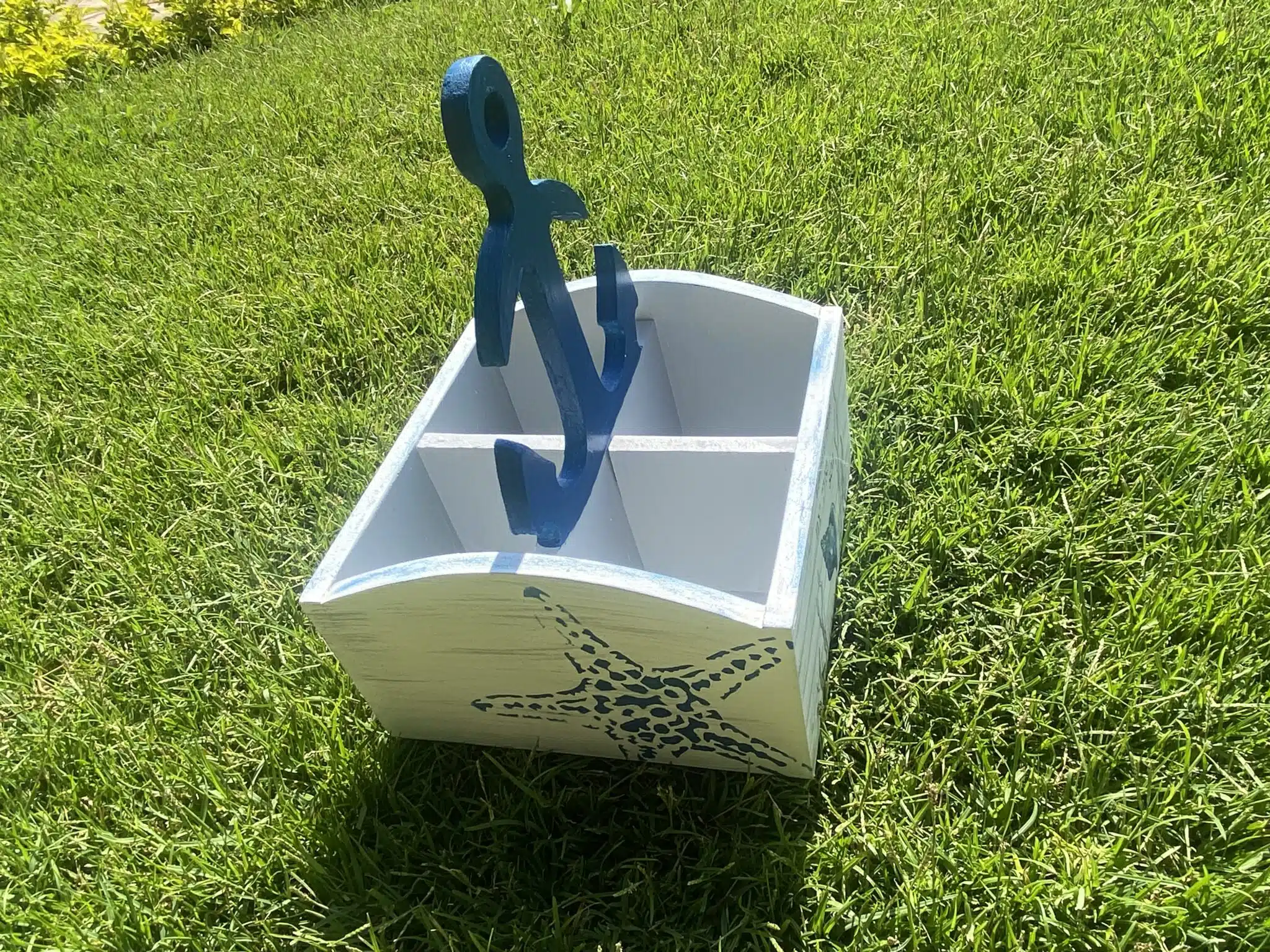 Wooden anchor cutlery organizer