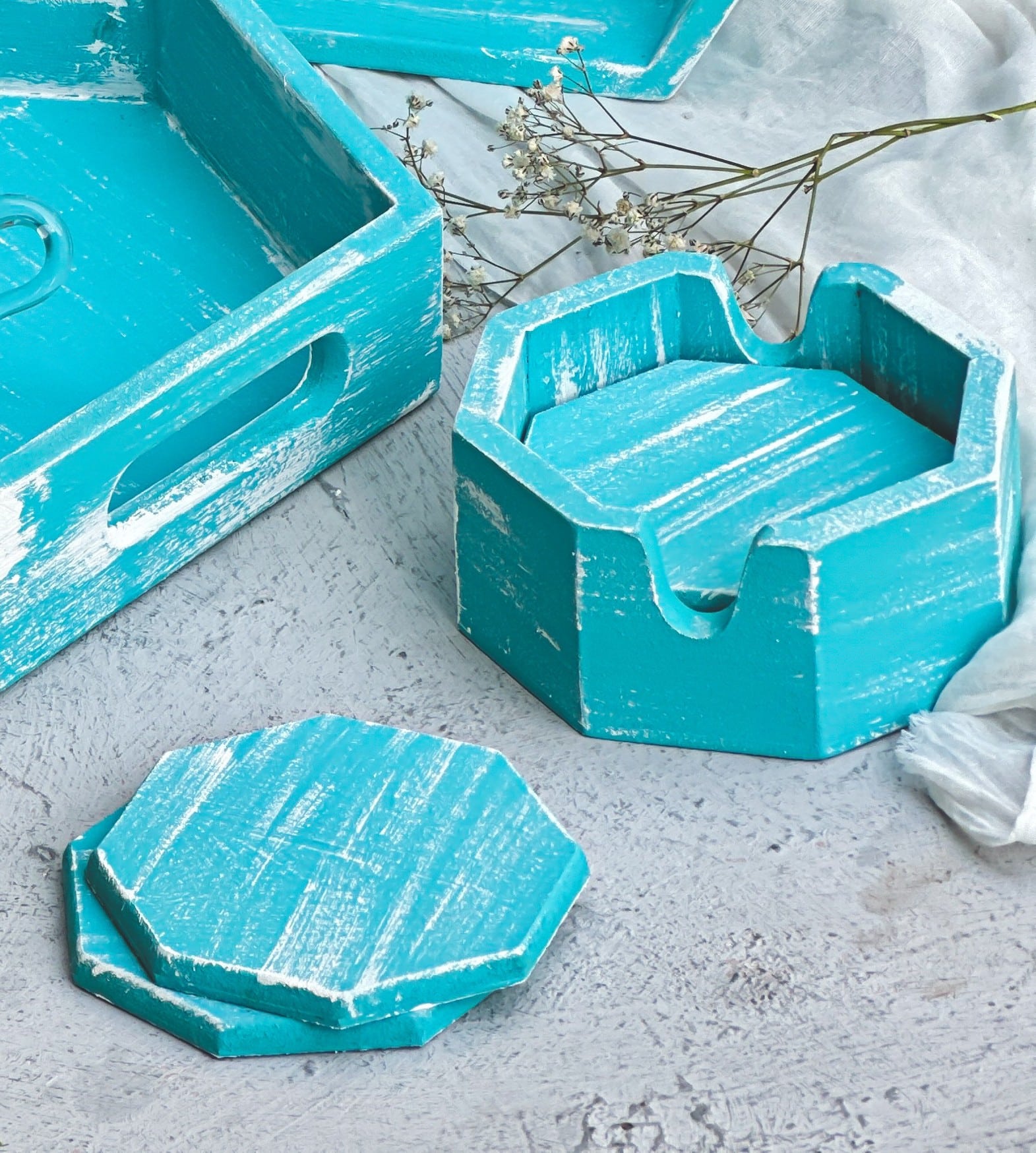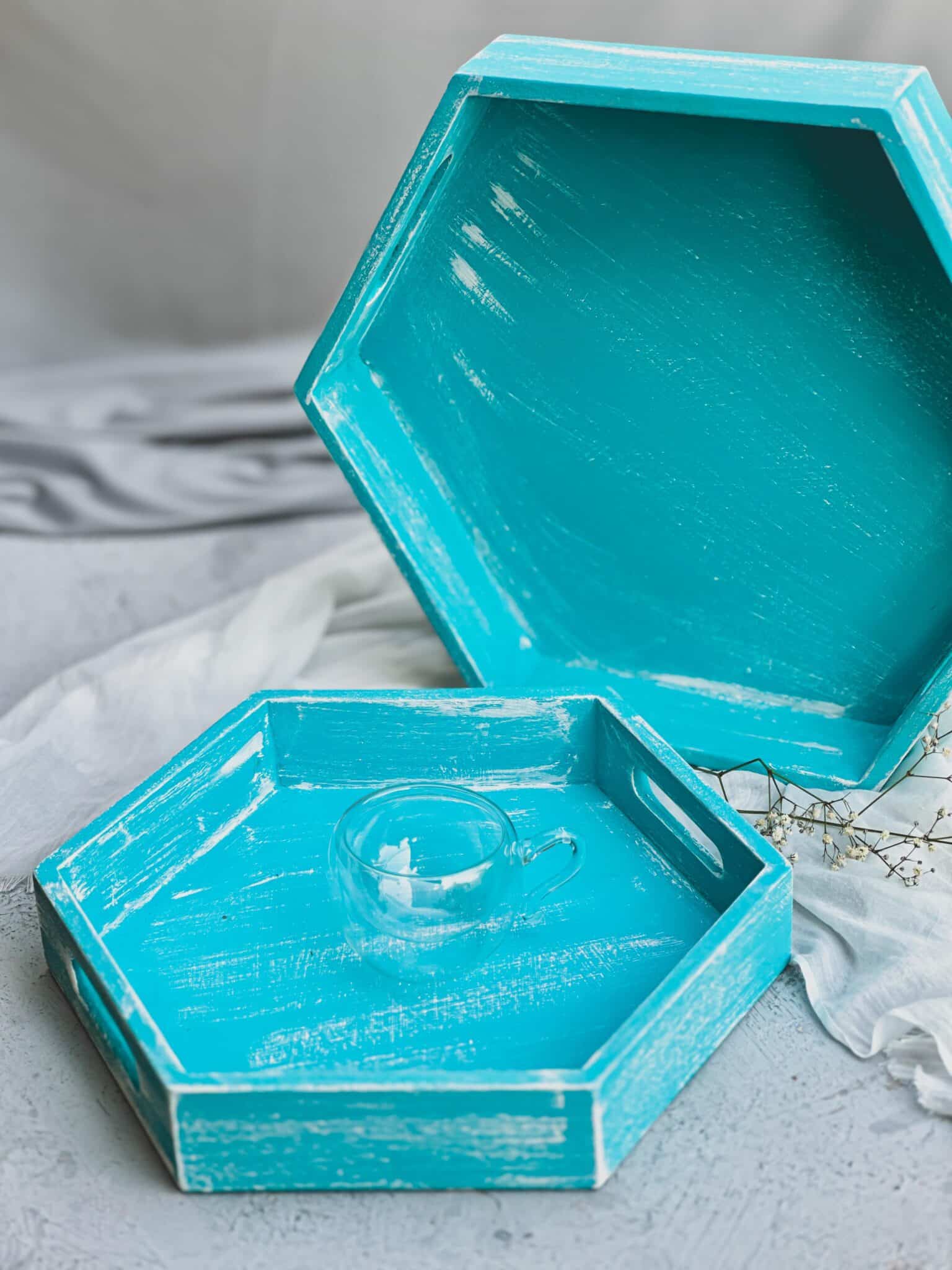 Turquoise hexagon trays set
