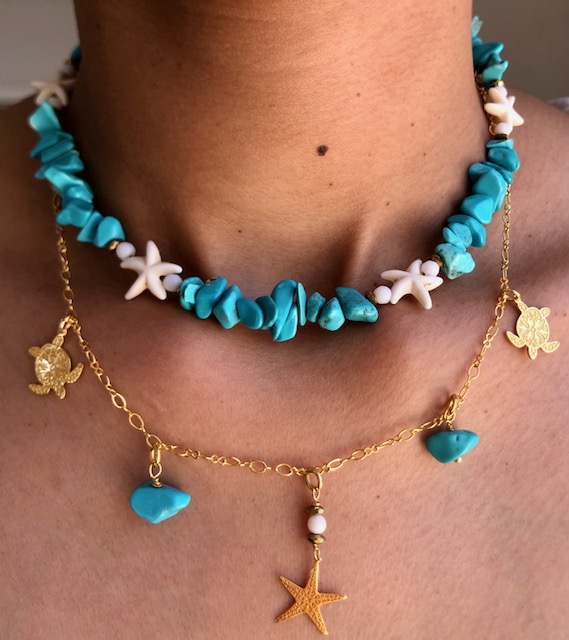 Crafted in 18k gold-plated brass with ocean-hued stones, every charm holds a piece of marine magic.