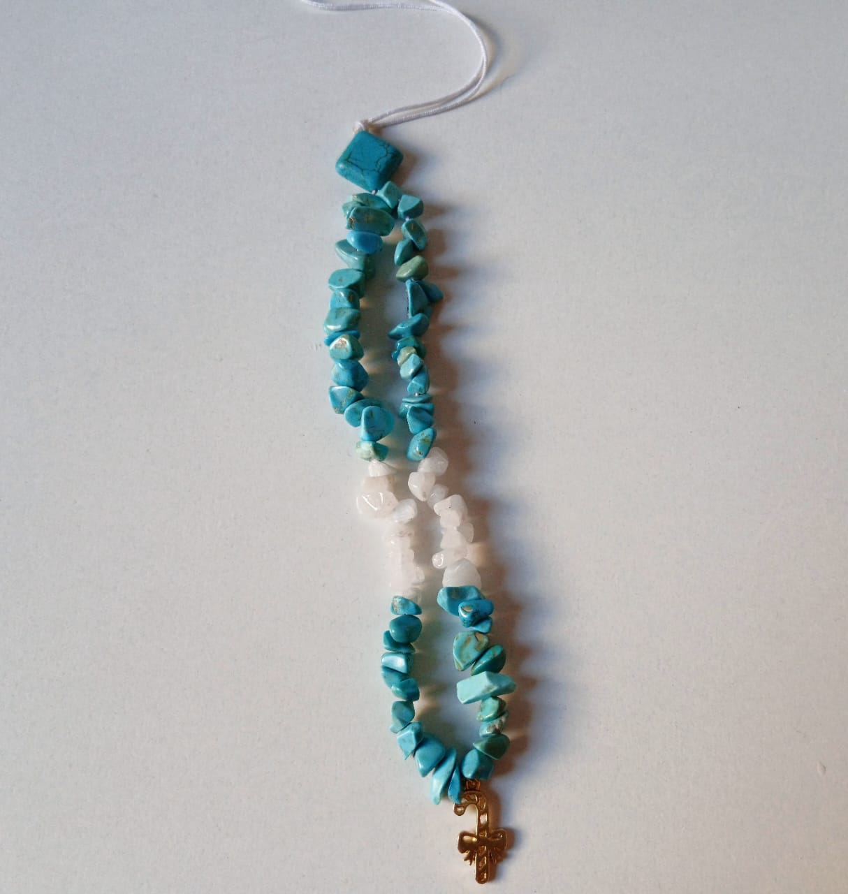 Mobile chain made of turquoise and white chip stone beads with a xmas stick pendant