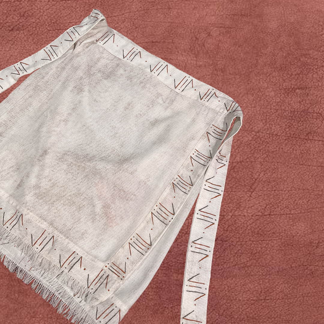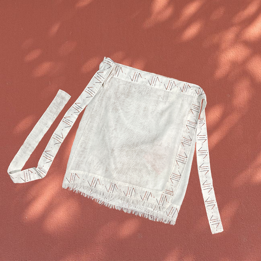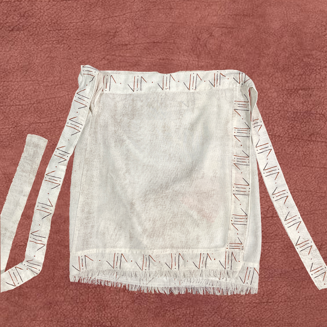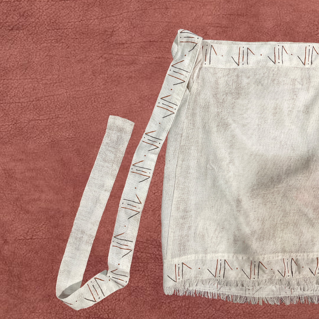 Wrap linen hand painted skirt crafted from textured African linen in a white, gray & beige tones.