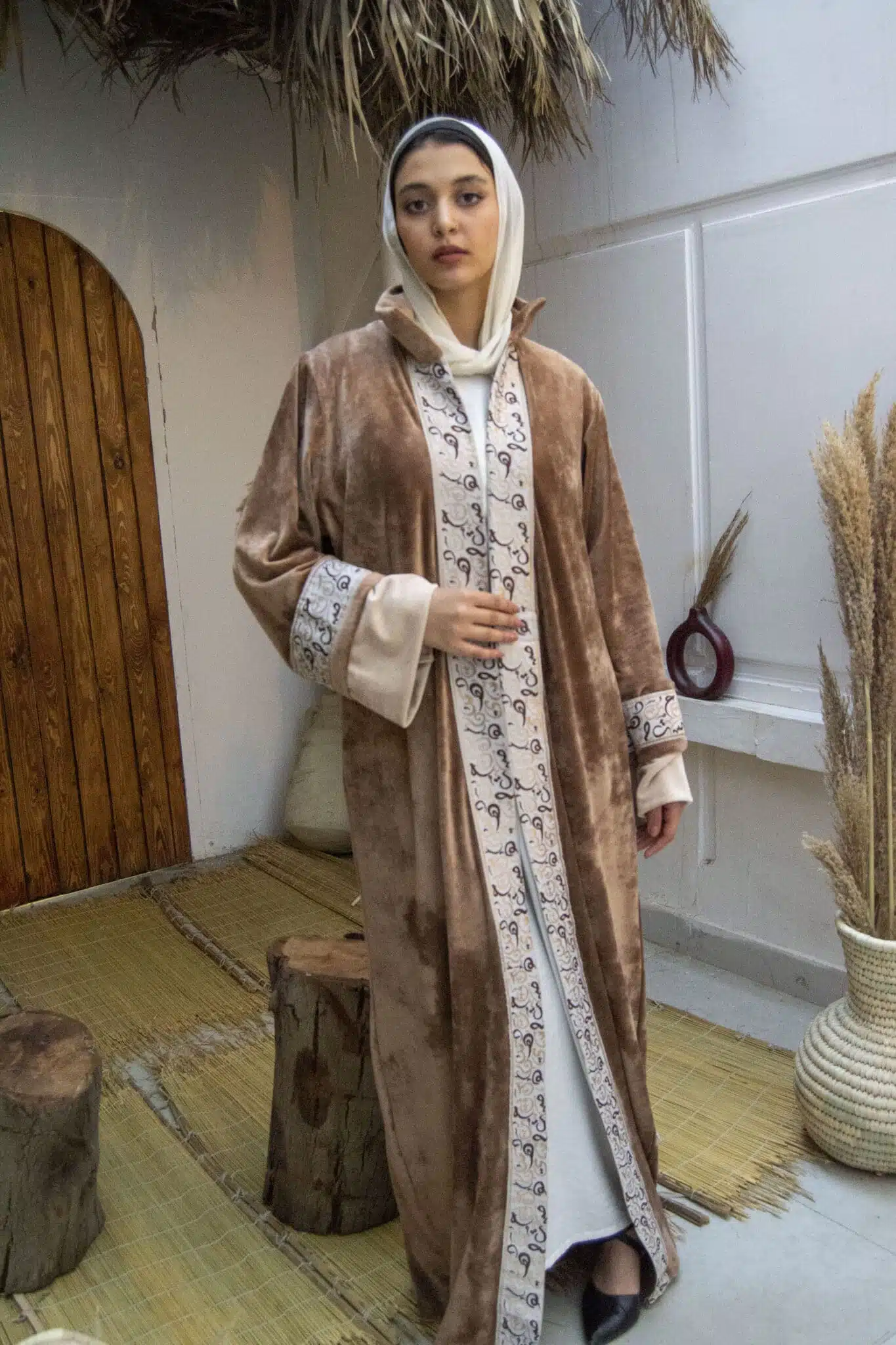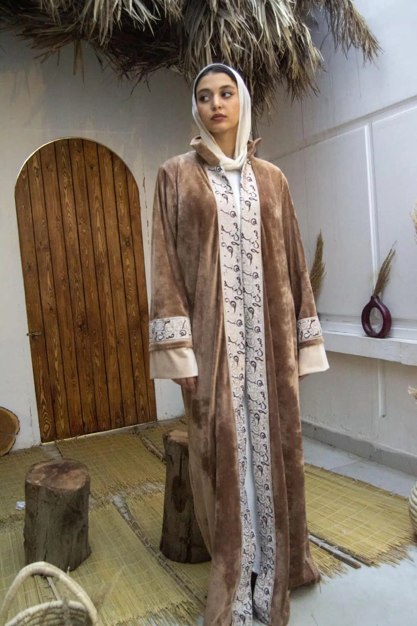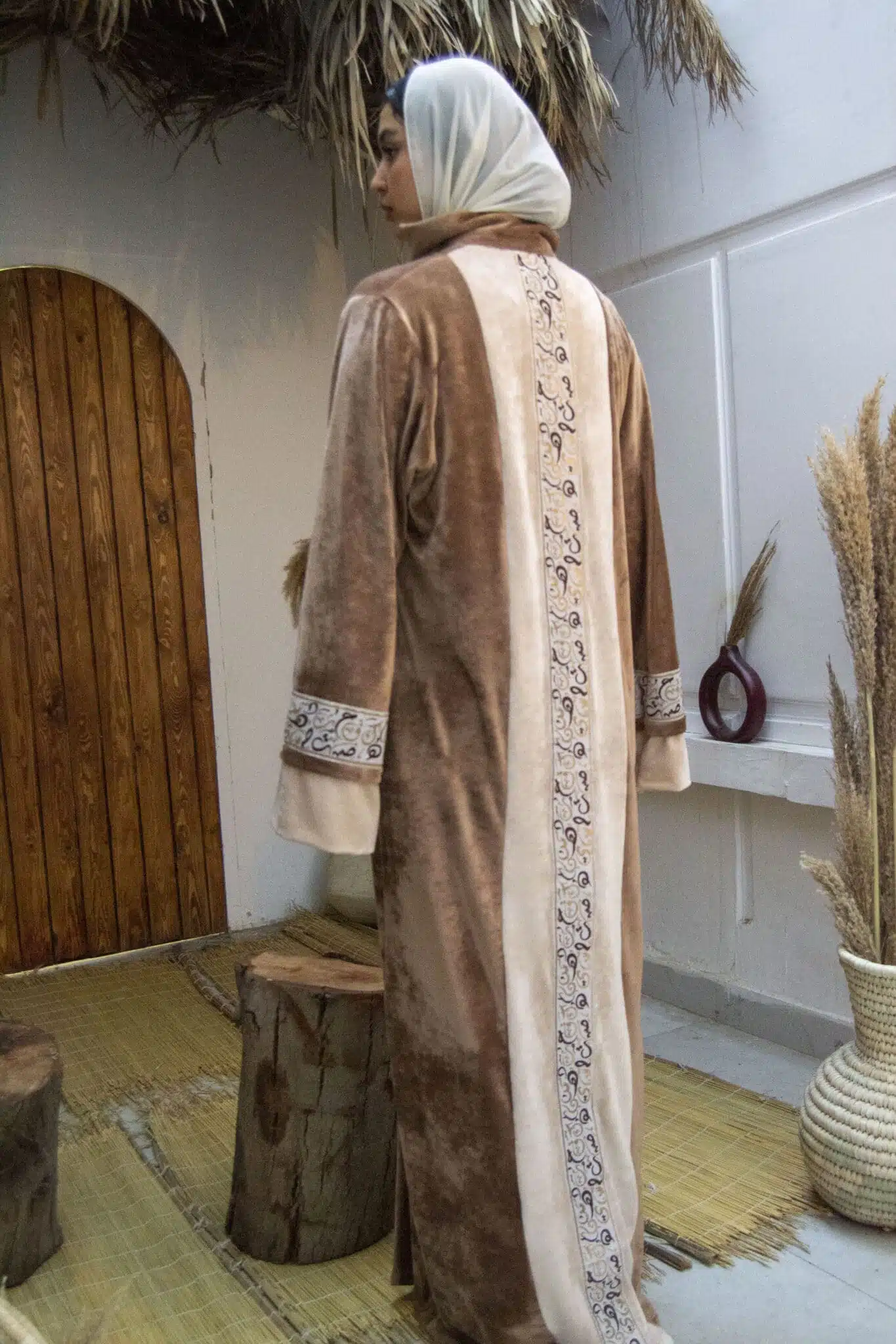 velvet dress with arabic calligraphy