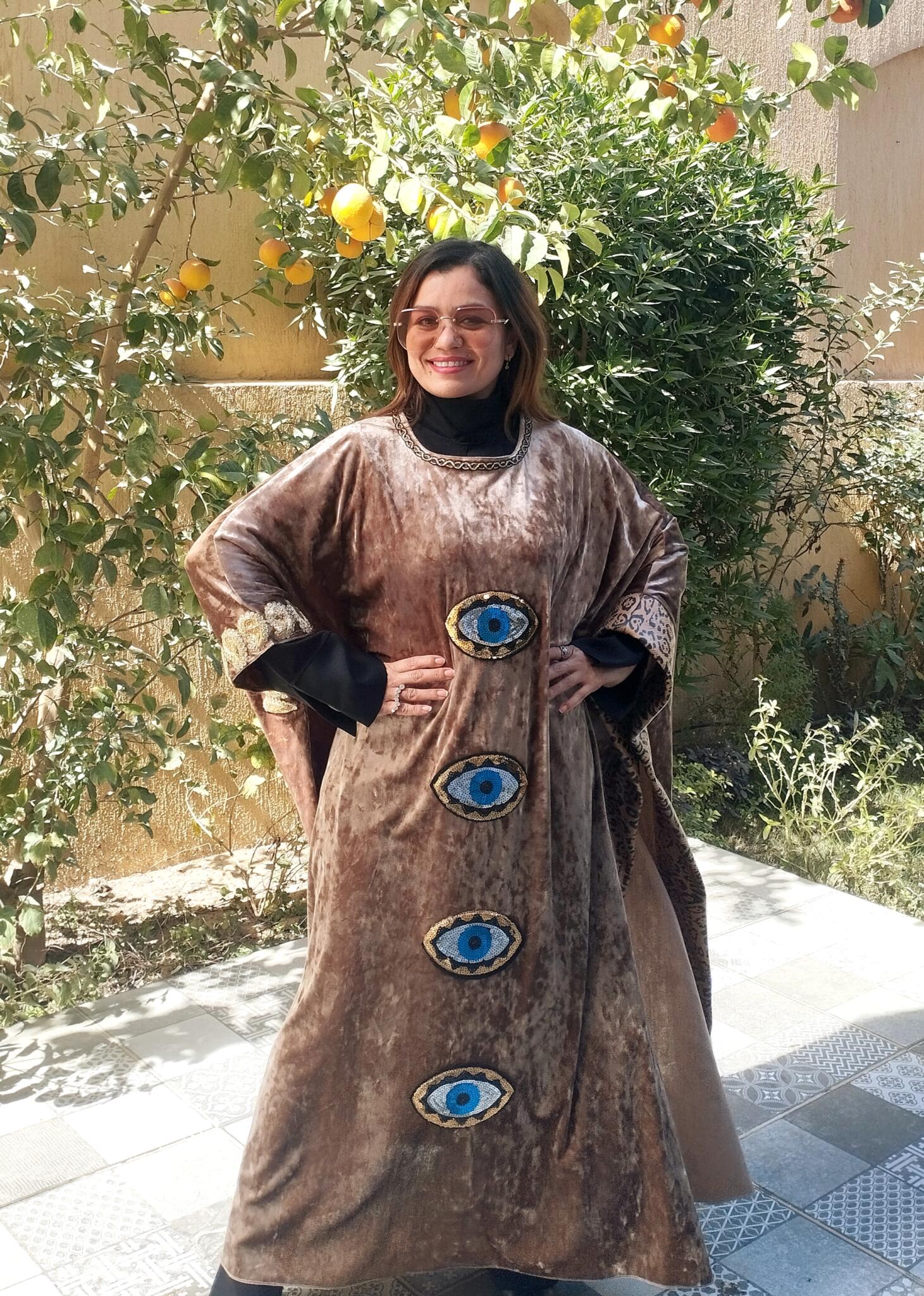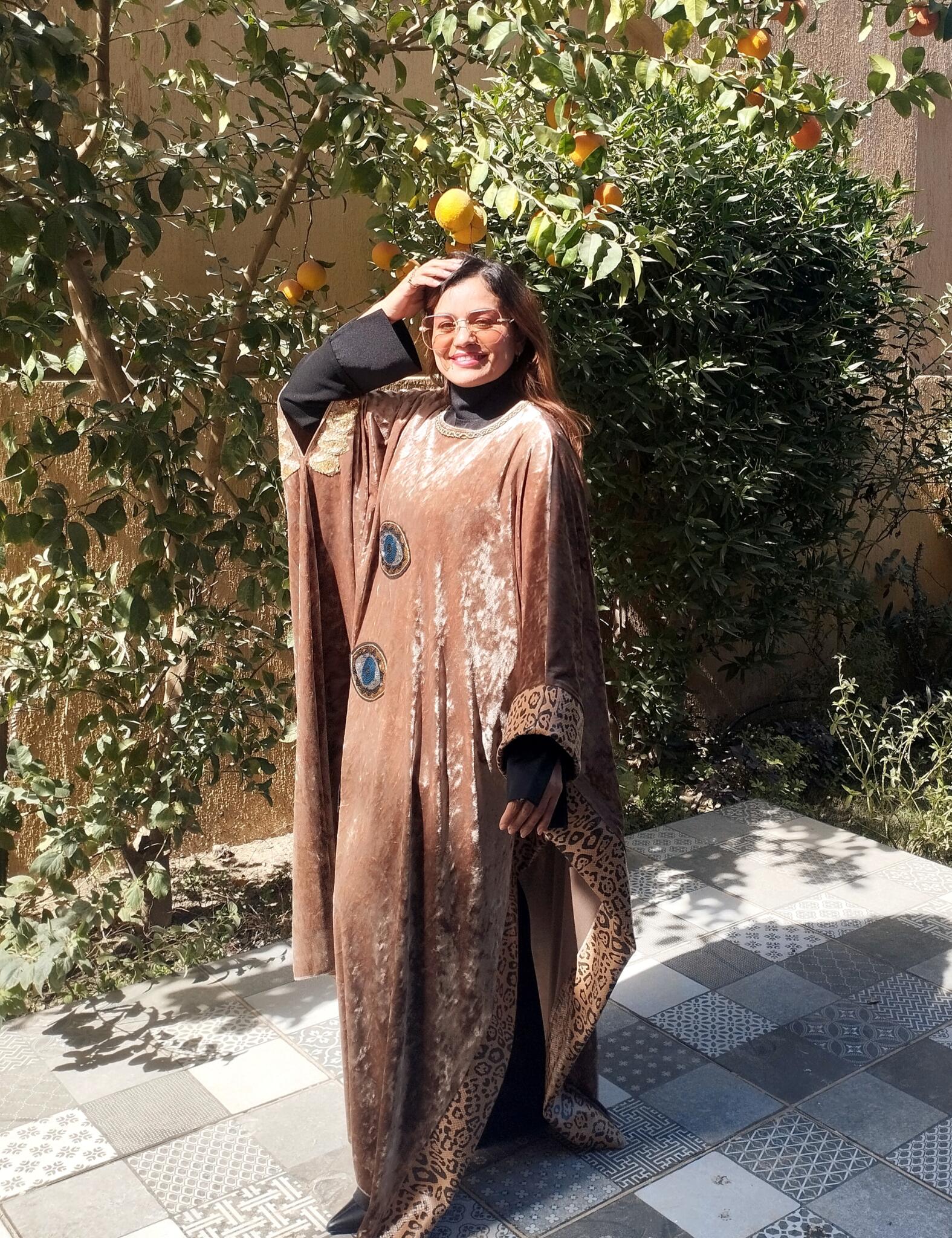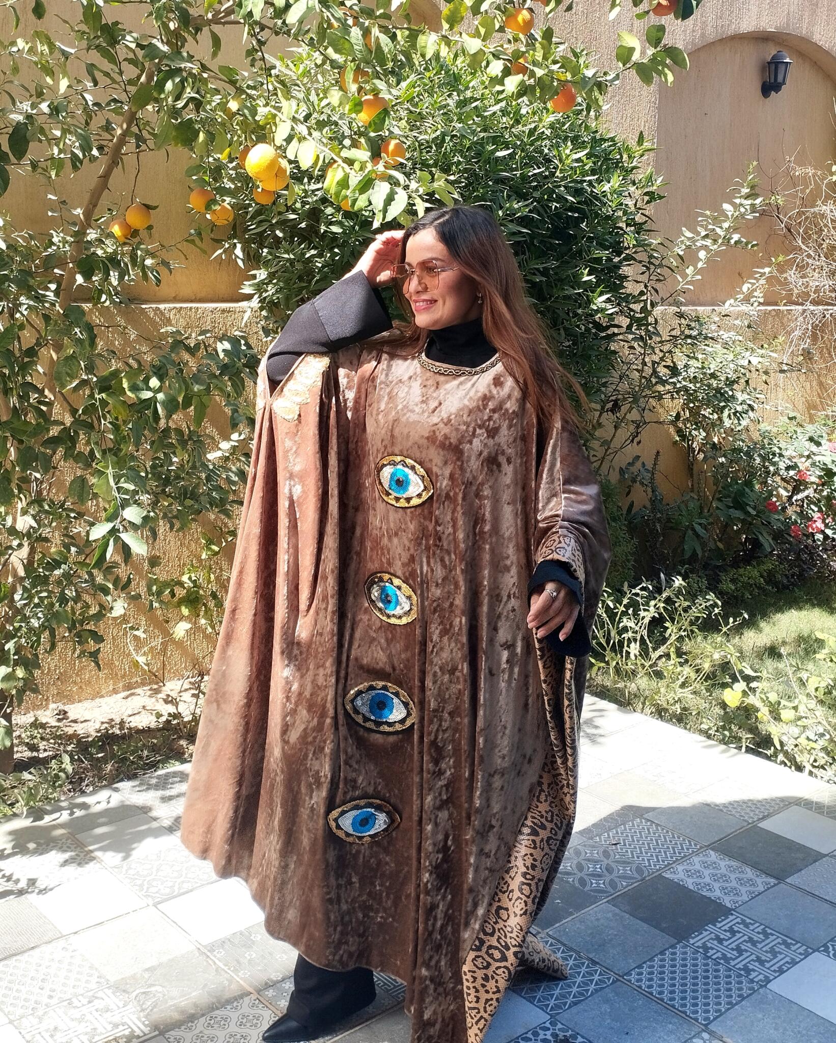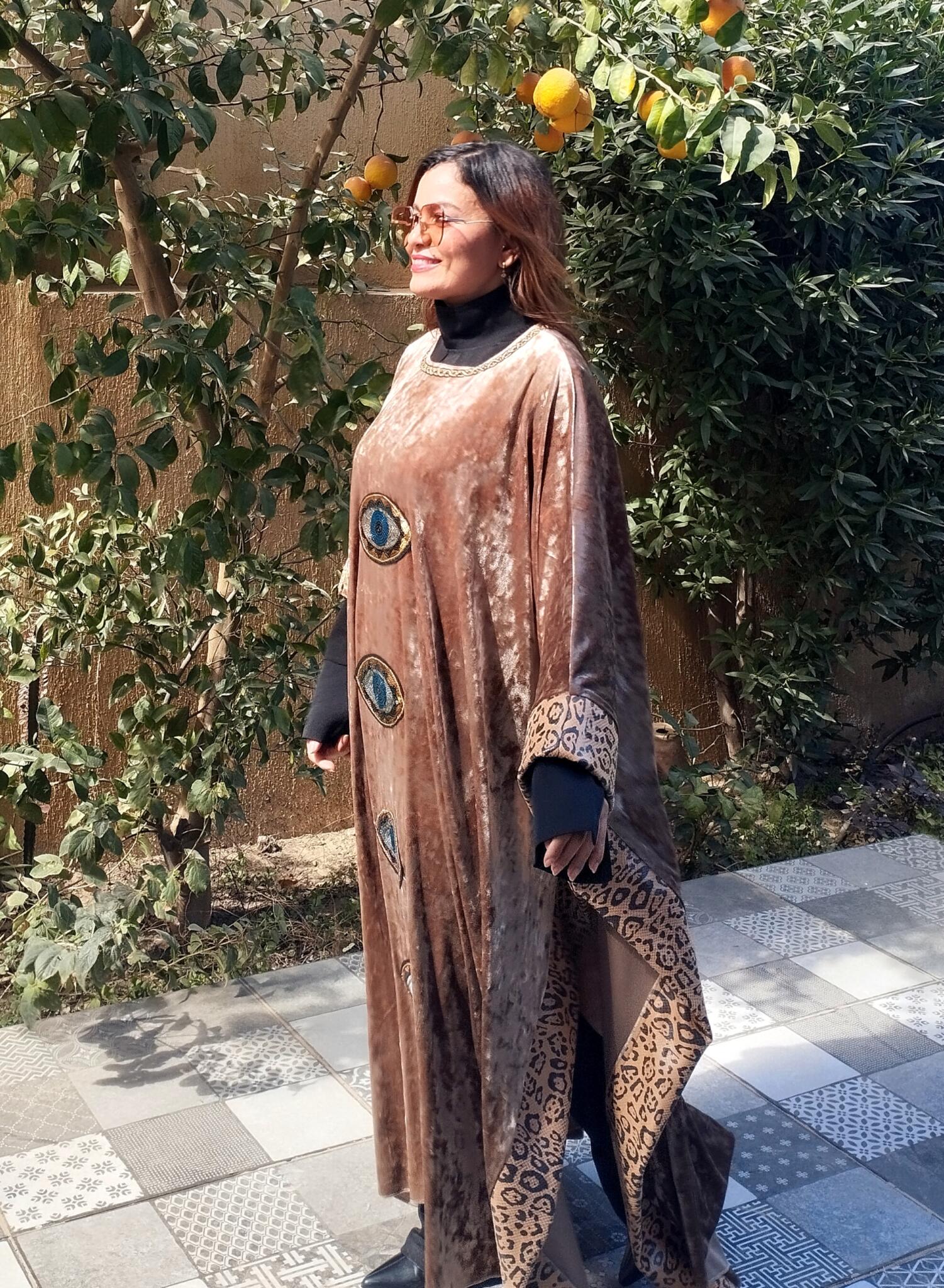 Unique Velvet beige kaftan mixed with tiger leather fabric and oriental touch 🩷