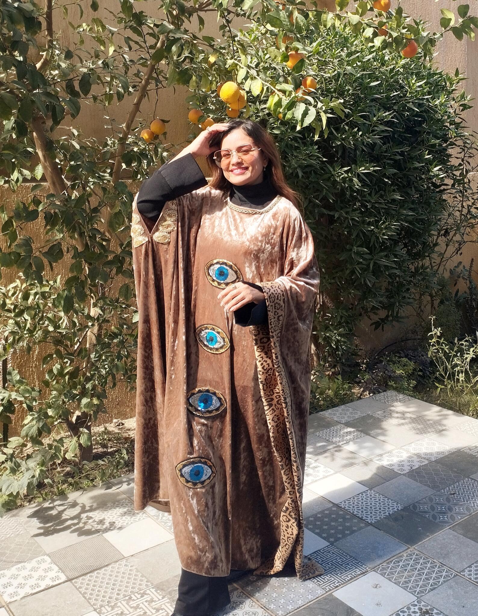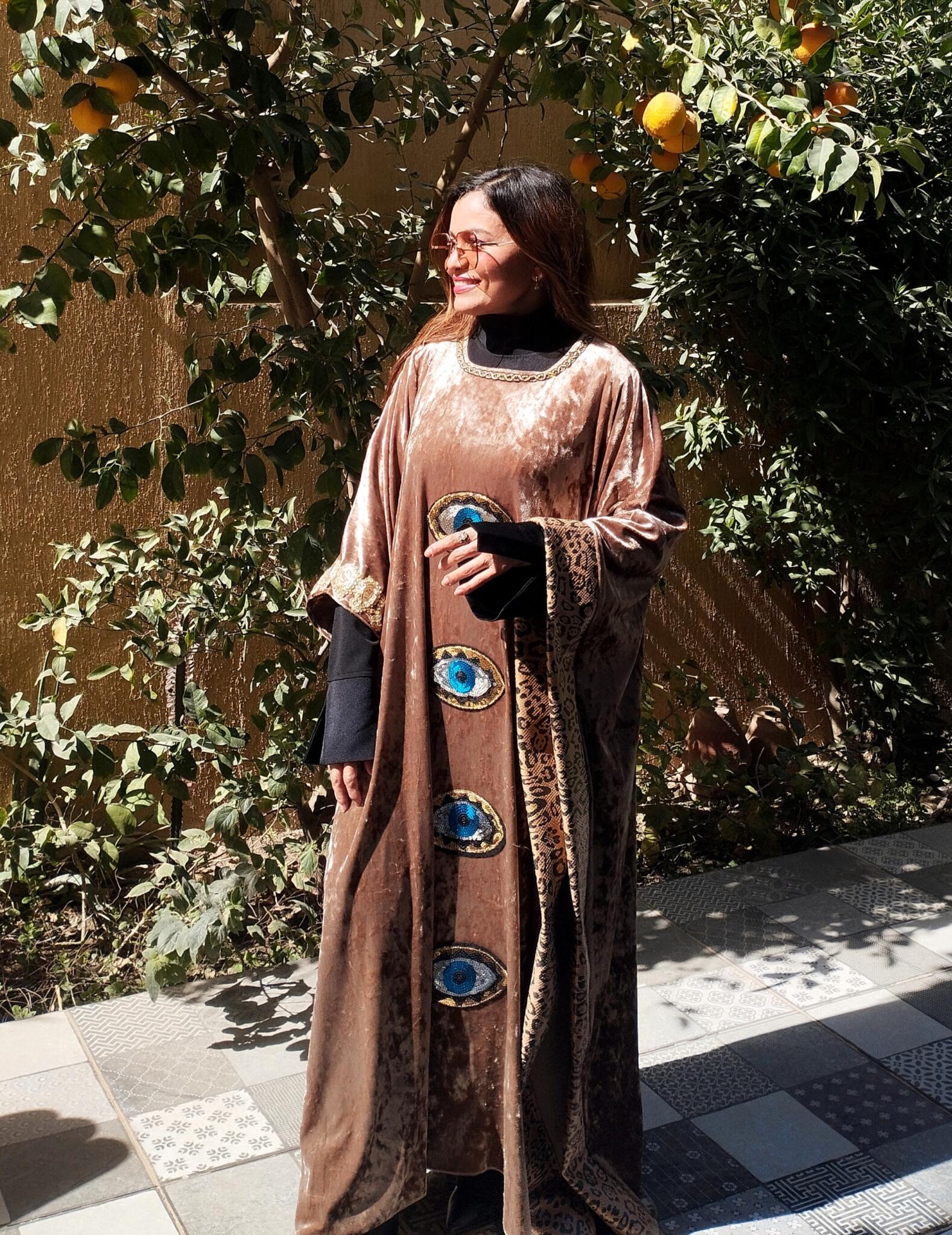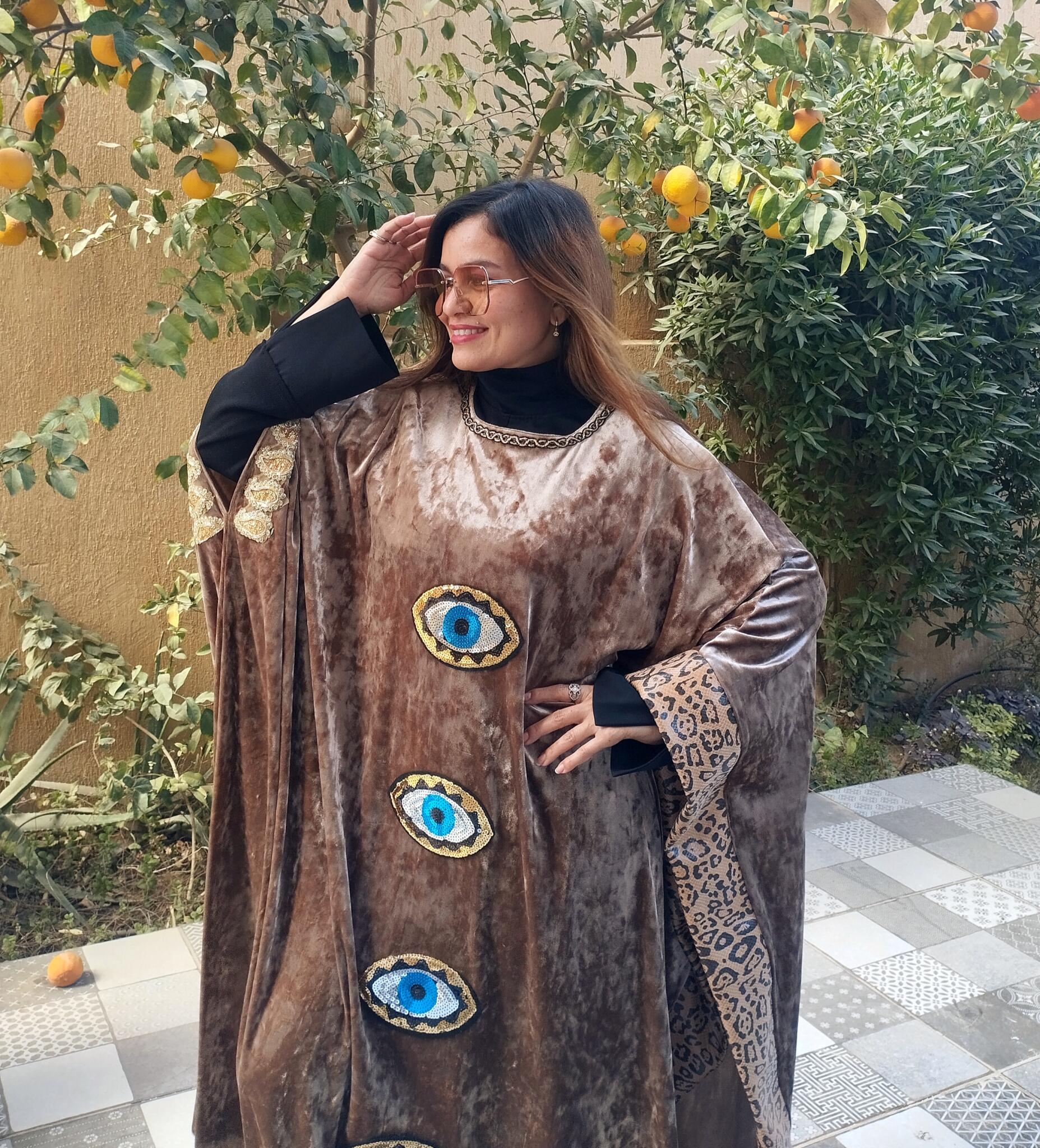 Unique Velvet beige kaftan mixed with tiger leather fabric and oriental touch 🩷