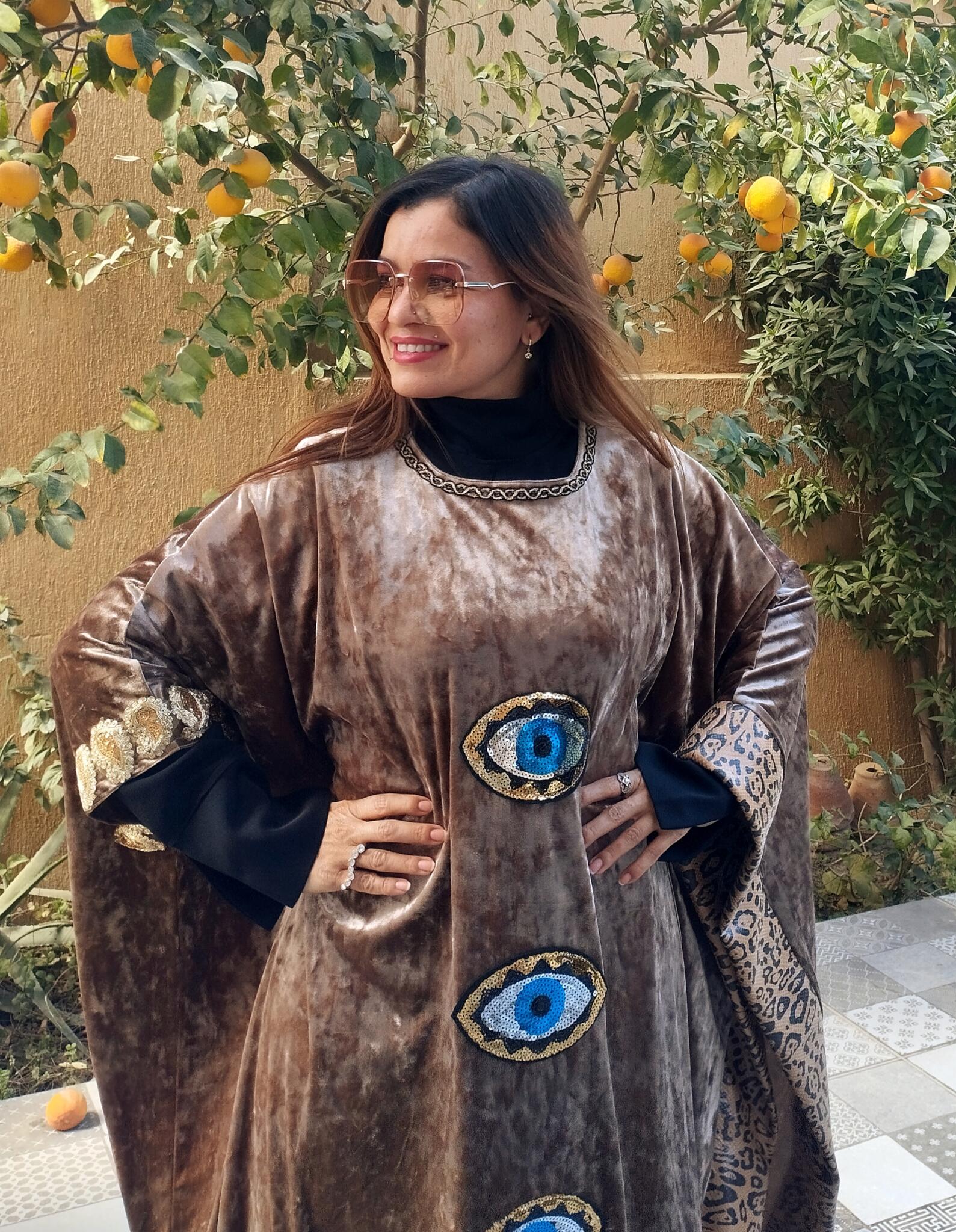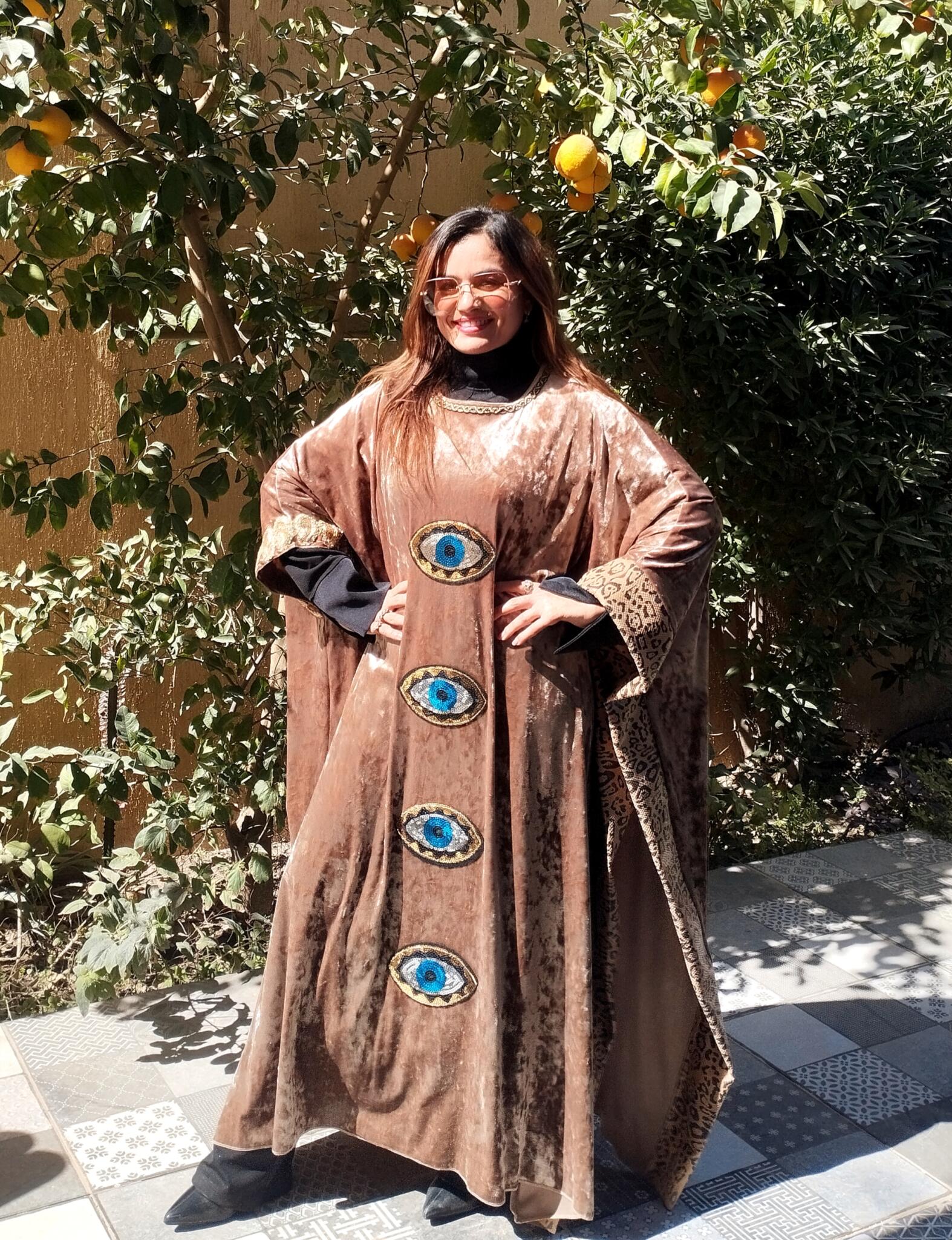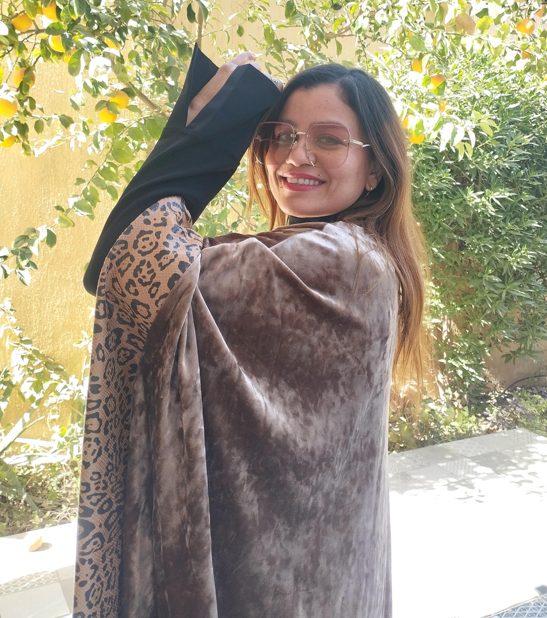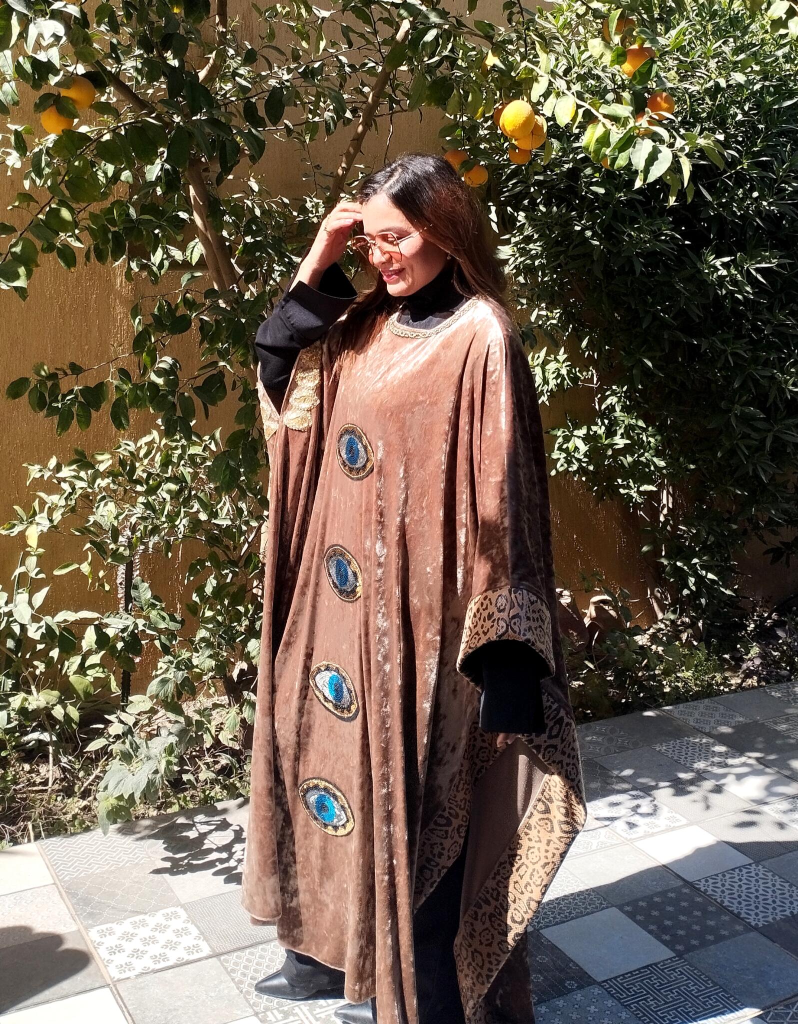 Unique Velvet beige kaftan mixed with tiger leather fabric and oriental touch 🩷