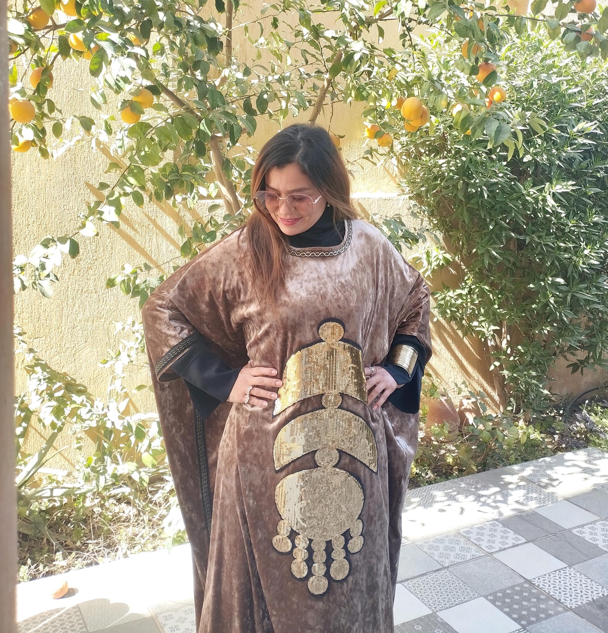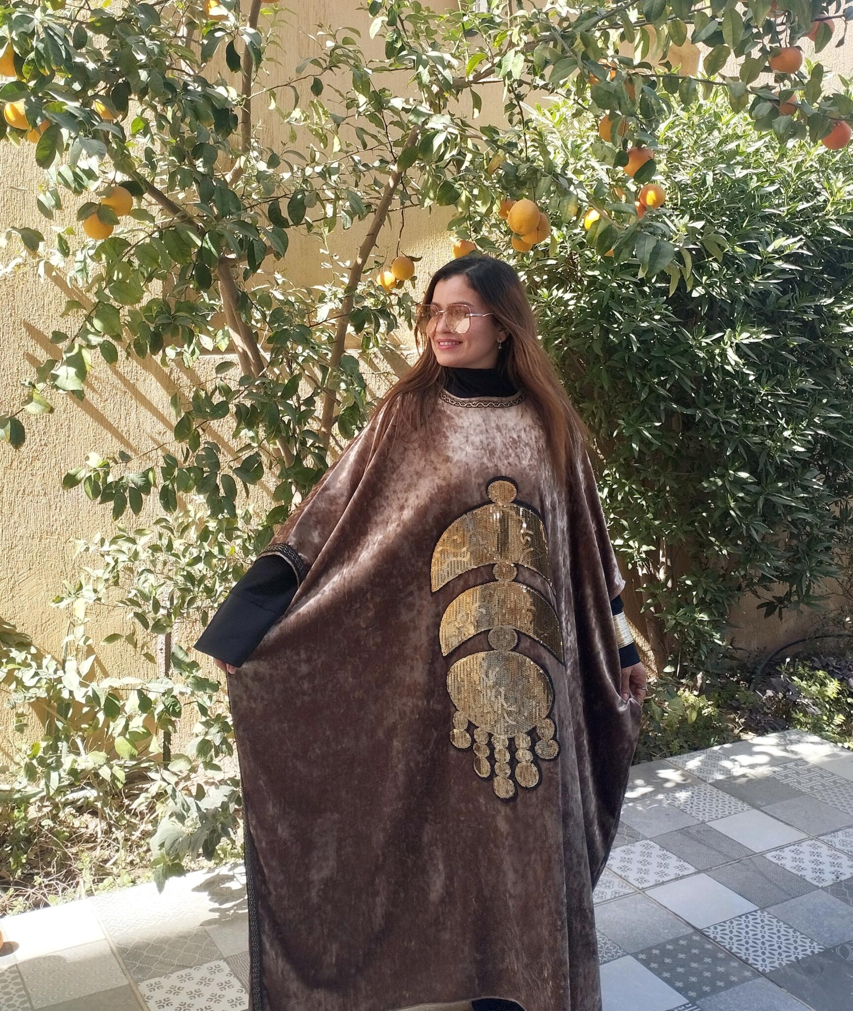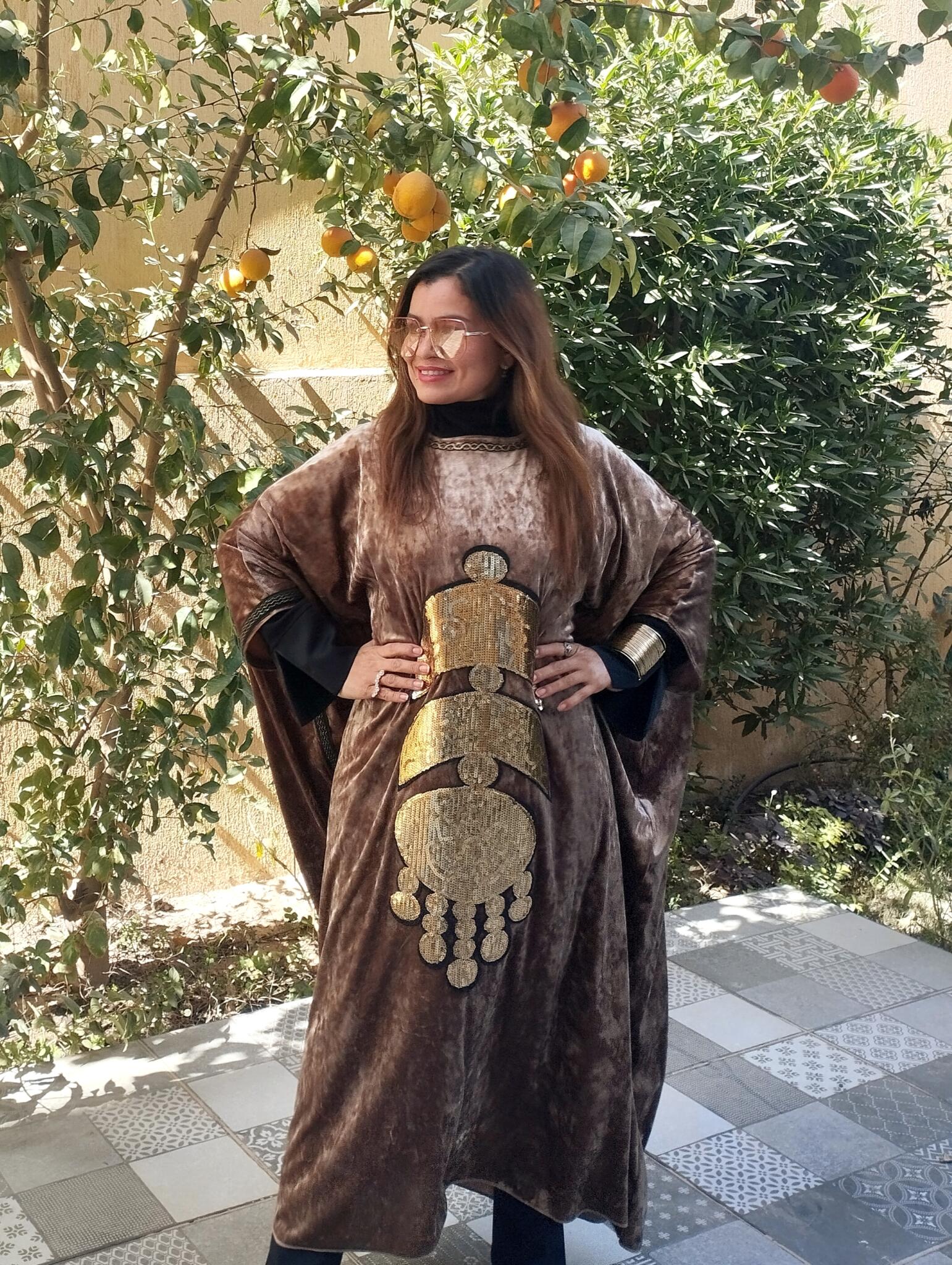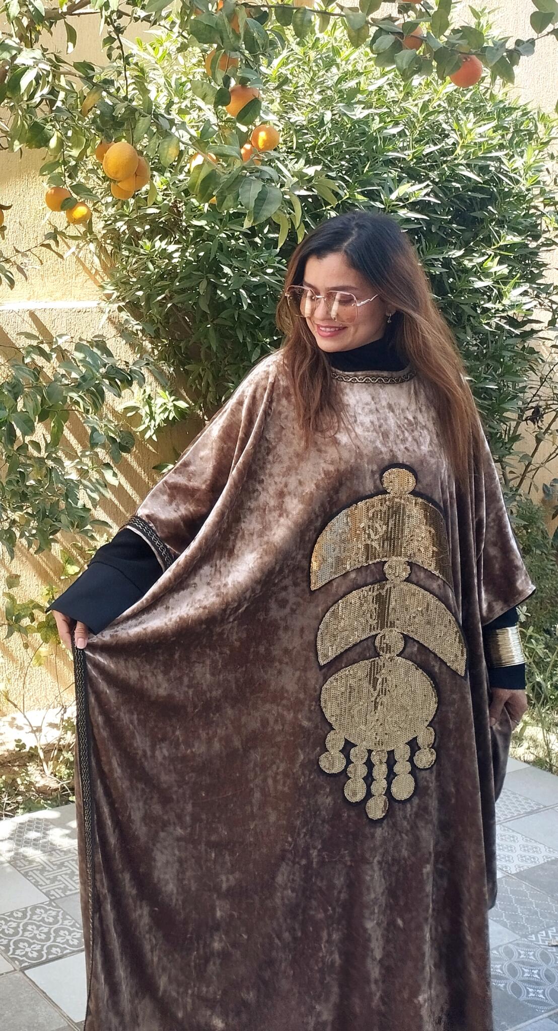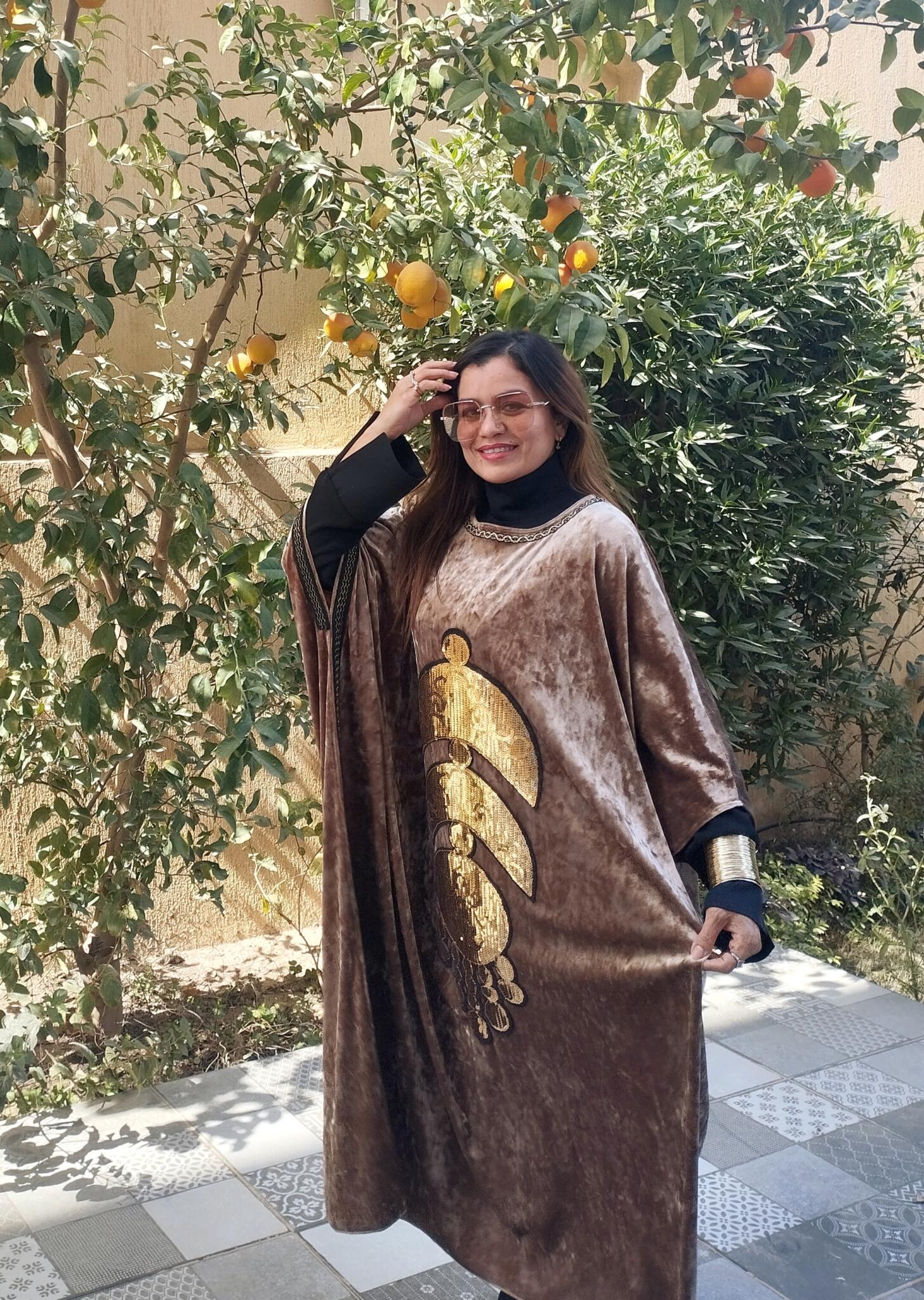 Ramadan velvet beige kaftan with the beautiful oriental touch made it special ♥️