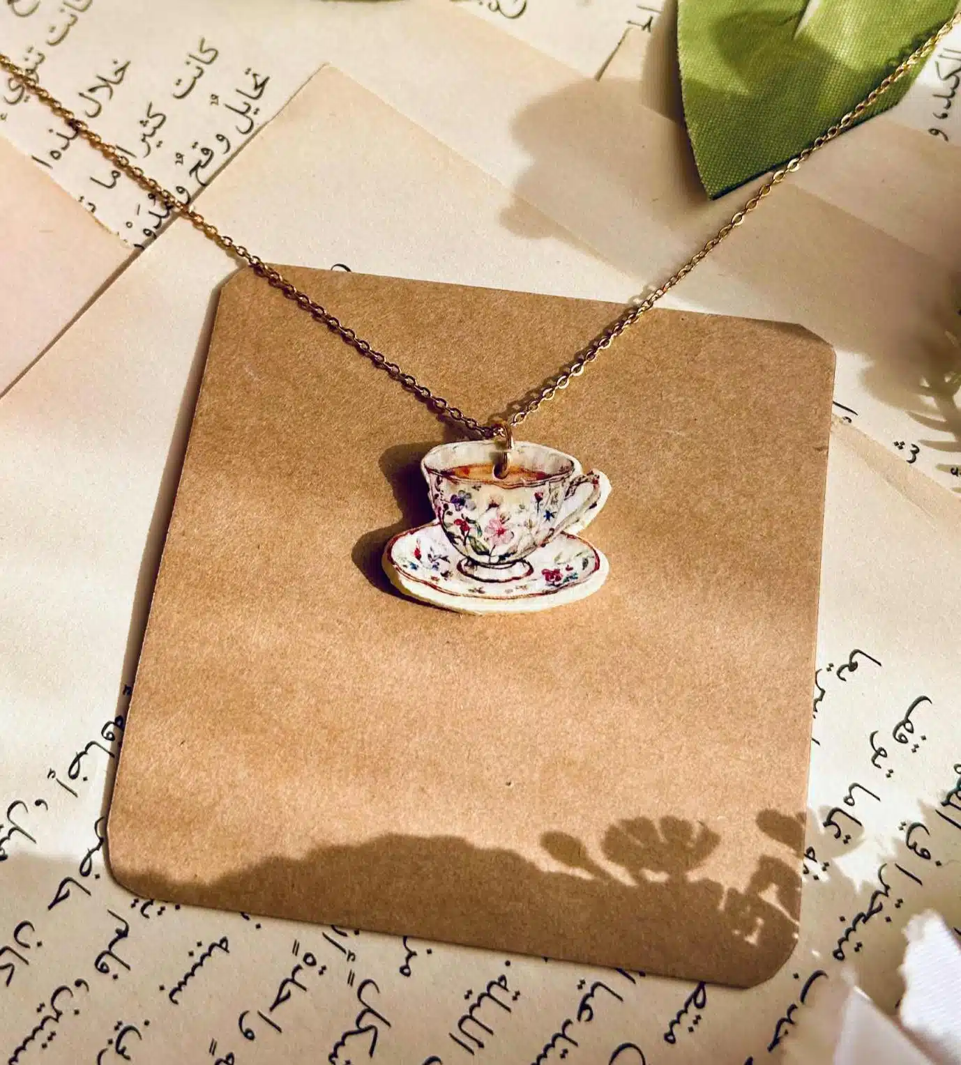 Vintage cup ceramic pendant comes with stainless steel chain.