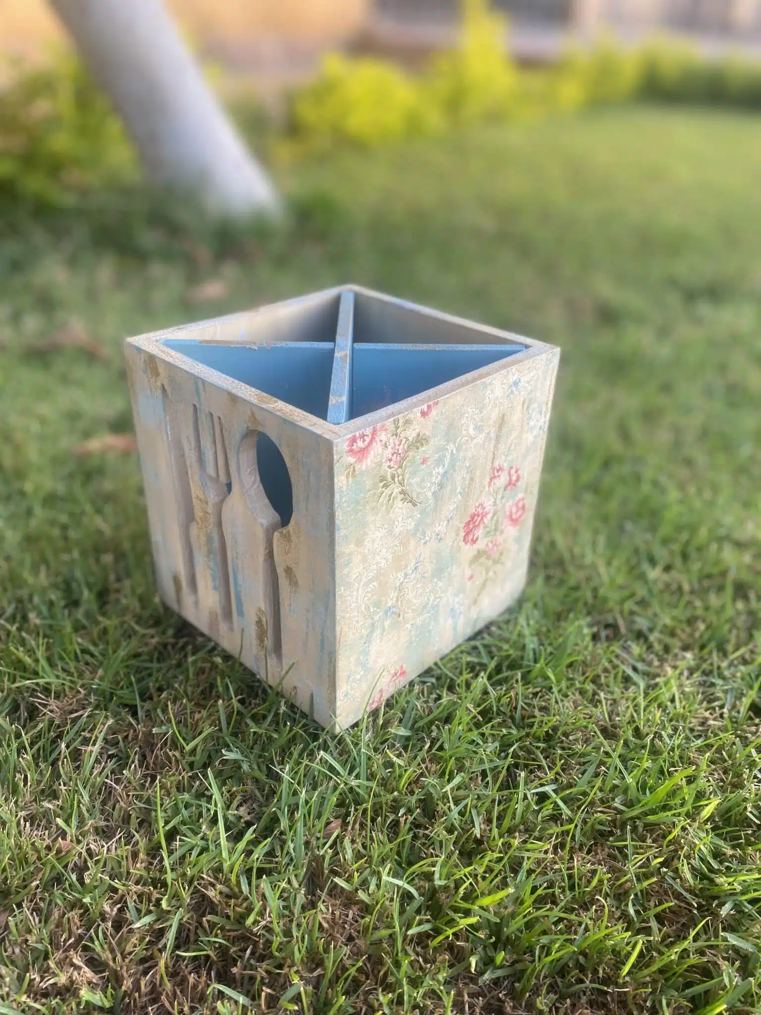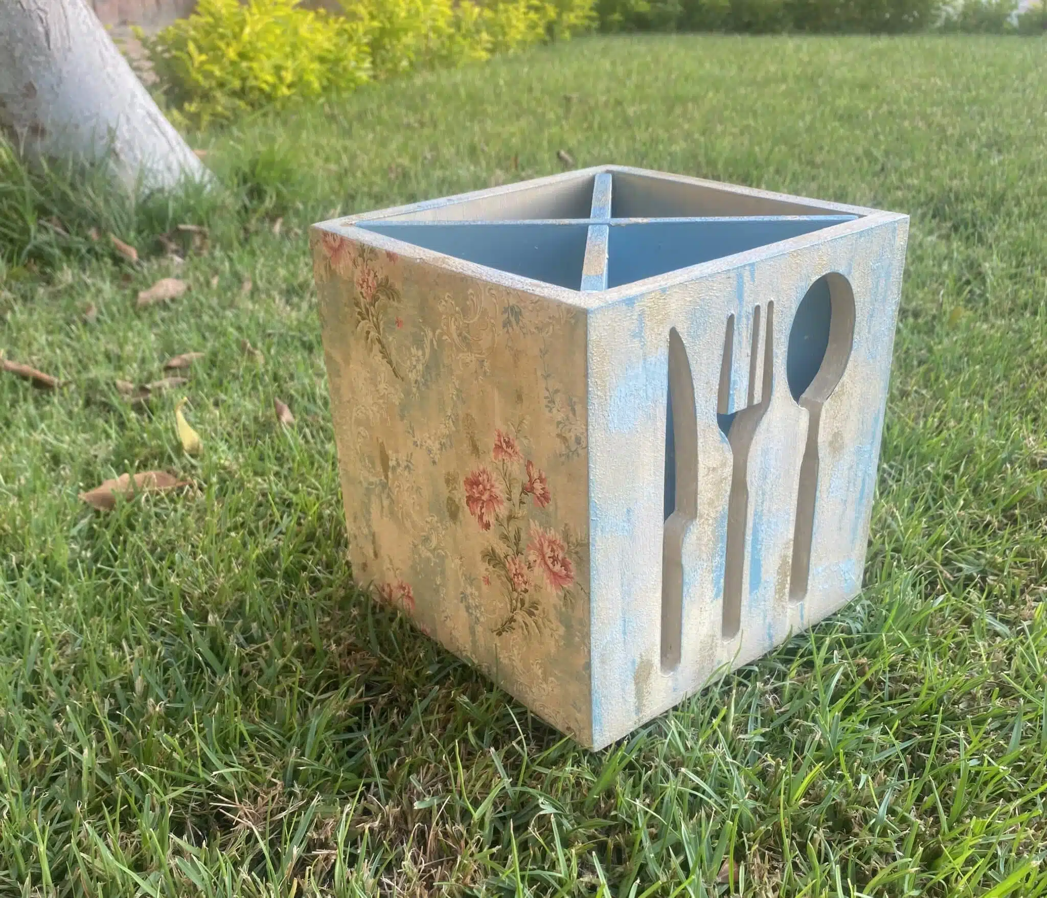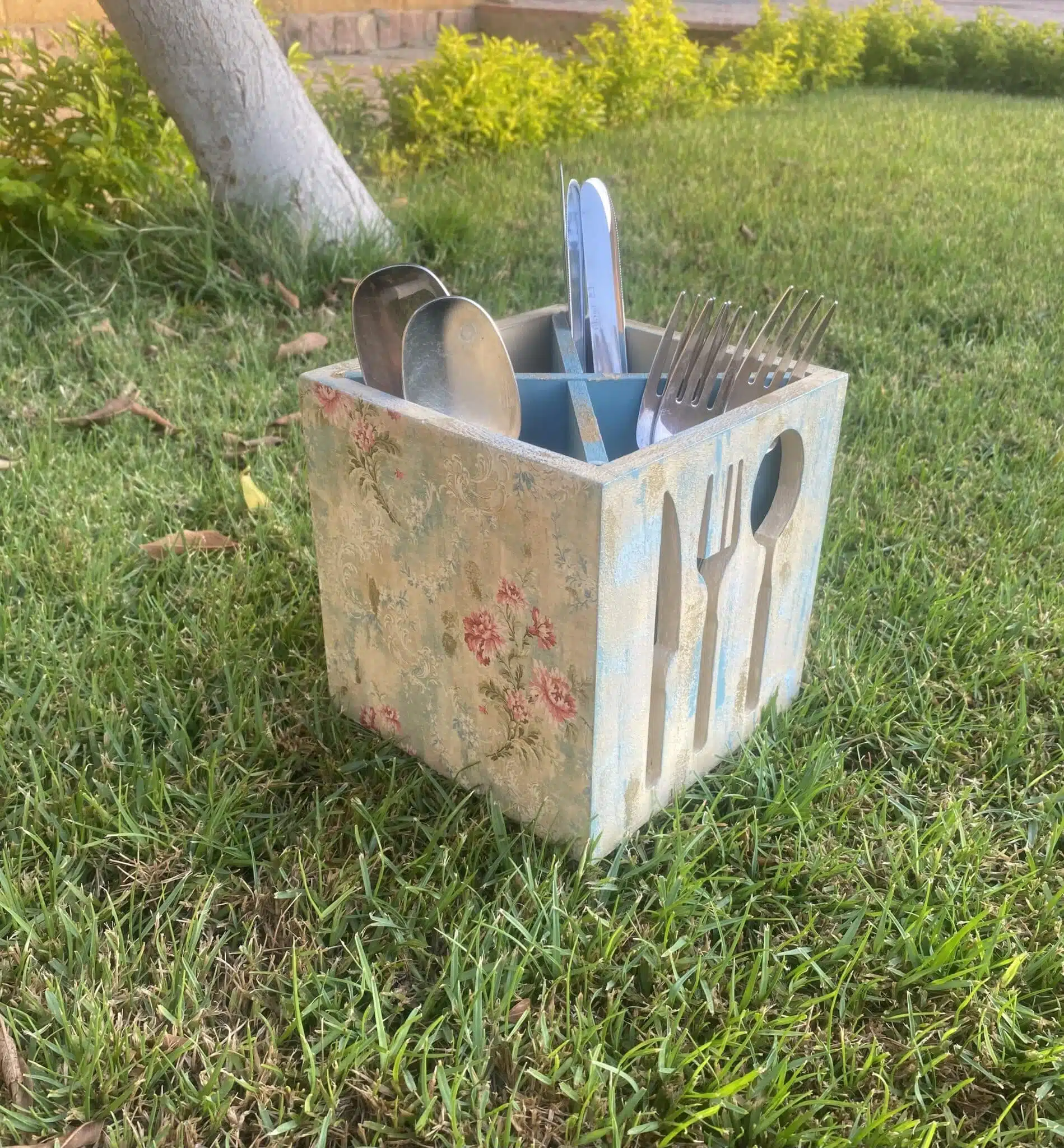 Wooden Cutlery Engraved Cutlery Organizer Vintage Fleuri