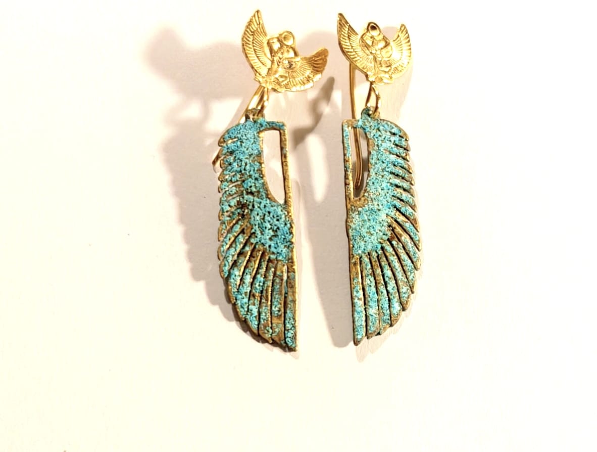 Vintage & Gold plated ISIS wings stud earrings