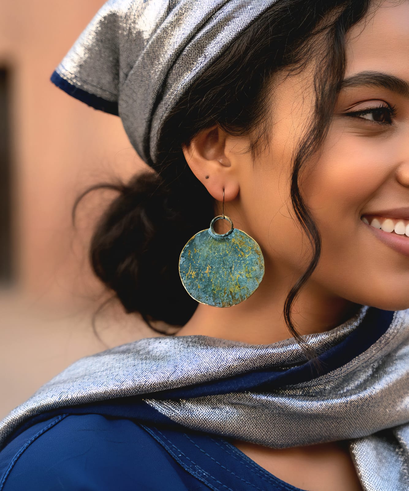 Vintage lunar crescent large earrings 5 cm ( diameter )