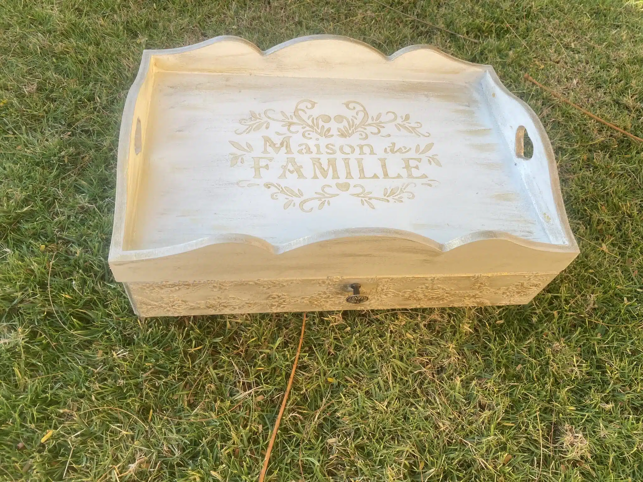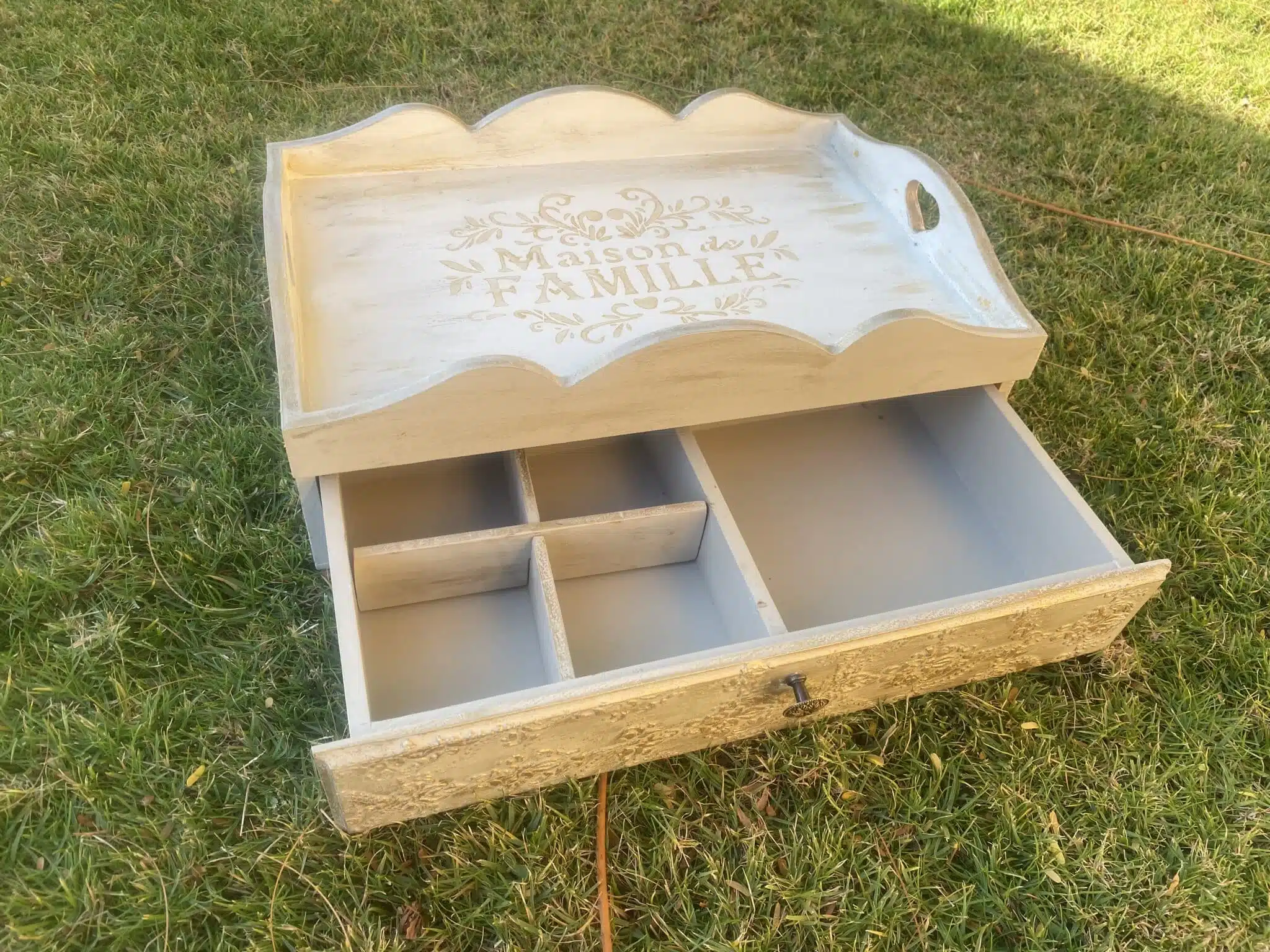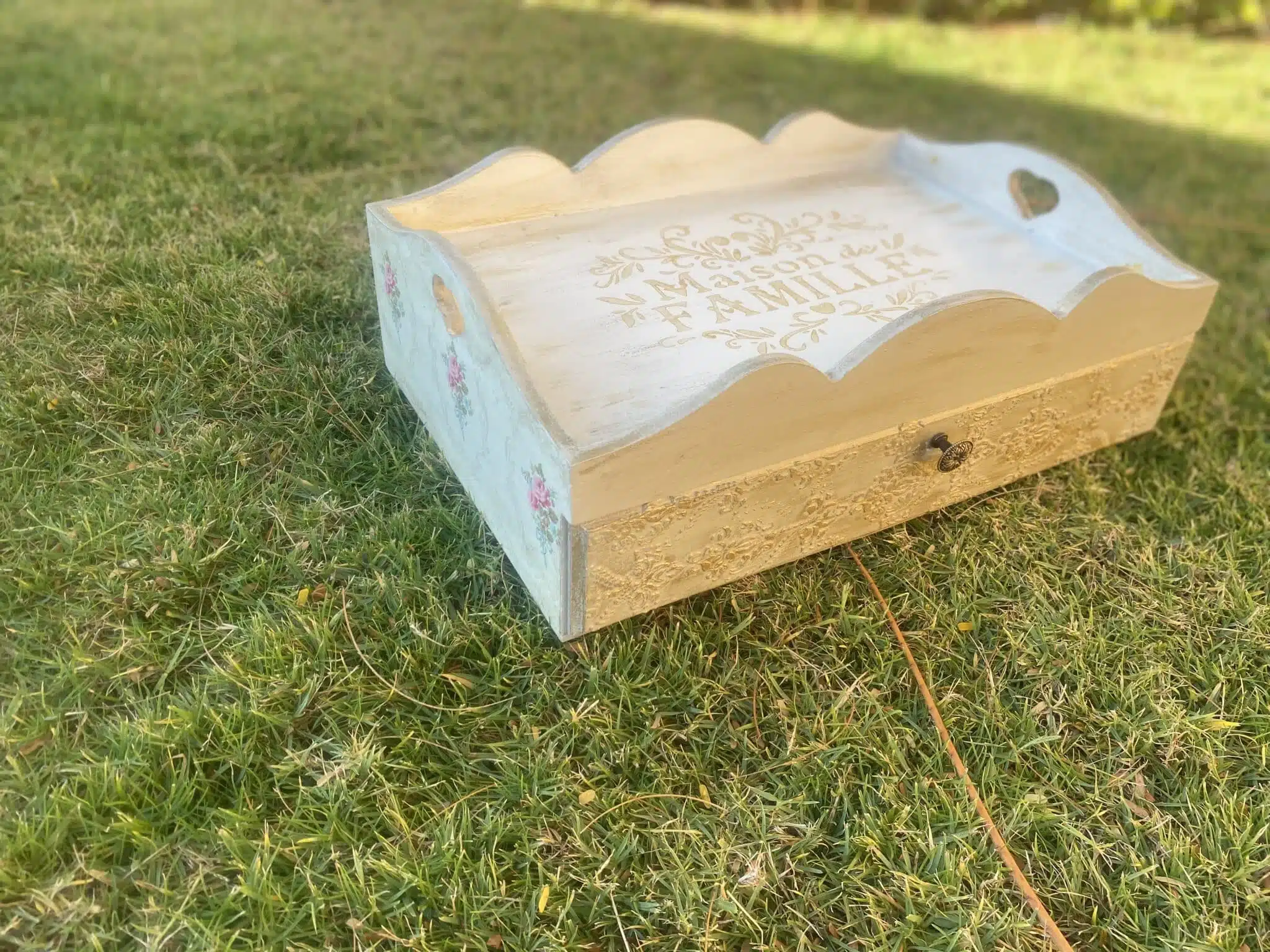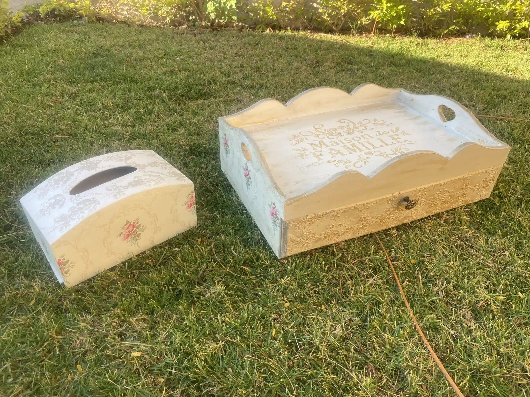 Wooden mini coffee corner with matching tissue box in vintage white and french flowers