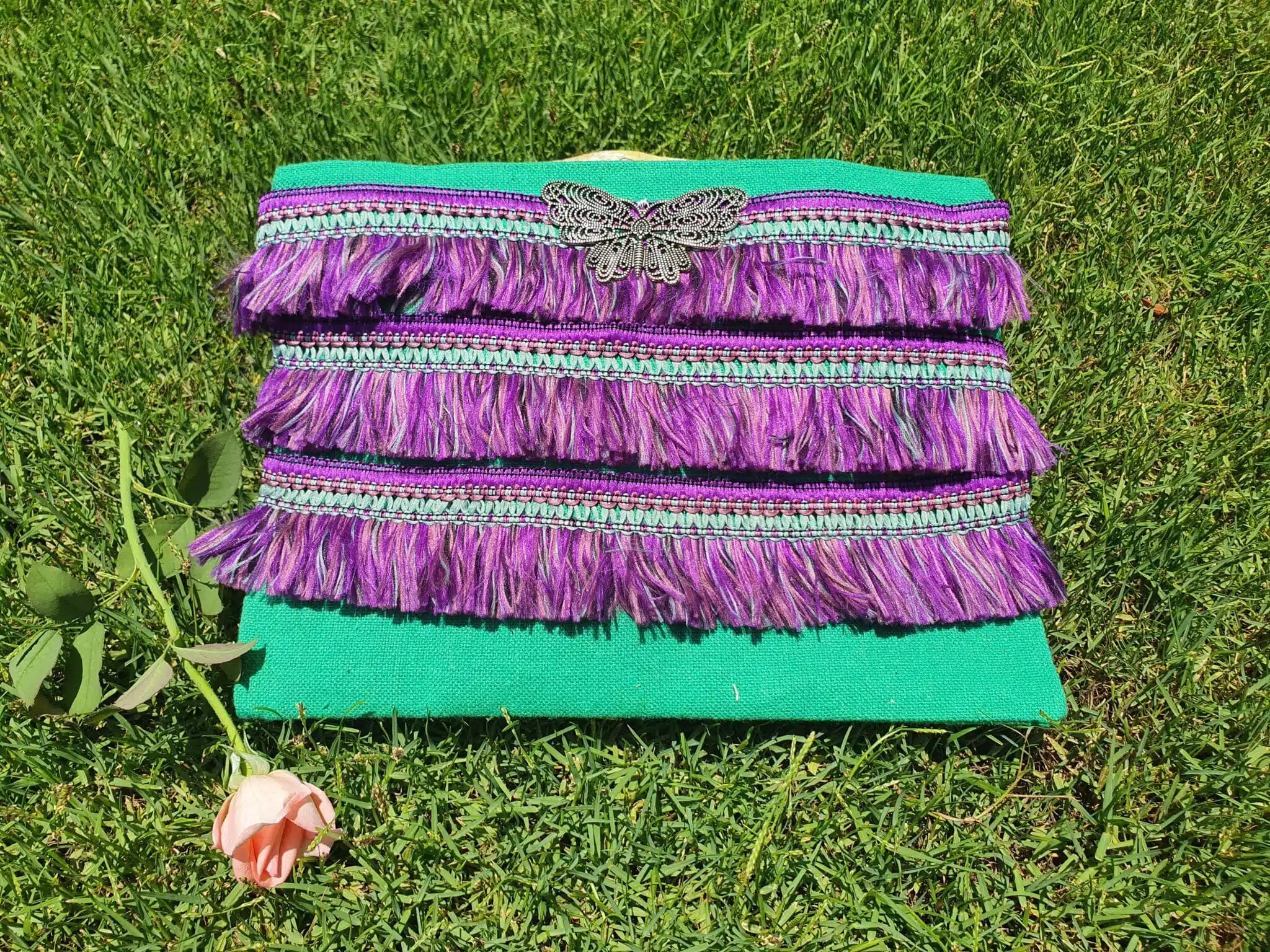 - Handmade embroidery clutche with metal coins 30×20 cm.