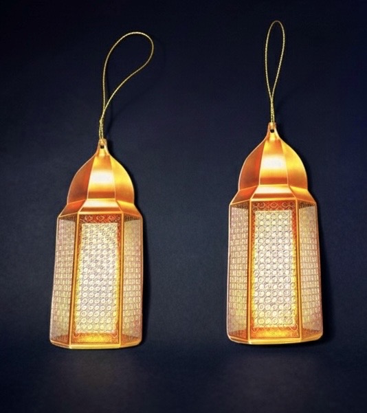 Handmade golden ceramic Fanoos, perfect as Ramadan decor or a gift for Ramadan gatherings.