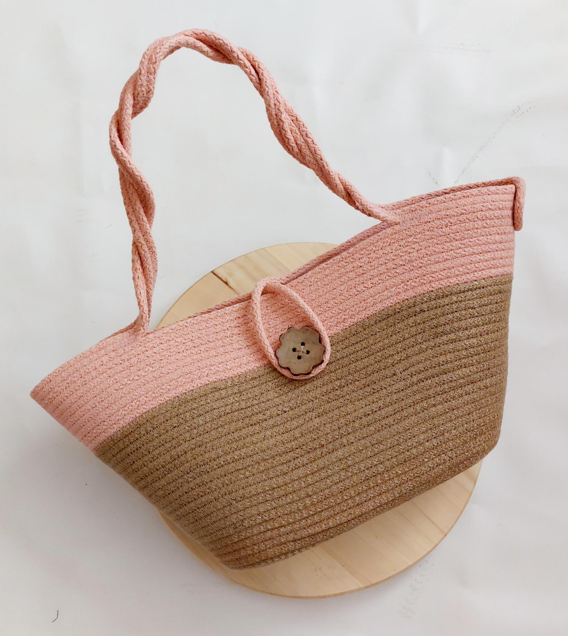 ألوانها بينك وبيج، ناعمة وراقية، وقفل خشبي على شكل وردة يديها لمسة فريدة.