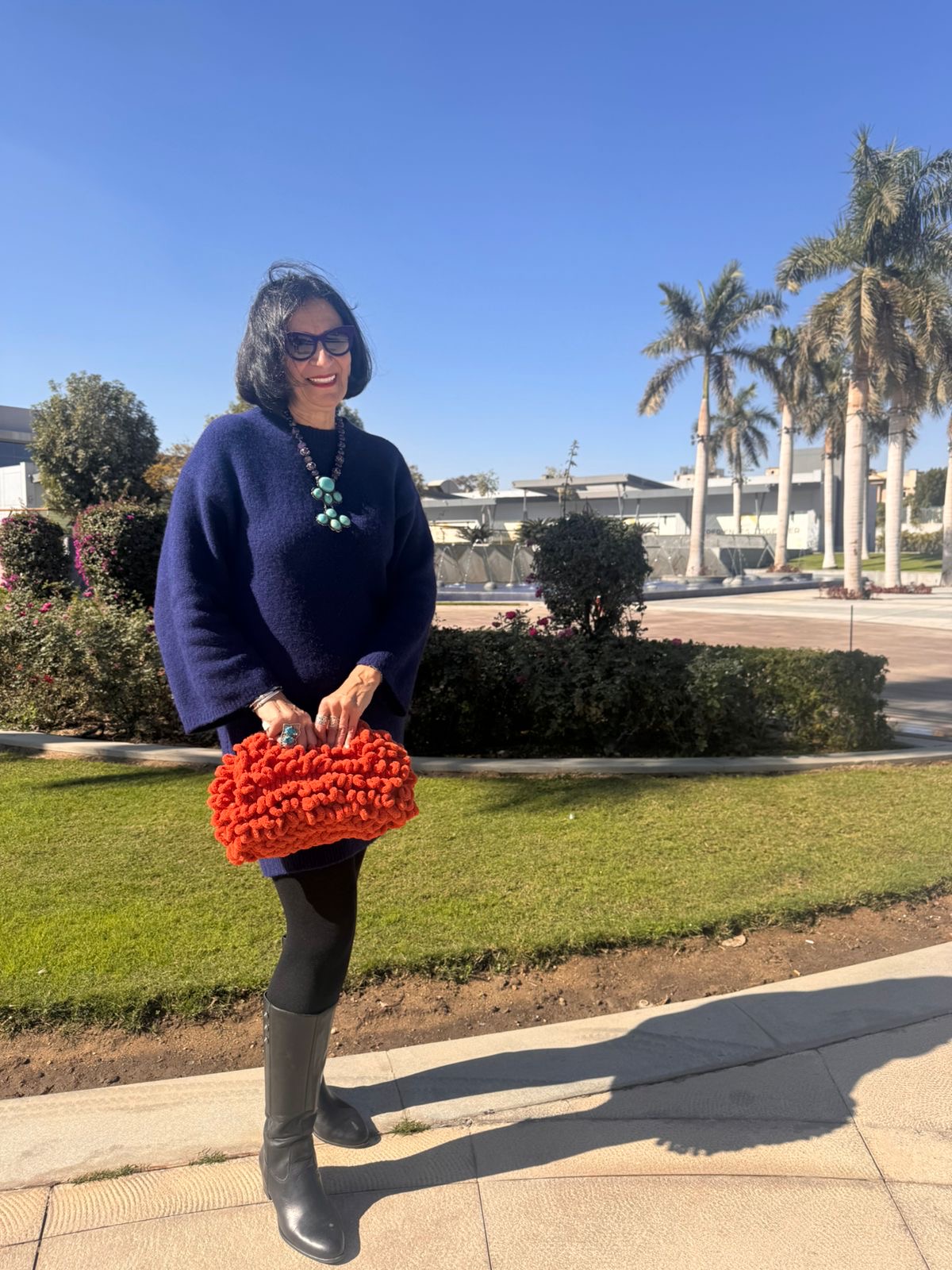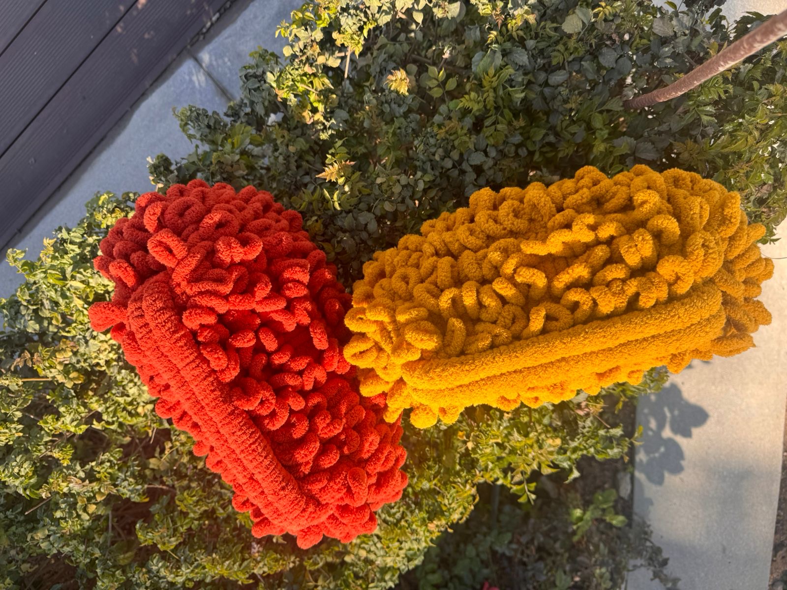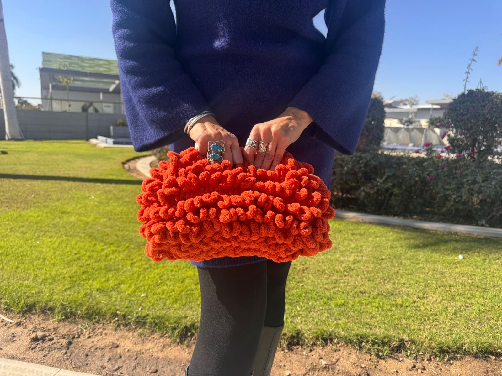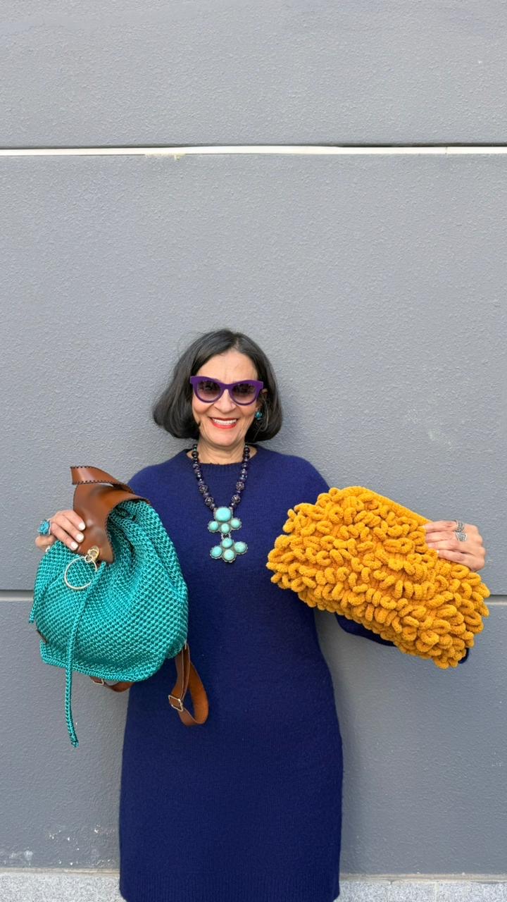 Two statement clutches in warm, radiant colors — bold red , black ,golden mustard and burgundy