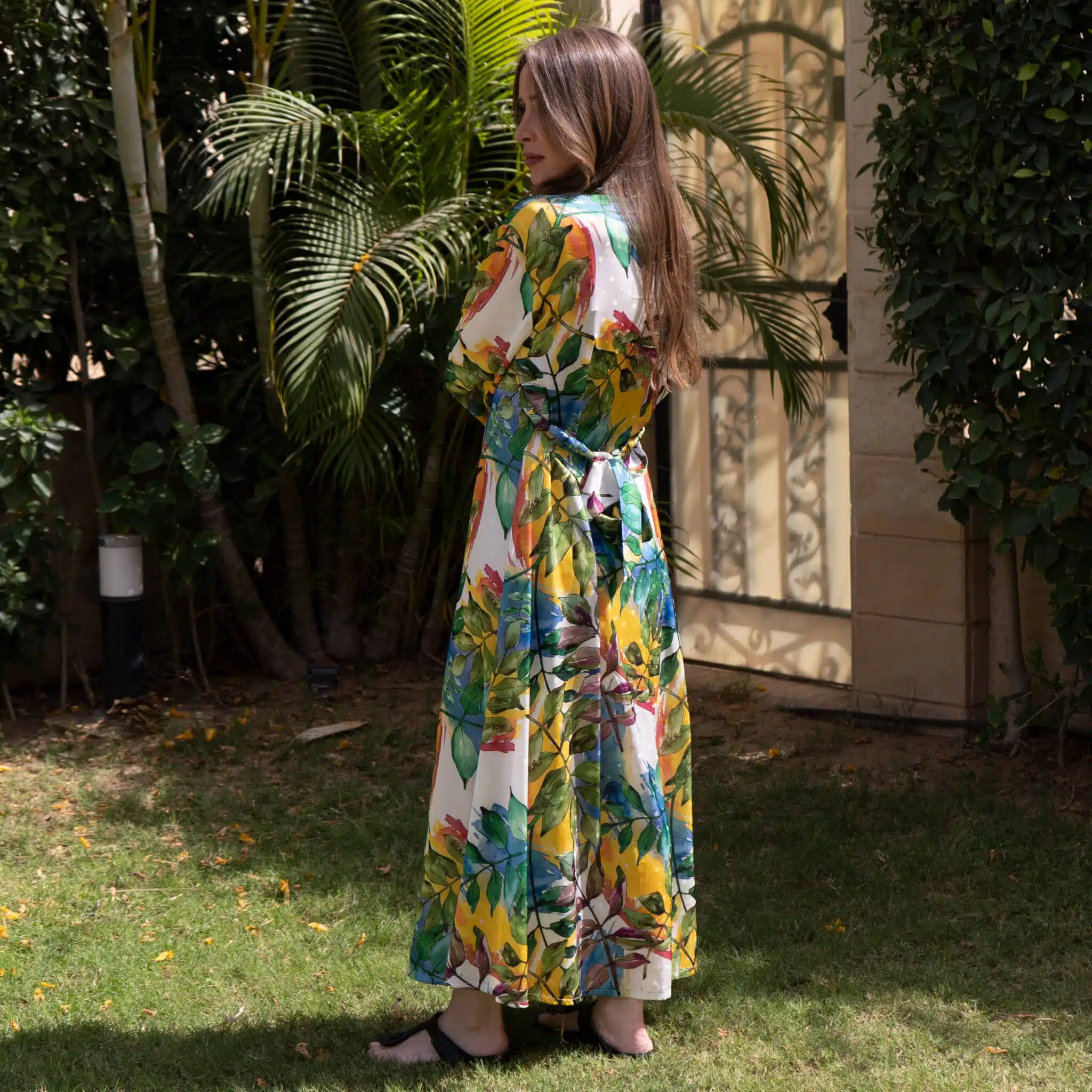 Watercolour floral long sleeve maxi silk dress