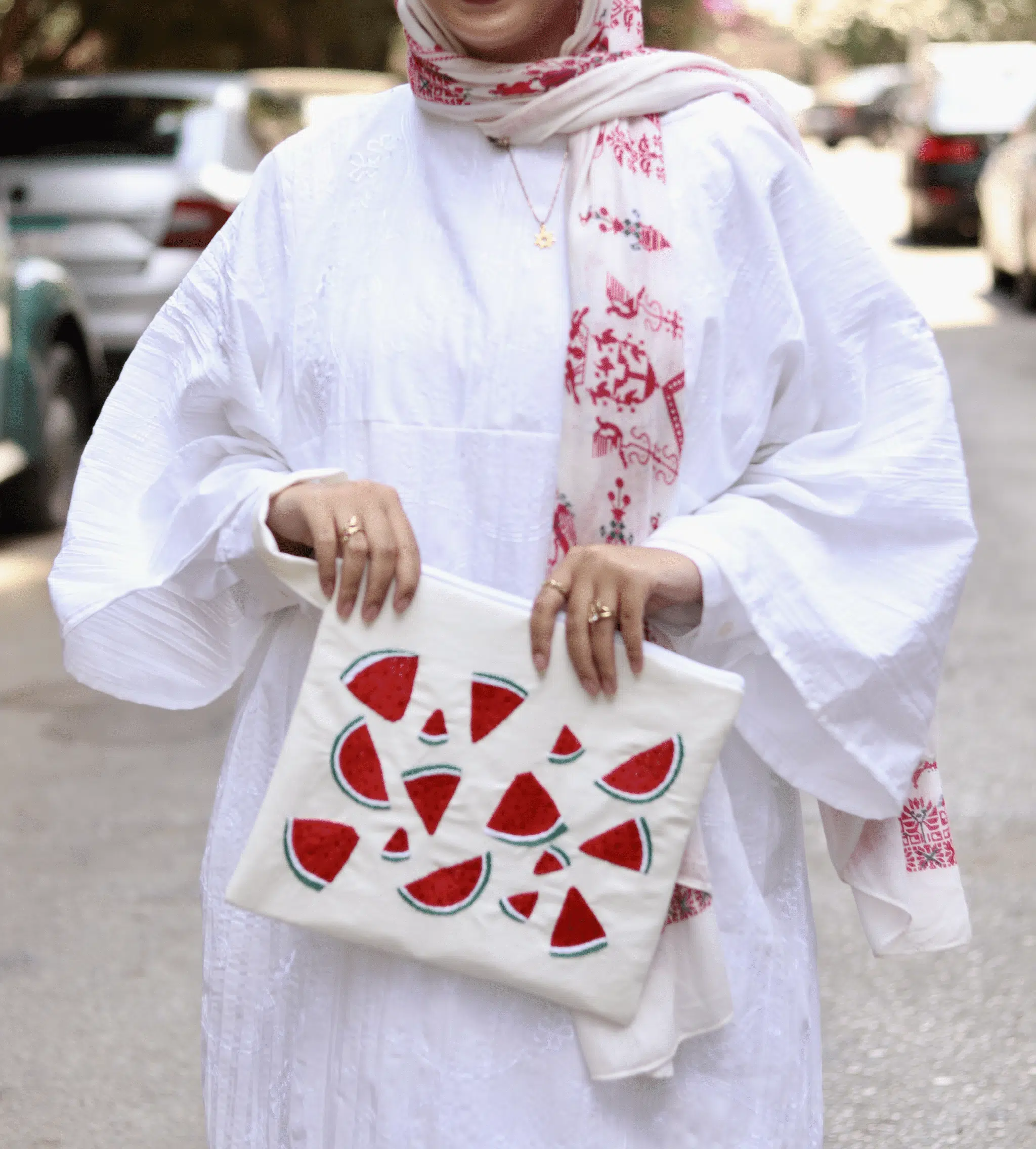 Hand Embroidered Cotton Clutche with Lining and Inner Pockets